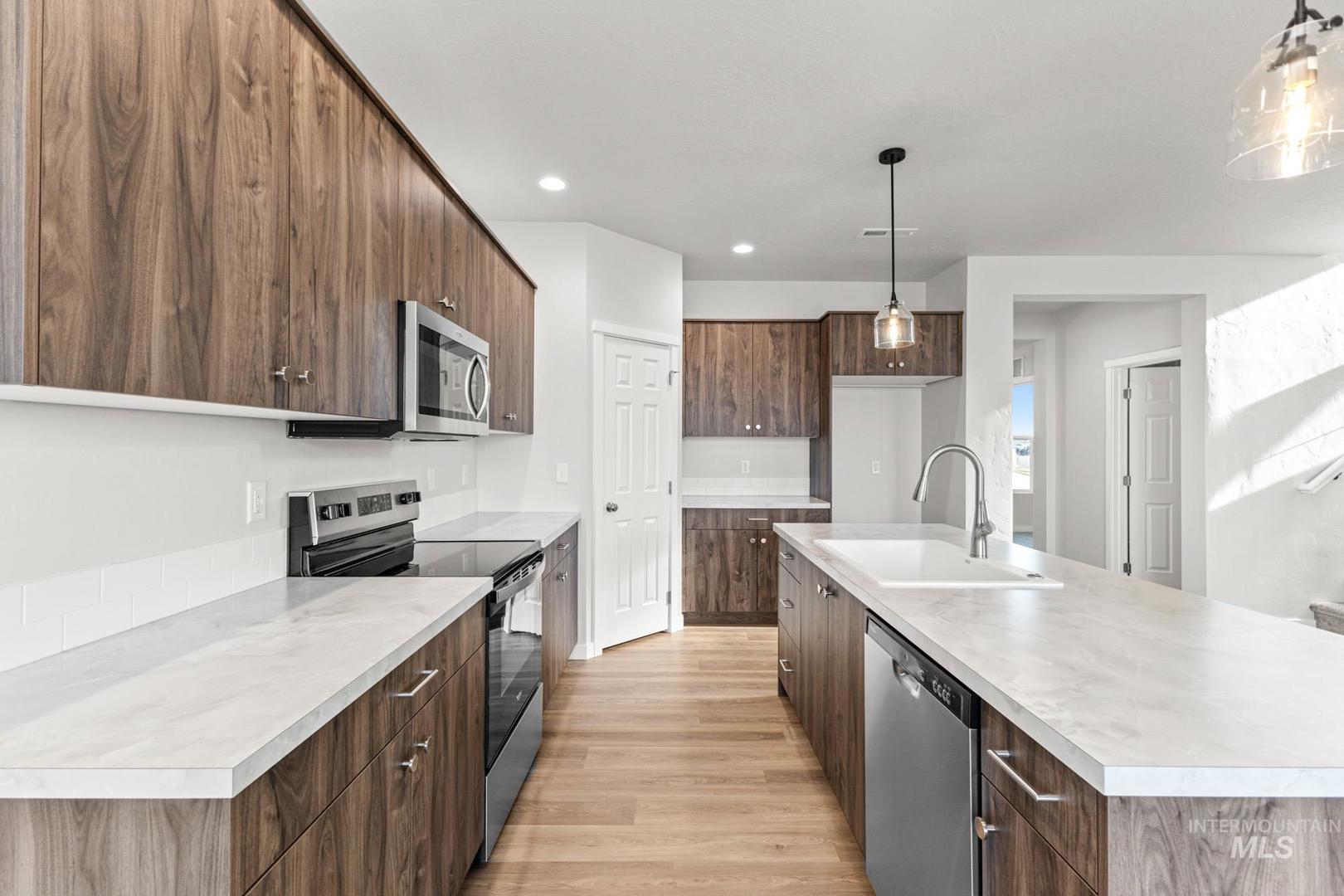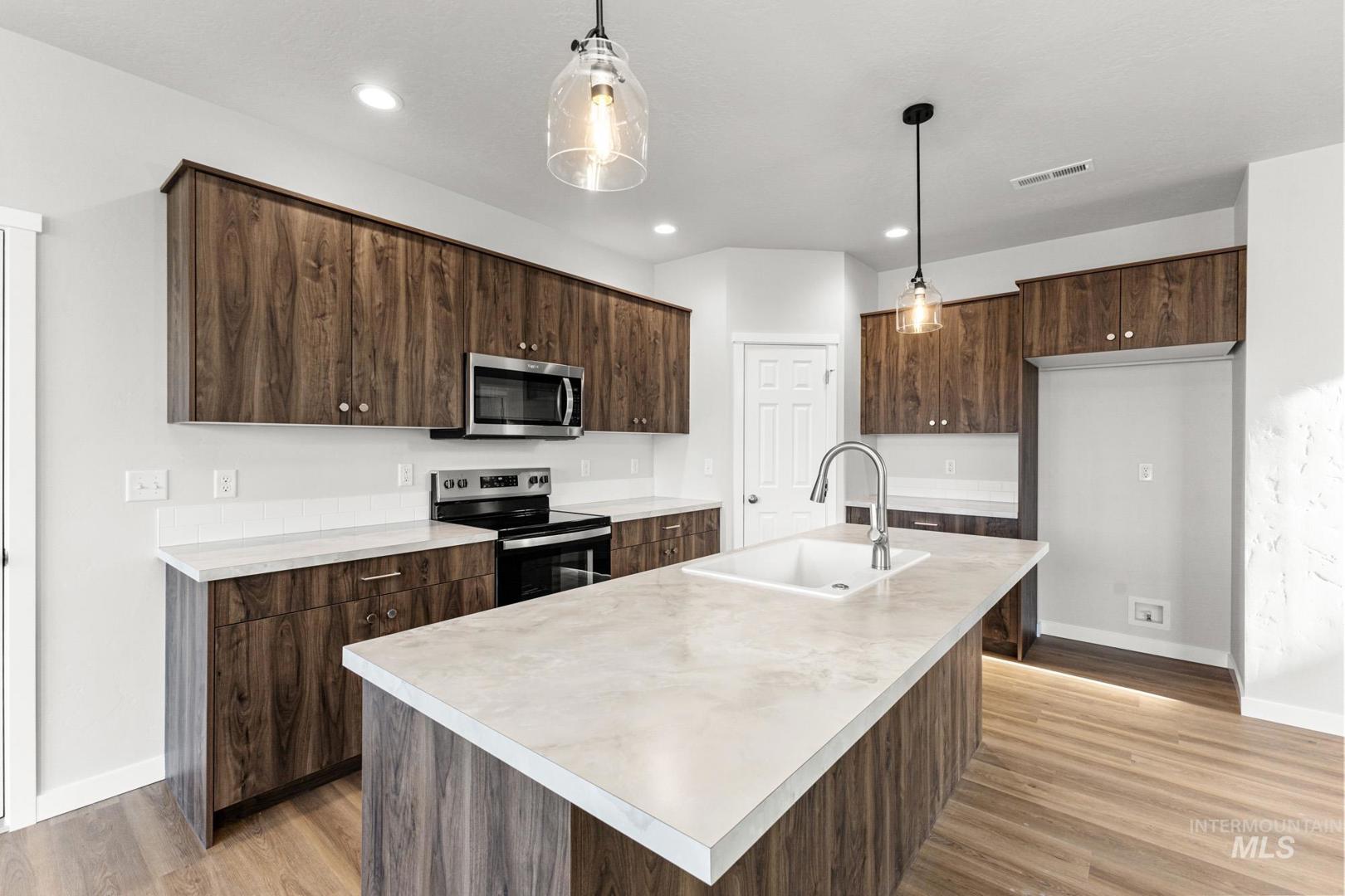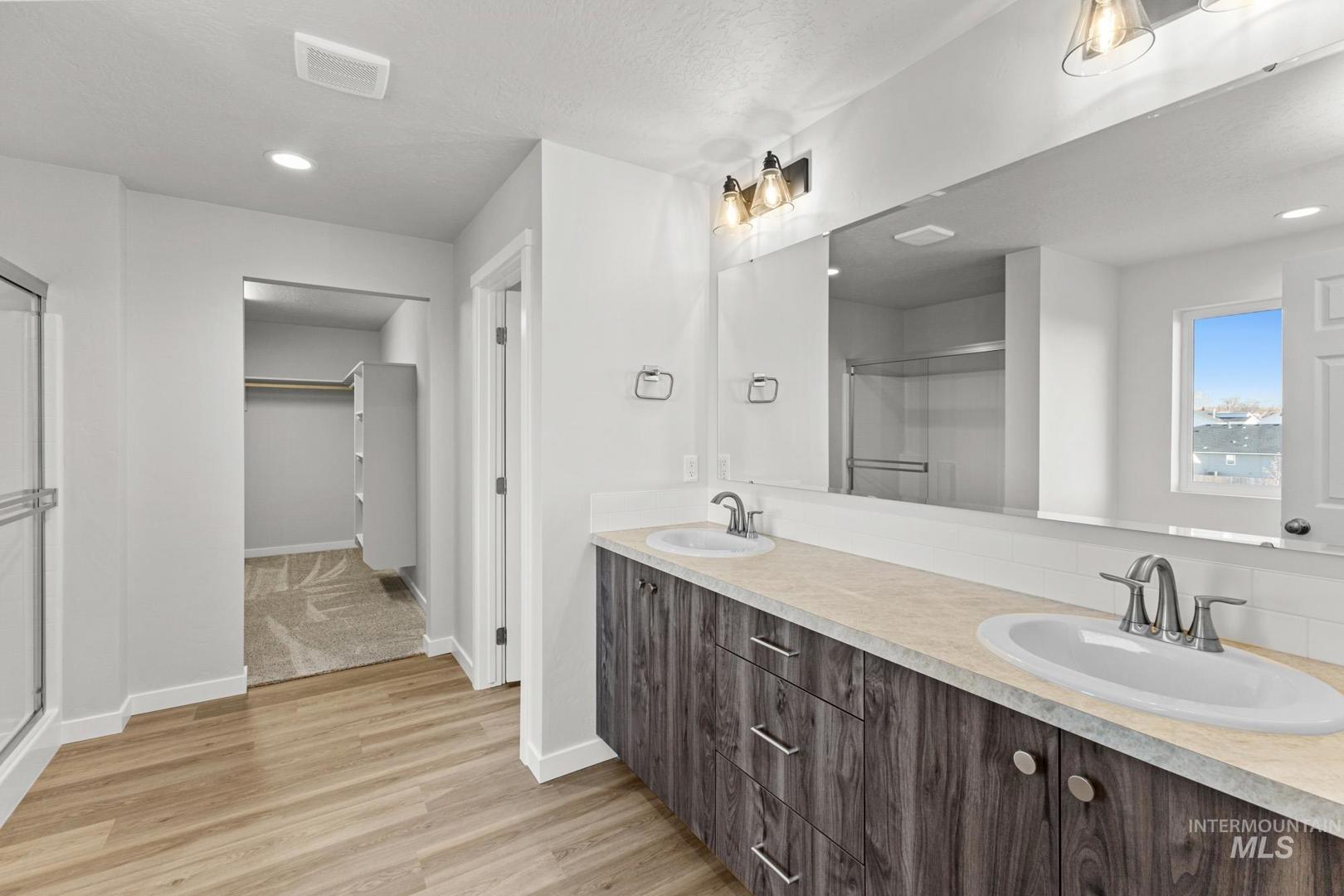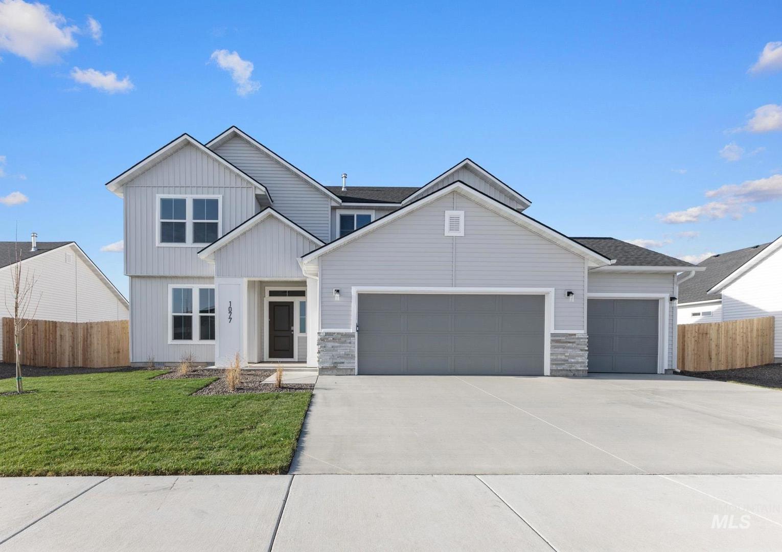 Embrace the comforts of a brand new home in Middleton, Idaho. Feel love at first sight with the Glenlake 2543. The dedicated entryway welcomes you to the main level where you will find a bedroom, half bath, and a phenomenal great room. 9ft ceilings and scores of windows throughout the main level let the fresh air in! The kitchen comes with stainless steel appliances and stylish solid surface countertops, adding both functionality and aesthetics to the kitchen. The adjacent living and dining rooms ensure that no one misses a moment of the action. Explore the upstairs to enjoy the flexible loft space or unwind in the other 3 bedrooms. The primary suite beckons with its en suite bath, dual vanities, and separate soaker tub. Enjoy a perfect blend of style and function throughout the home. An additional tandem bay in the attached garage is rife with the potential to maximize storage space, park an additional vehicle, or create a home gym. Potential RV parking available. Photos are of the actual home!