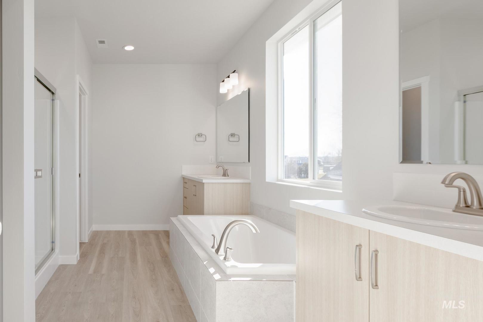 Tour the furnished model at 7260 E Marble Springs Dr. Open Saturdays 12:30-4 PM (closed the last Saturday of each month). This new home located in beautiful Nampa, Idaho has all the comforts you need & more! The Ponderosa 3937 floorplan is ideal for multi-generational living, offering dual primary suites, one on the main level and another upstairs, each designed for comfort and privacy. A striking 17’ entryway makes a bold statement, with an upstairs hallway overlooking the foyer below. Secondary bedrooms are thoughtfully positioned with two additional full baths upstairs, perfect for guests. The great room flows effortlessly to the patio for seamless indoor-outdoor living, and the kitchen shines as a central hub for everyday meals or entertaining. The upstairs primary suite features a dual walk-in closet and a soaker tub. Premium storage is found throughout the home. ** PHOTOS ARE OF ACTUAL HOME**. All selections are subject to change without notice, please call to verify.
