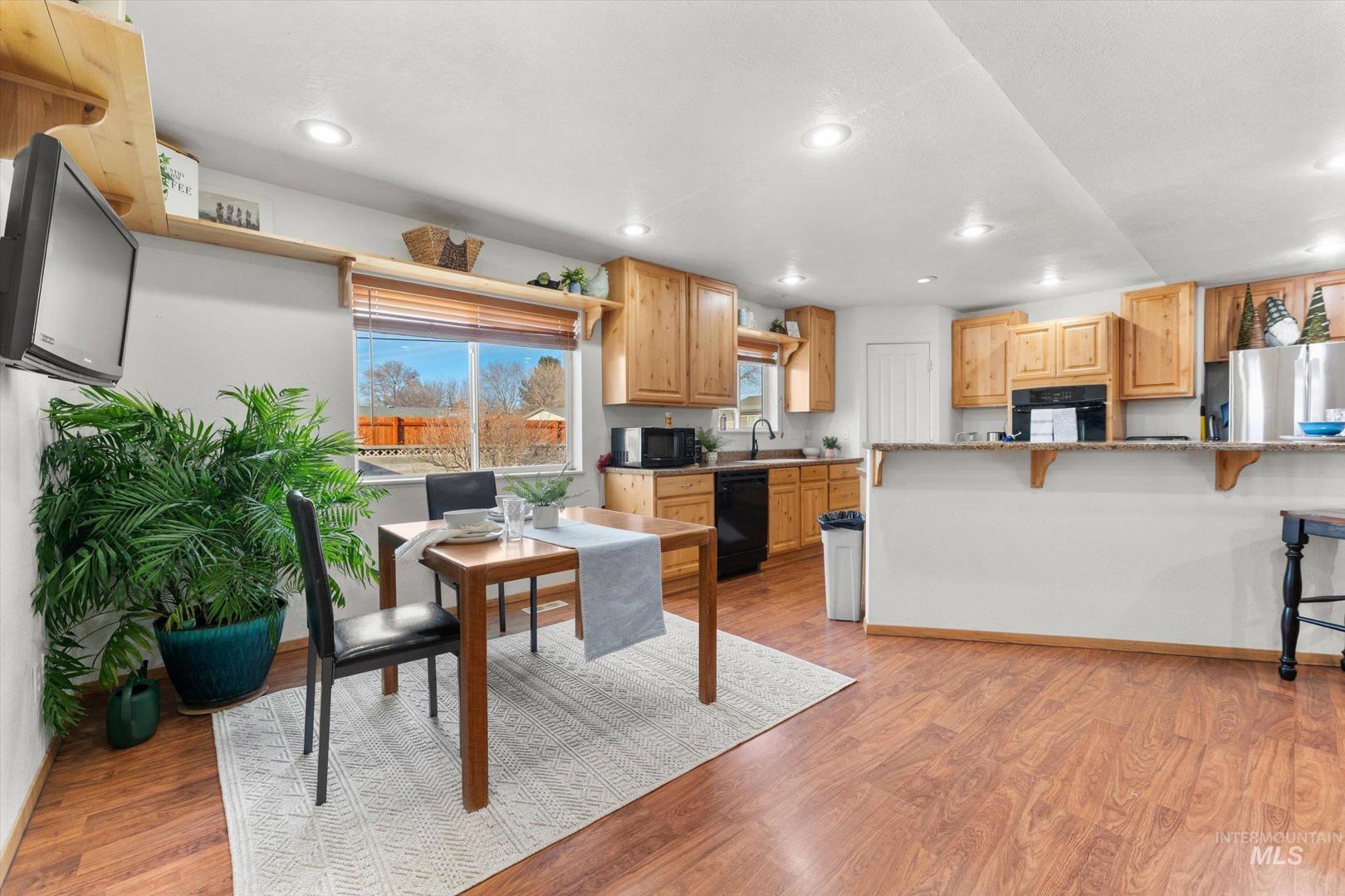 Warm, welcoming, and thoughtfully updated, this 5-bedroom, 2-bath basement home offers the space and flexibility today’s families need. Lovingly extended over the years, it features two comfortable living areas—perfect for gatherings, movie nights, or a playroom or home office. Storage is abundant throughout, making everyday living easy and organized. Enjoy outdoor living year-round with both a covered front porch and a covered patio overlooking the large backyard—ideal for kids, pets, and entertaining. A large shed or workshop adds even more versatility for hobbies, projects, or extra storage. A brand-new roof and consistent maintenance provide peace of mind. Located on the north side of town with an easy commute to Boise and Mountain Home Air Force Base, this home is ready to support your family’s next chapter.