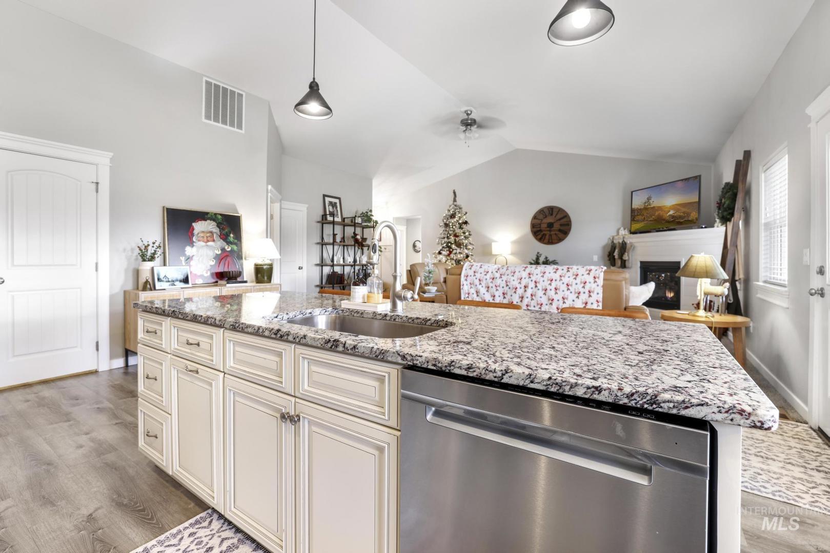 Tucked away on a rare half-acre lot, this beautifully designed 4-bedroom, 2-bath home offers space, comfort, and a peaceful lifestyle that’s hard to find. Vaulted ceilings and custom finishes welcome you inside, while a cozy gas fireplace creates a warm gathering space for everyday living and special moments alike. The kitchen is both functional and inviting, featuring custom cabinetry, an updated dishwasher, and a large walk-in pantry with built-in cabinets perfect for organization and entertaining. Each bedroom is spacious and thoughtfully designed, with the fourth bedroom currently styled as a stunning home office complete with custom built-ins. The primary suite feels like a private retreat, highlighted by a walk-in tiled shower and serene finishes. Step outside to a covered patio and a backyard that backs directly to a golf course, offering privacy and tranquil views. RV parking with a 50-amp hookup, garden space, and a finished garage with epoxy floors add exceptional versatility. Located just minutes from the hospital, Costco, and local restaurants, this home is ideal for retirees or families seeking both convenience and calm.