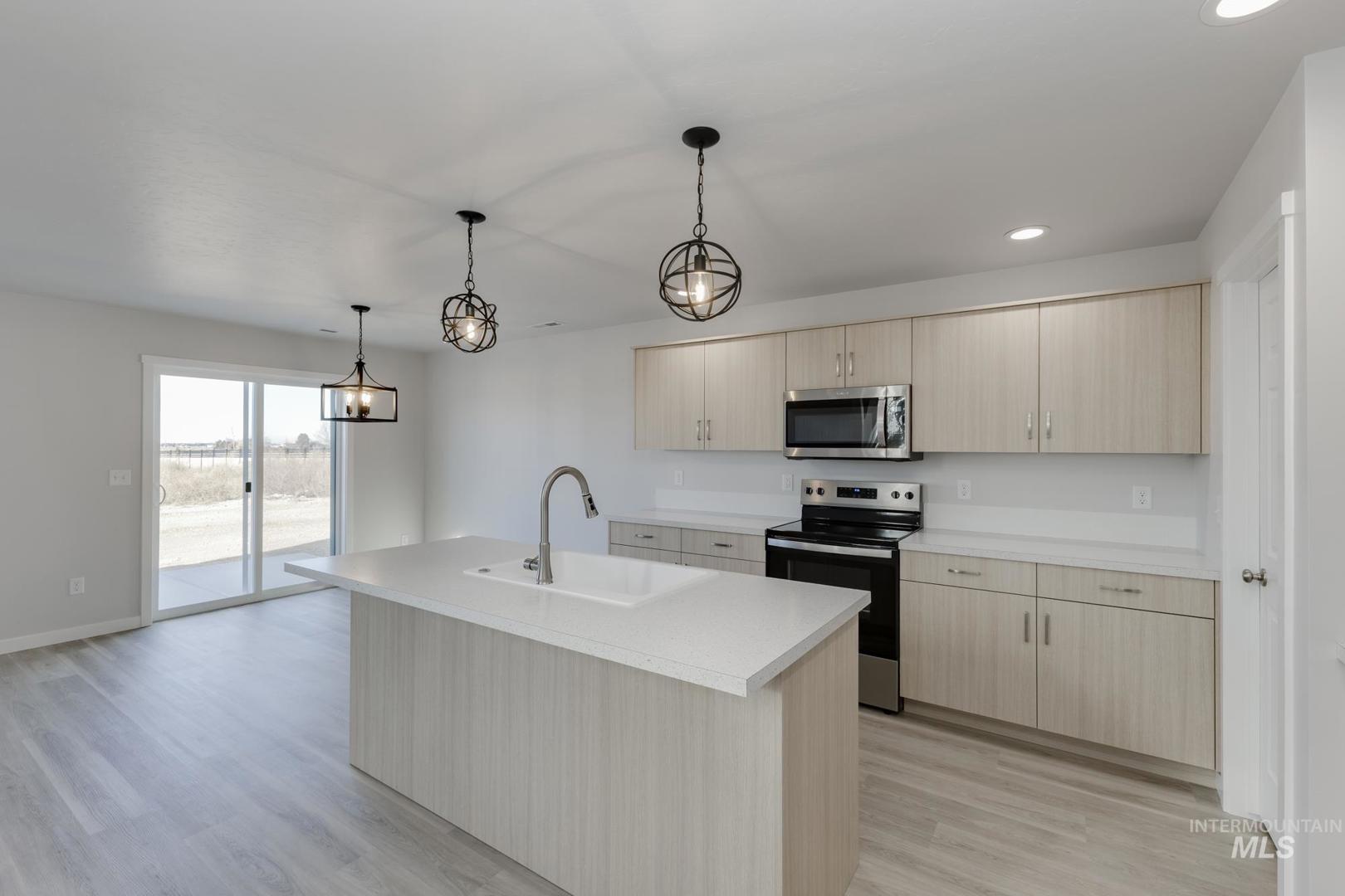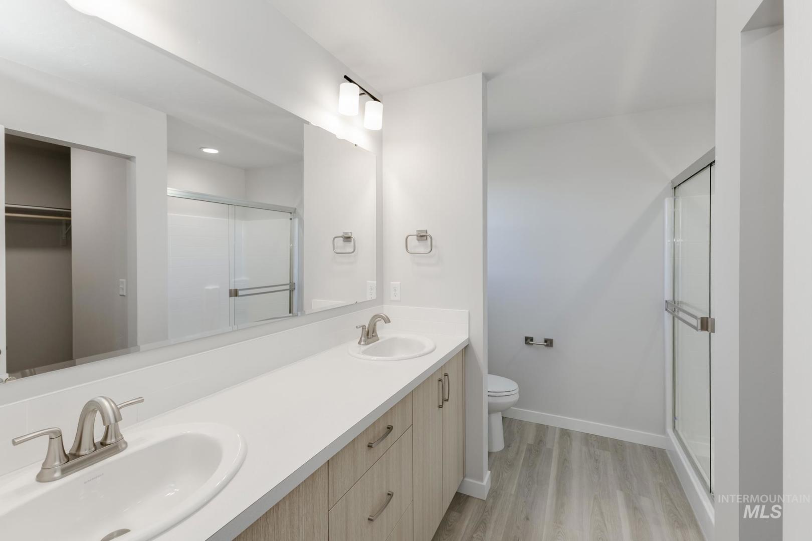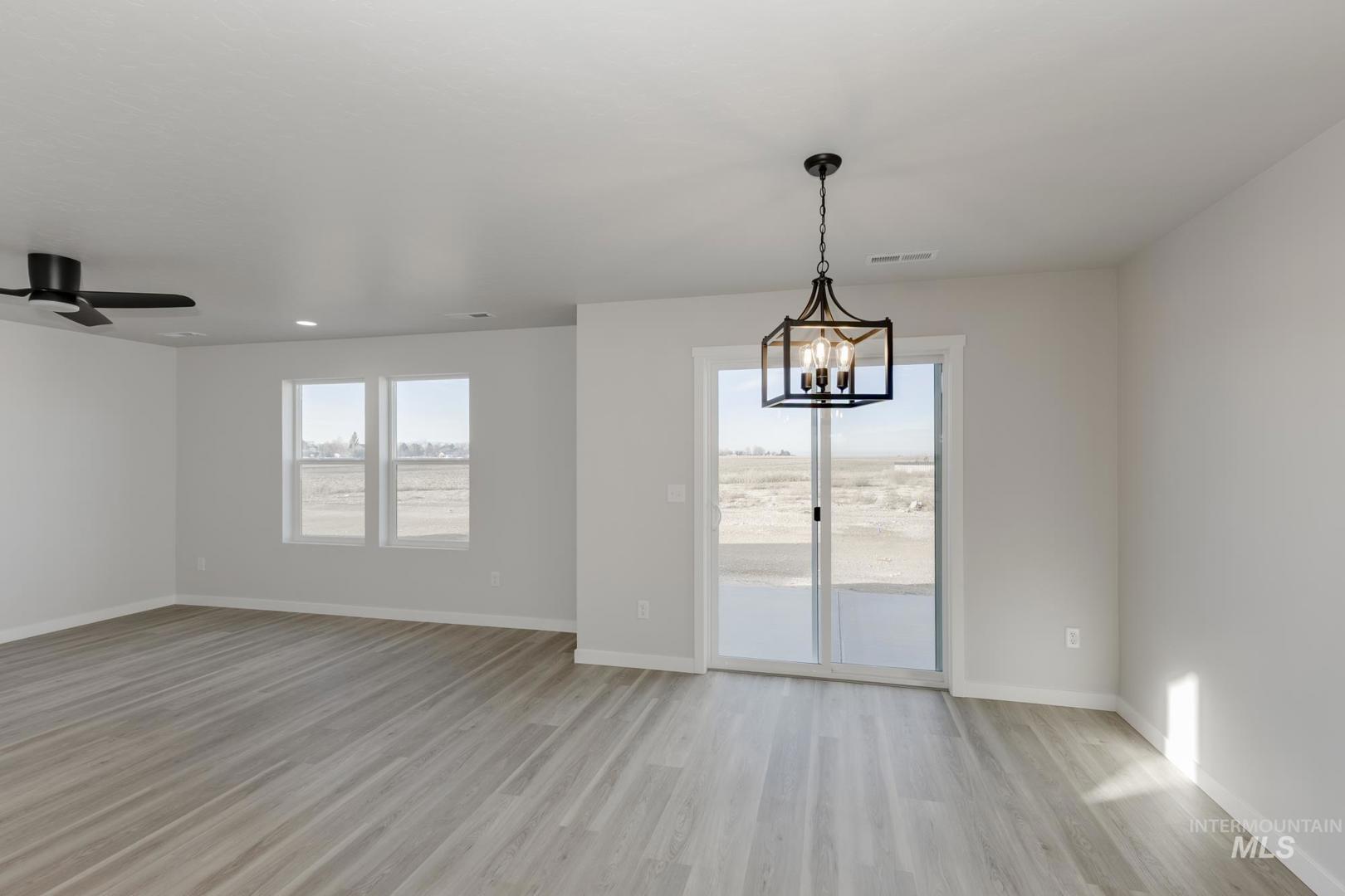 Be Mine at 3.99% – promotional rate available! Ask a Sales Specialist for details. Tour the furnished model at 1776 W Unforgettable St. Open Saturdays 12:30-4 PM (closed the last Saturday of each month). This brand new home located in vibrant Meridian, Idaho welcomes you with open arms. The Hugo 1650 is endearingly charming and reassuringly practical. The main level welcomes occupants and guests alike with open and friendly living spaces. A spacious kitchen island overlooks the living room and dining room. Easy access to the yard is just right outside of the dining room. Head upstairs where a primary suite spans the entire rear of the home and contains a walk-in closet and spacious en suite bathroom. The two other bedrooms and the laundry room are also situated upstairs along with a full bathroom. The garage offers plenty of space to park cars and toys or use as storage. A versatile layout provides endless possibilities for customizing the home to suit your needs. With thoughtful touches throughout, the Hugo is designed to enhance your lifestyle. You`ll quickly feel right at home. **photos are of the actual home!"**. All selections are subject to change without notice, please call to verify.