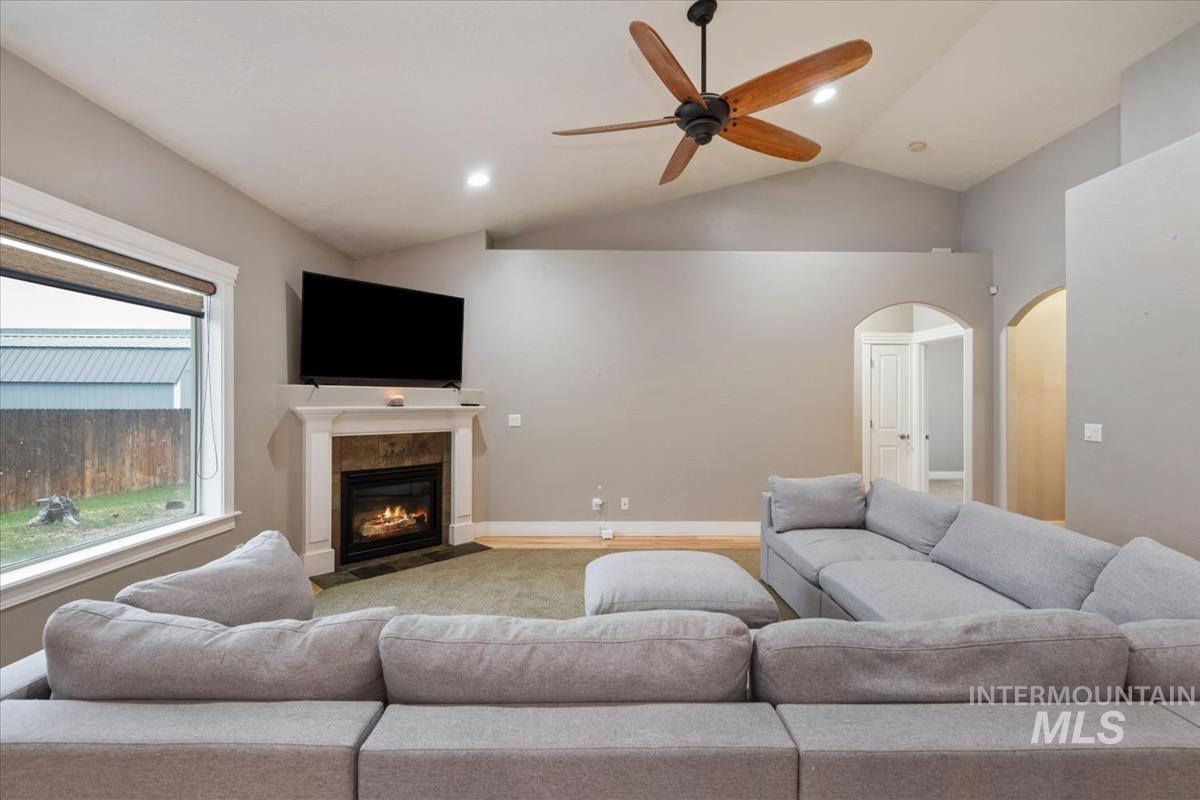 No HOA! Beautiful 1916 sq ft home located in the desirable Silverstone subdivision, just minutes from I-84 and MHAFB. This pristine 4-bedroom, 2.5-bathroom residence offers an ideal blend of elegance and functionality. The split floor plan provides privacy and comfort, while the inviting gas fireplace and durable hardwood-style flooring add warmth and style throughout. The primary suite features a large walk-in closet, soaker tub and thoughtful design. Additional highlights include city FIBER already installed, water softener and covered patio perfect for outdoor enjoyment. Completing this home is a 3-car garage with ample storage and parking.