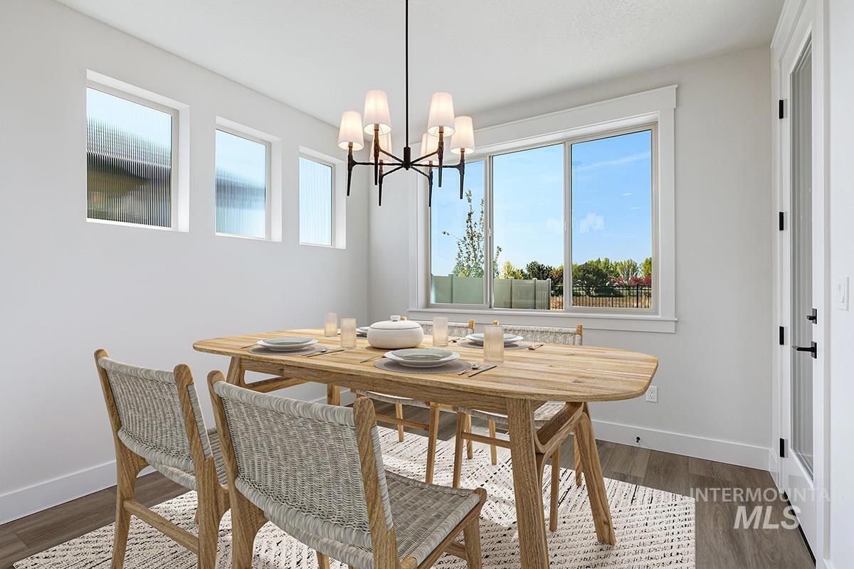 The FOXFIRE MODEL| Blackrock Homes. MOVE -IN- READY! *PROMO - $10K towards closing costs or rate buy-down! Located on larger corner homesite w/east facing backyard. Featuring 30` deep RV/Boat Bay with 9` x 11` door. Apart of the Pinnacle Collection at Skybreak- Enjoy COMMUNITY POOL, pickle ball courts, playground + community dog parks! Upgraded finishes include custom cabinets, all quartz countertops, hardwood (lvp), upgraded trim detail including ceiling beams in living room, SS appliances including built-in 5 burner industrial gas range, built in oven, microwave & dishwasher. Walk-in butler`s pantry + tons of additional storage throughout. Light & airy floor plan w/lots of natural light & cozy fireplace. Tile floors in laundry, secondary & primary baths. *interior photos similar and of same interior package but not of actual home. Buyer to verify all.