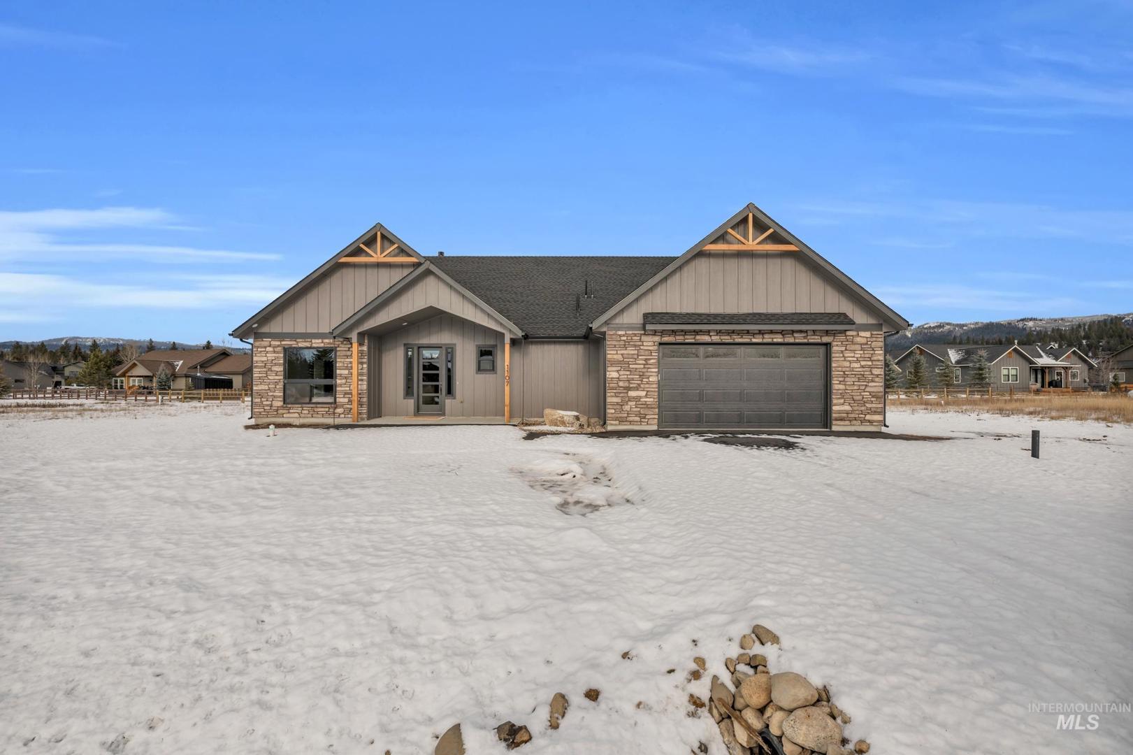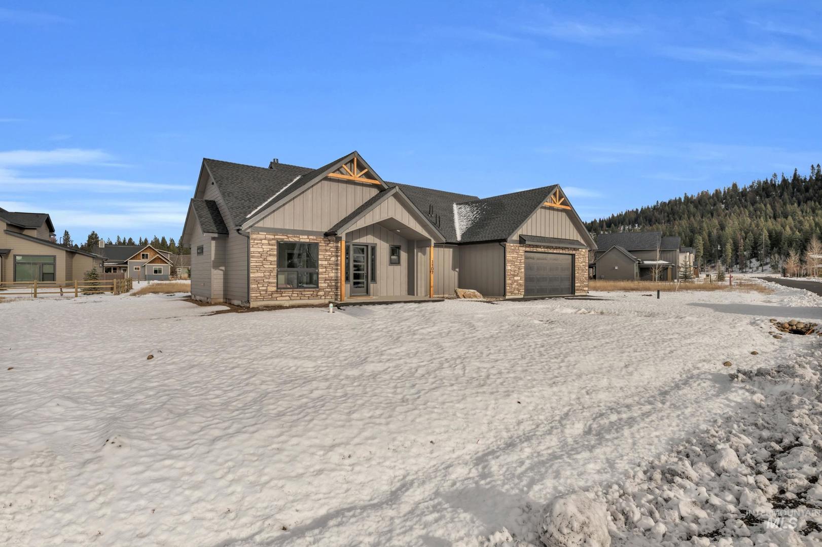 Welcome to your dream home in McCall, Idaho inside of Lick Creek Meadows subdivision. This stunning three-bedroom, two-and-a-half-bathroom masterpiece offers breathtaking 360-degree mountain views. As you step into the living area, you`re greeted by vaulted ceilings, a majestic stone fireplace, and expansive windows designed to showcase the surrounding beauty. The gourmet kitchen boasts a large island, stainless steel Bosch appliances, custom cabinetry and a gas range making it a chef`s delight. Two spacious guest bedrooms, each with private walk-in closets, share a well-appointed Jack-and-Jill bathroom. The luxurious master suite features its own vaulted ceilings, floor-to-ceiling windows, a walk-in tile shower, a soaking tub, and an impressive walk-in closet. The vaulted patio is perfect for outdoor living, offering ample space for entertaining or relaxing. Close to Lake, Ponderosa Park and The golf course, This home is also AIRBNB friendly, providing endless possibilities. - Full landscape provided.