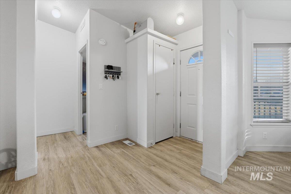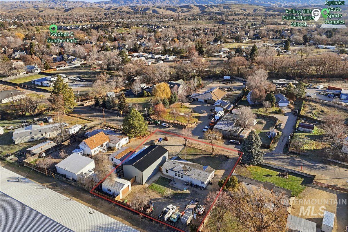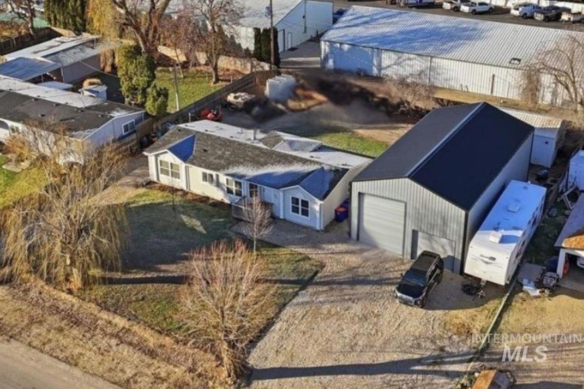 This standout property delivers the perfect mix of comfort, function, and freedom-located in the heart of downtown Eagle, just steps from local shopping, dining, parks, and everyday amenities. Anchored by an impressive shop and generous outdoor space, it’s ideal for those seeking flexibility, storage, and room to live and work. Inside, the home features durable LVP flooring, fresh neutral tones, and abundant natural light. The living area centers around a cozy fireplace with a classic surround, creating a warm focal point. The open-concept kitchen and dining area offers excellent flow for everyday living and entertaining, highlighted by a center island, ample cabinetry, stainless steel appliances, updated counters, sinks, and faucets, plus modern pendant and recessed lighting. Large windows fill the space with natural light, enhancing the airy feel. Wide hallways and a covered front entry add to the home’s functional layout. Remodeled in 2019, updates include new flooring, roof, HVAC system, plus fresh interior and exterior paint—providing peace of mind and move-in-ready appeal. Outside, enjoy a private yard, expansive gravel parking, and a 30`x55` metal shop with concrete floors, a 14` roll-up door, and high ceilings—perfect for RVs, boats, trailers, or projects. With no HOA and no CC&Rs, this property offers rare flexibility in a prime location.