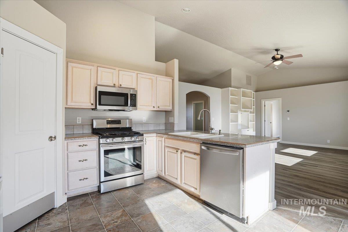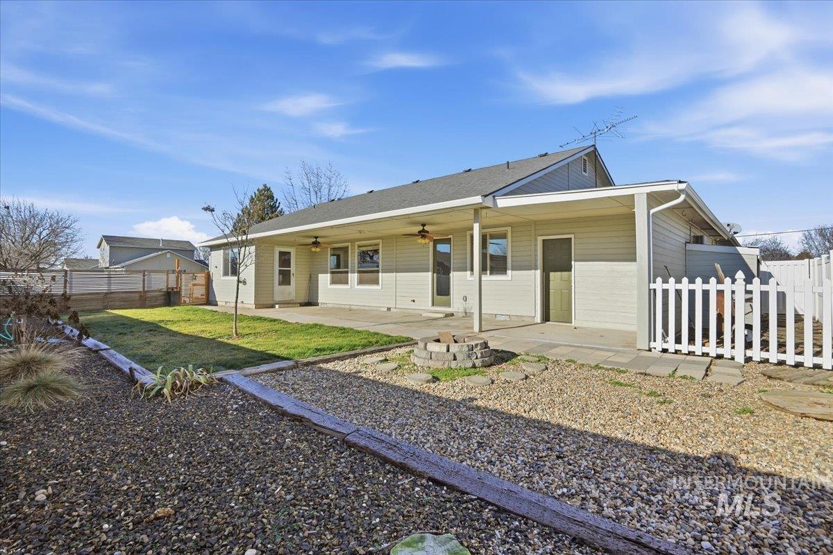 Beautifully maintained home in Fruitland, Idaho—conveniently located on Hwy 95 with quick freeway access north or south and just minutes to Ontario, Oregon. Inside, the entire home has been freshly painted, including baseboards, with professionally cleaned carpets and recently changed locks—truly move-in ready for your next clients. Enjoy two spacious living areas filled with natural light, vaulted ceilings, and a split-bedroom layout for added privacy. The kitchen flows into the great room and features stainless appliances, ample cabinetry, and a pantry. The oversized garage includes extra workspace and a finished, insulated bonus room with carpet, shelving, and a private backyard exit—ideal for hobbies, fitness, or storage. Outside, relax under a large covered patio with ceiling fans and enjoy raised garden beds gated separately from the main yard. The corner lot offers no side neighbors, attractive landscaping, a water feature, and gated RV parking with easy access. Combining comfort, flexibility, and convenience, this move-in-ready home embodies the best of Fruitland’s small-town charm and accessibility.
