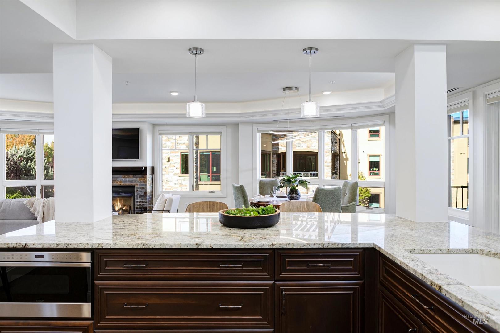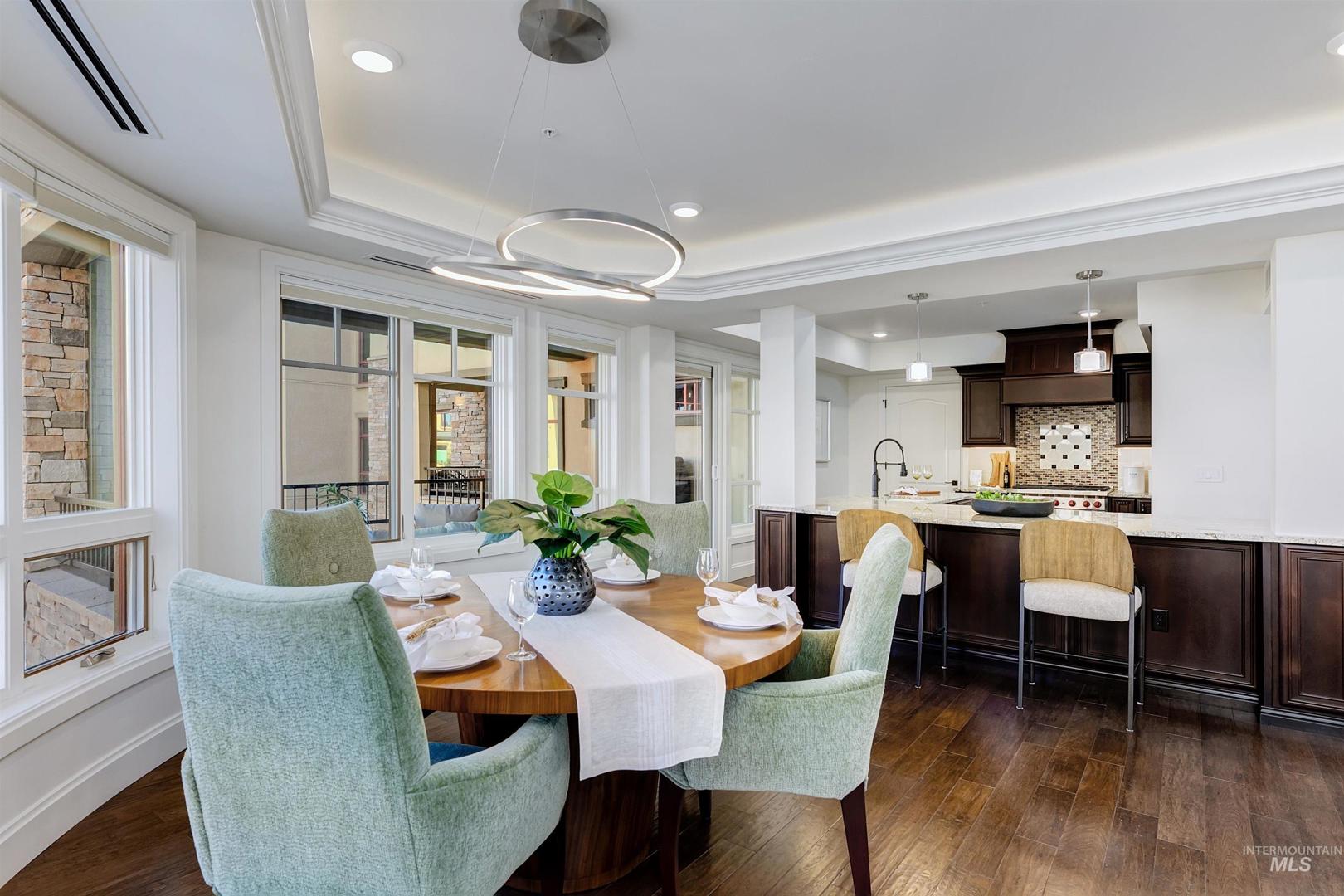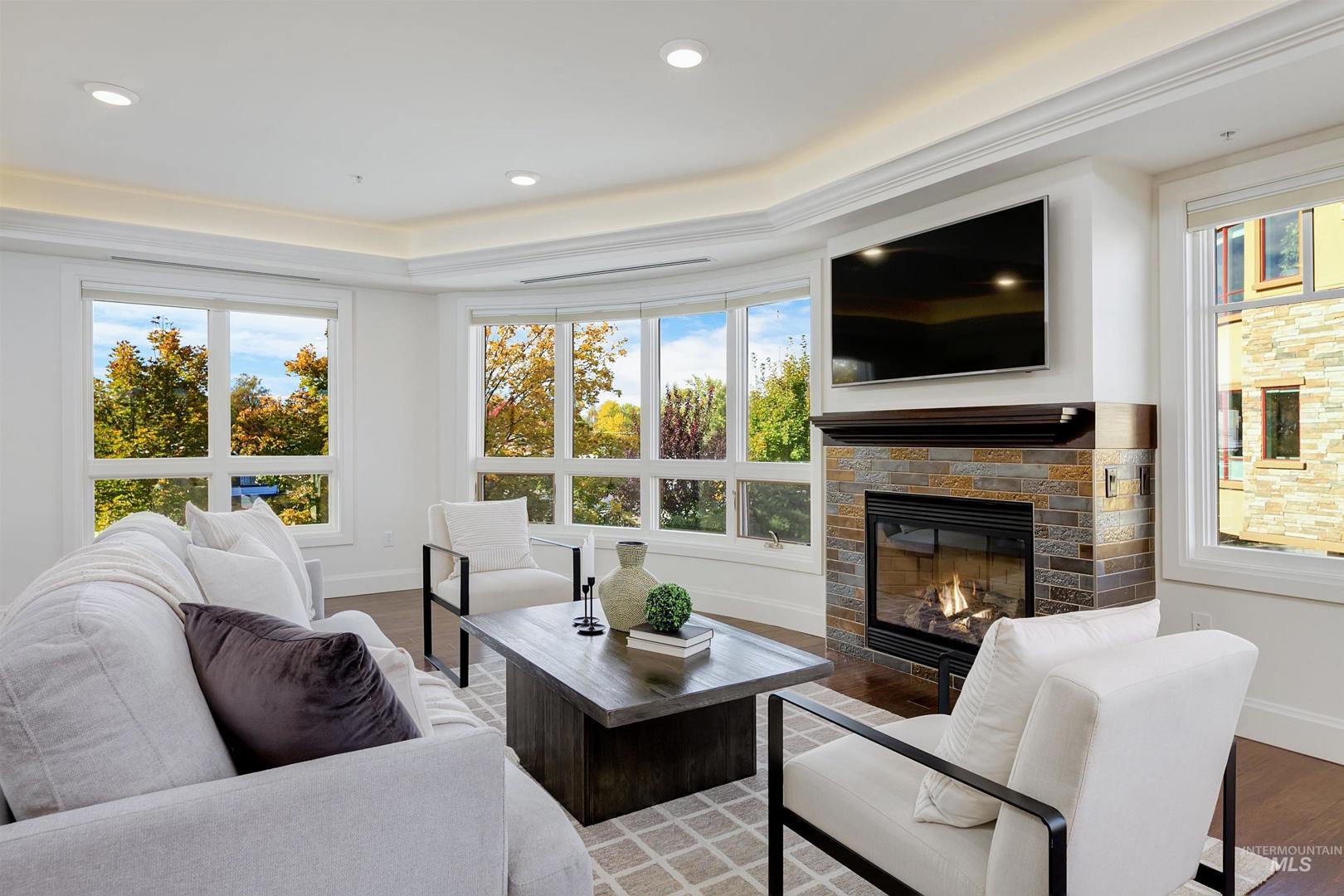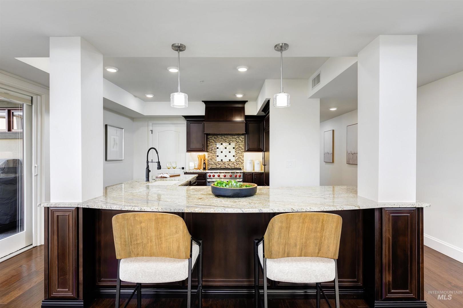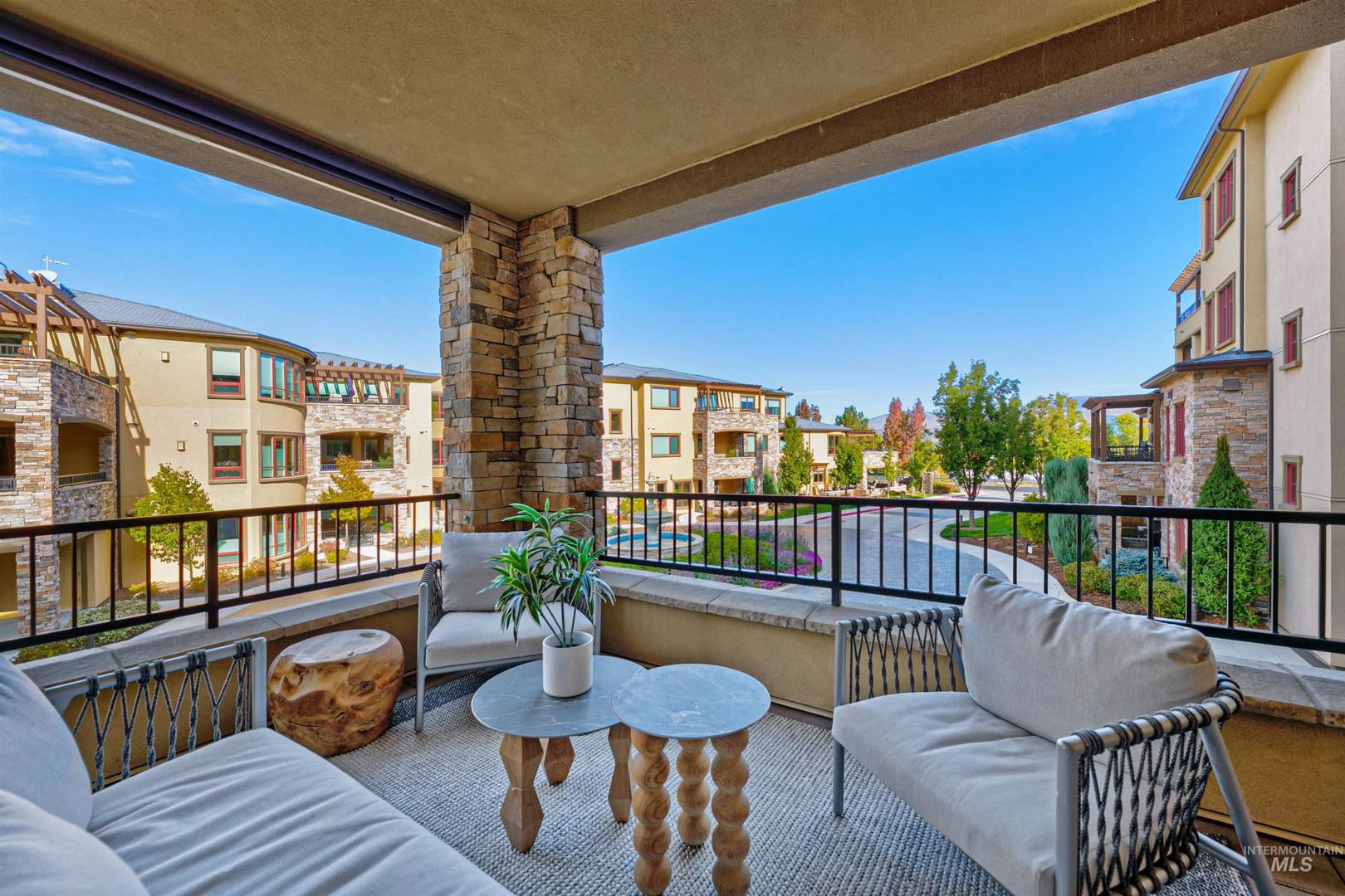 Experience the good life in this sophisticated community overlooking the city and the striking Boise Front. This desirable condo is perfect for right-sizing without sacrifice, located in a prominent community that delivers with a resort-style pool and spa, catering kitchen for your pool deck entertainment, full gym, and club room. Inside your home`s stunning gourmet kitchen, you`ll enjoy high-end Sub-Zero and Wolf appliances, quality cabinetry, granite countertops, and a spacious walk-in pantry. Well-designed plan features a spacious primary suite with a luxurious, spa-like bathroom, along with a secondary bedroom suite. Fresh interior paint and new Phantom screens add a clean finish, and an extra garage space provides significant value. The office offers a flexible option for a third bedroom.
