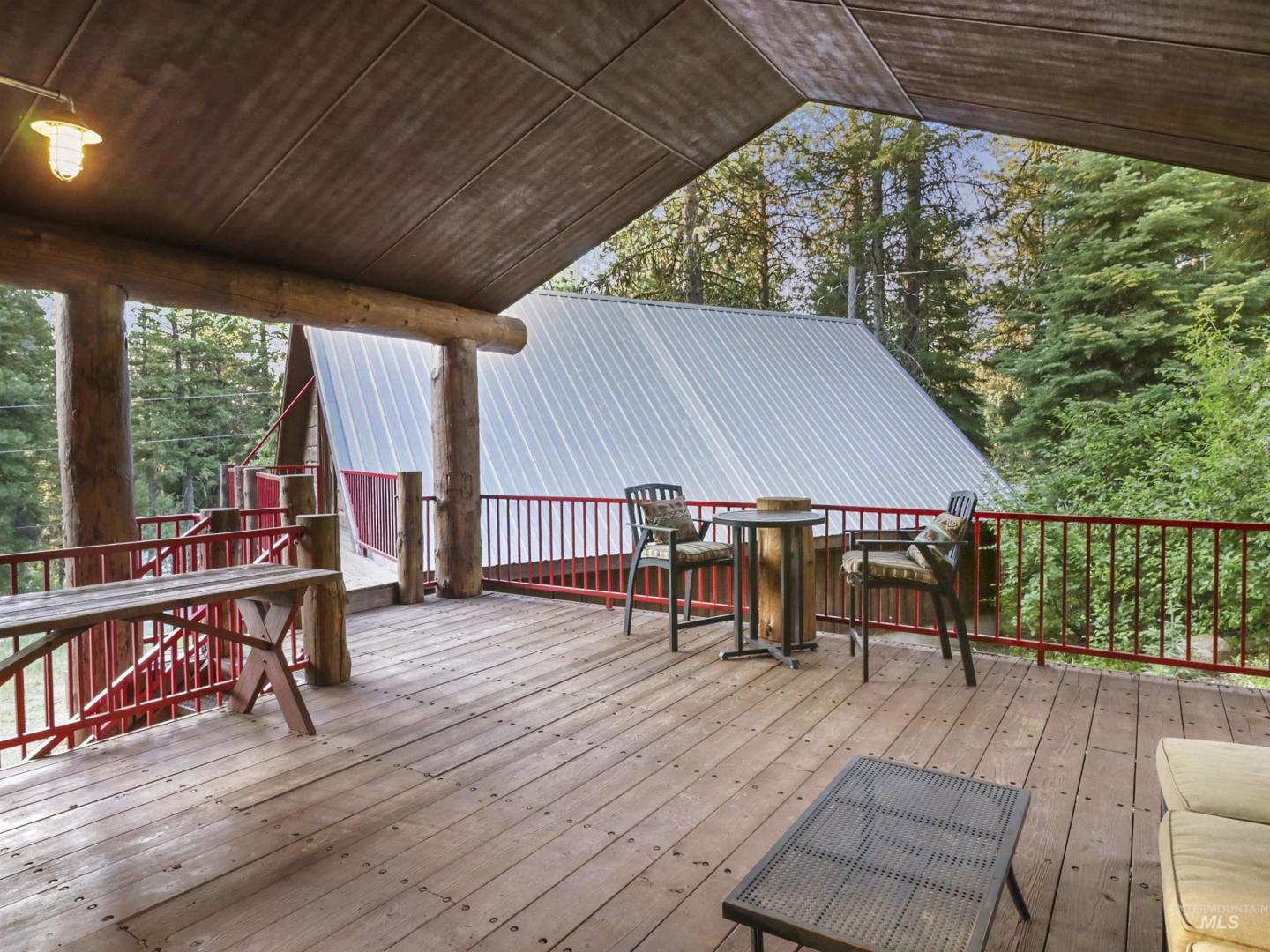 Welcome to your FULLY FURNISHED Cascade mountain getaway! This beautifully remodeled 2 story cabin is the perfect retreat for families, friends, or vacation renters. With a spacious great room and open floor plan, the home is ideal for entertaining-offering cozy mountain charm. The chef`s kitchen features 2 sinks, granite counters, custom cabinets, an island that seats 8, warming drawer, tile floors and stylish backsplash. Large, covered deck and catwalk leading to the bonus bunk/game room above the oversized HEATED 24x36 shop. Great for extra sleeping space or group gatherings. Circle drive and ample parking, including RV space, and you can access mountain trails right out your back door for all-season adventure. Minutes from Lake Cascade, golf, Tamarack and recreation. This property is an excellent vacation rental opportunity in one of the most sought-after destinations in the area. Gather by the fire or enjoy game nights with family with room for extra guests! sleeps 16+