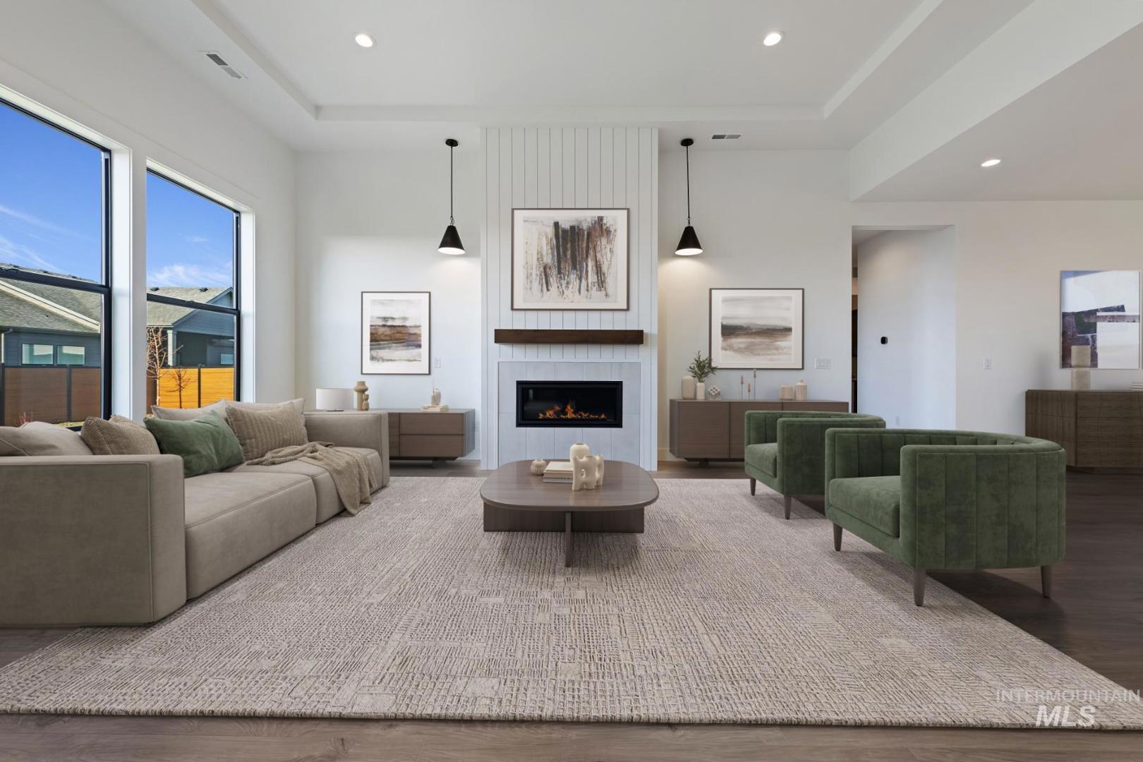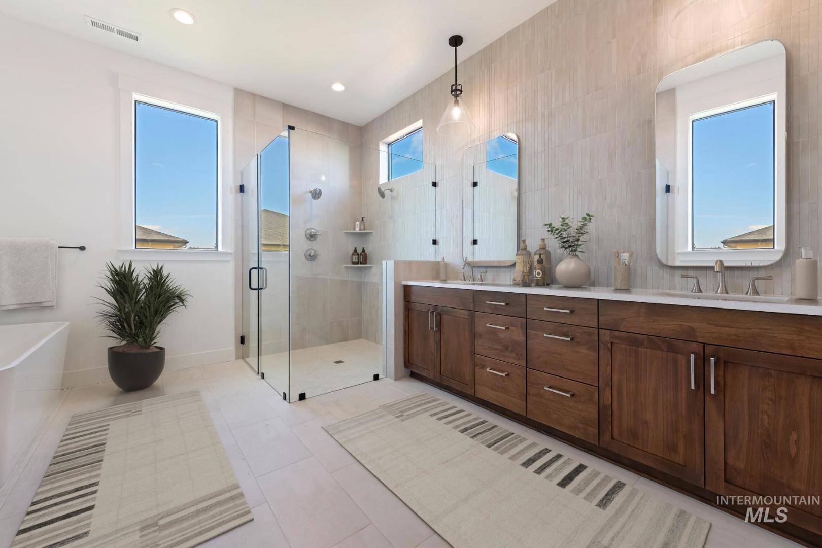 Homes is completed and Move-in Ready! Get a 4.99% (5.76% APR) on a 10/10 ARM total payment only $4,164/month! Call listing agent for more details and see attached Lender Disclosures for loan details. Or ask about other financing with preferred lender. The Aspen by Pacific Lifestyle Homes. 10` ceilings throughout. Main level primary suite with an expansive bathroom with custom glass curbless entry shower, free standing tub and large closet. The main level also features an office & a bedroom with full bath. The great room centers around a stunning floor to ceiling tile fireplace. The kitchen features a large island, cabinets to the ceiling, walk-in pantry and Bosch appliances with double oven. Upstairs features 9` ceilings, 2 bedrooms with walk-in closets and a full bath. Step out onto your covered patio and enjoy a fully landscaped and fenced backyard. Starpointe offers a community pool, playground, ponds and lookout. Model home open Wed-Sun 11am - 5pm. 6871 N Brock River Pl. Meridian.