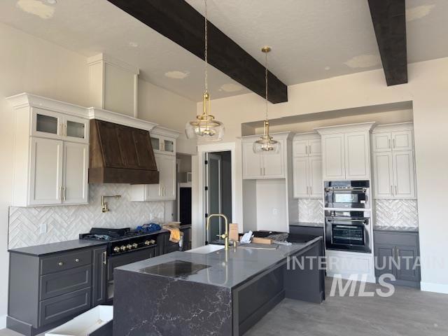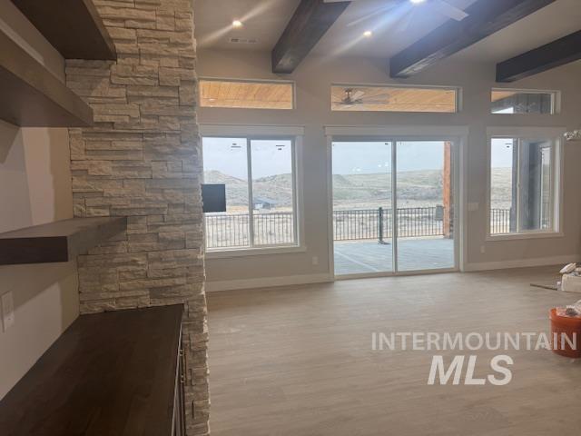 Home is not quite finished yet but come take a look! This stand out home on 4+ acres has so much detail inside & out. On the main level there are 4 bedrooms, 2.5 bathrooms, fully rocked fireplace with floating shelves & cabinets, wood beams in the vaulted ceiling, atrium windows, & a glass door to the large covered deck. The kitchen has a waterfall granite island, pot filler over the gas range, and a huge butlers pantry. This home is so classy with champagne bronze fixtures, LVP in main areas and tile bathrooms with walk in shower in primary. Downstairs there are two more bedrooms, full bathroom, large flex room and a family room with stamped concrete floors. Walk out door to the large concrete patio. Plenty of room to add a shop.
