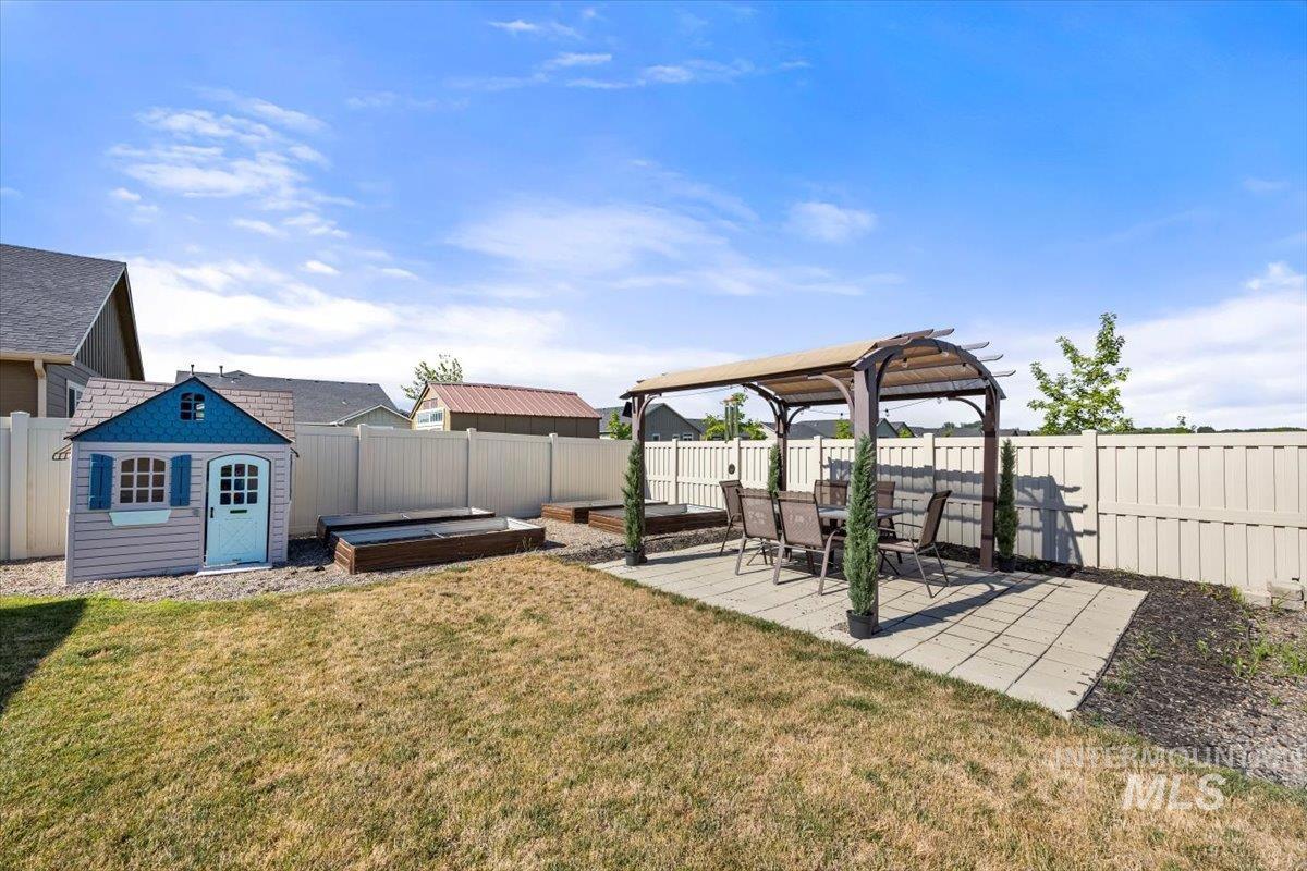 Discover this charming 3-bedroom, 2-bath home perfectly situated with direct access to a peaceful neighborhood park—no rear neighbors for added privacy! The master suite is complete with his and her`s closets. The spacious and serene backyard is designed for year-round enjoyment. Relax under the shade of the gazebo during warm summer days or cozy up by the firepit on cool winter nights. Green thumbs will love the multiple raised garden beds, perfect for growing fresh vegetables, while pet owners will appreciate the convenient dog run with a built-in dog door. This home truly has something for everyone!
