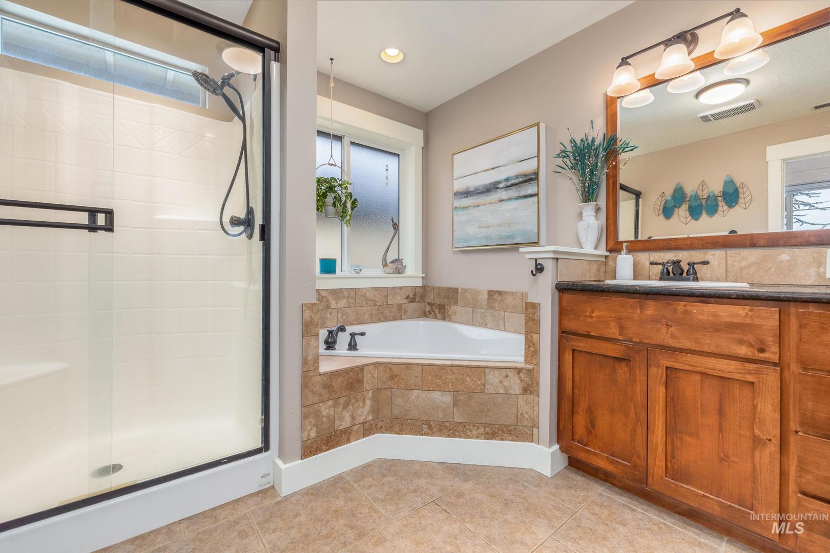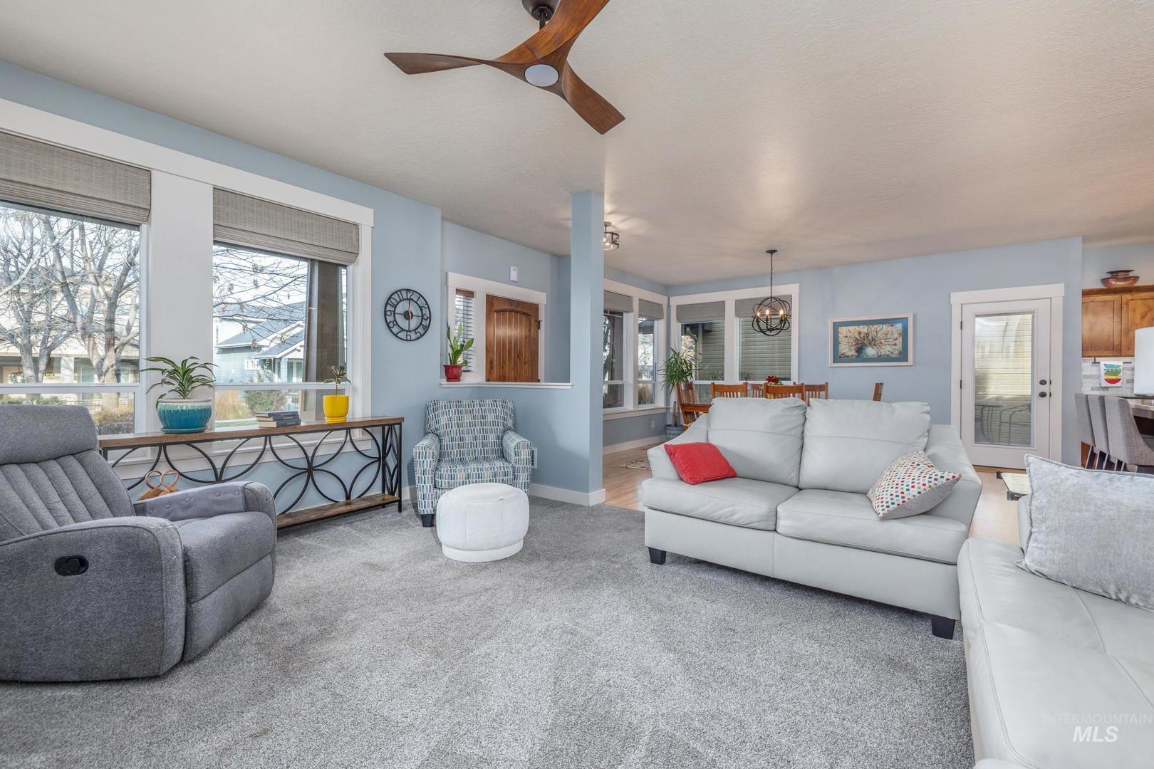 Welcome to 6756 S Talasi Avenue, a charming Craftsman-style home in Hazelwood Village. The delightful, open-concept main level is bright and spacious, with a thoughtful lay-out suited for entertaining and everyday living. The generous corner kitchen features updated stainless steel appliances, designer lighting, warm wooden cabinetry, an oversized walk-in pantry, and contrasting granite counters. Bright windows in the dining and living rooms overlook the community green, with new automated Bali shades for instant privacy. Upstairs offers an incredible primary suite with vaulted ceilings, a large walk-in closet, granite vanity with dual sinks, space-saving corner tub and separate shower. Two secondary bedrooms are comfortably sized, while the guest bath and laundry room complete the upper level. Outdoor living spaces are maximized here, with the timeless covered front porch and a grilling deck off of the kitchen, all fully contained within wrought-iron fencing, making it a usable space for play or pets. Storage abounds inside and out, with the 3 car garage strategically divided with a workshop. Enjoy the low-maintenance location on the "mews," a beautiful park-like green-space, with direct access to the clubhouse, playground, and one of two community swimming pools.