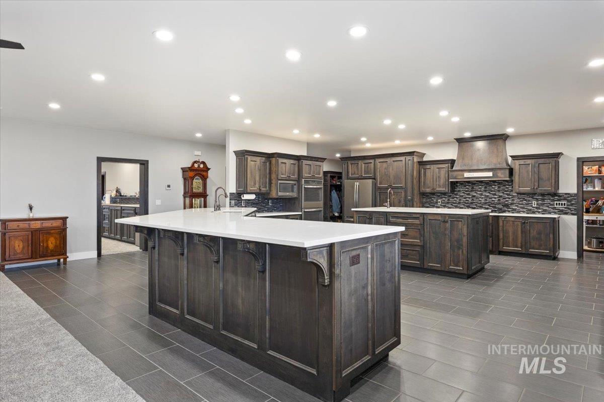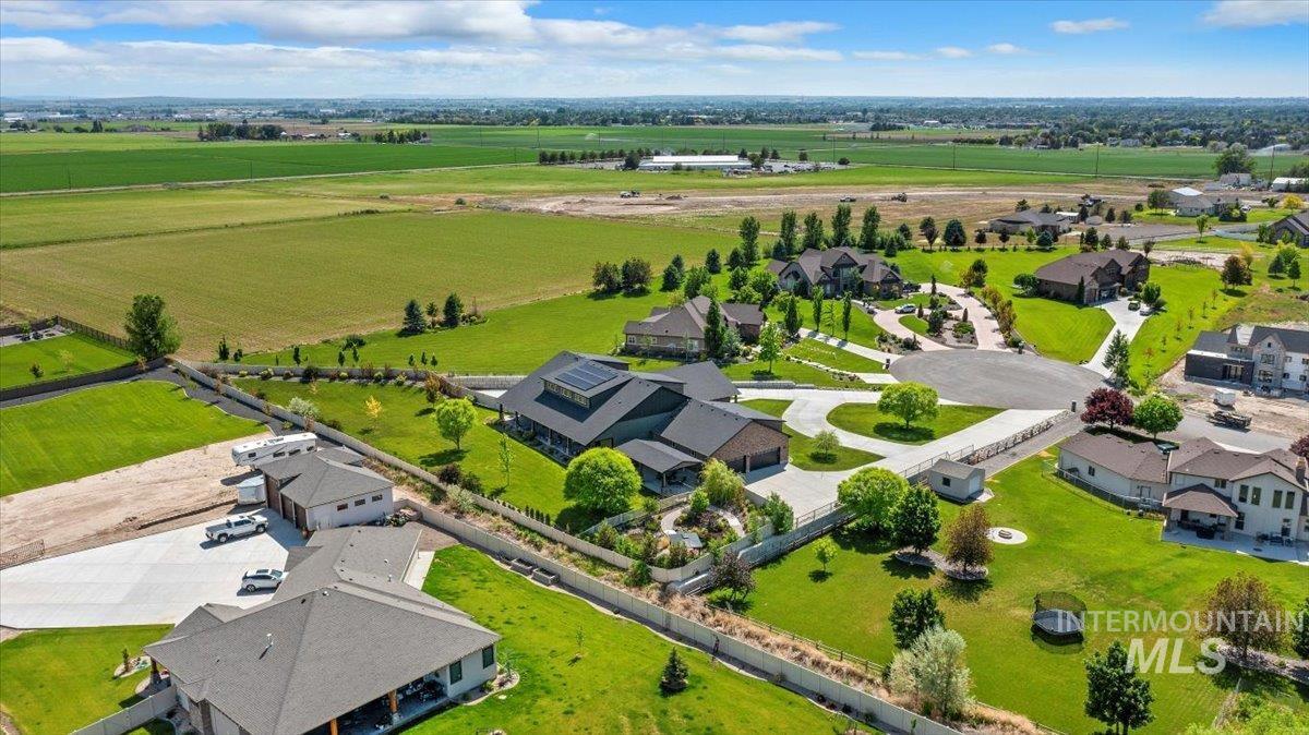 A refined, single-level residence in Wild Rose Estates, this beautifully appointed brick home spans 5,488 sq ft and offers an exceptional blend of gracious scale and thoughtful amenities just outside Twin Falls. The floorplan includes four bedrooms plus a large office and 3.5 baths, with rich finishes throughout and an expansive four-car garage with RV parking and extensive concrete work. A chef’s kitchen—designed for entertaining—boasts a BlueStar cooktop, double ovens, dual dishwashers, a substantial center island and a huge butler’s pantry, while energy-minded upgrades include a solar system and modern water-filtration and tankless systems. Outside, multiple covered patios, a low-maintenance pond with gazebo, fruit trees, and generous lawn and garden areas create a private, park-like setting for family gatherings and quiet evenings.--Appointment only