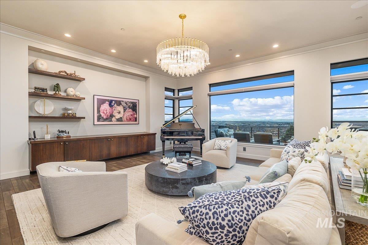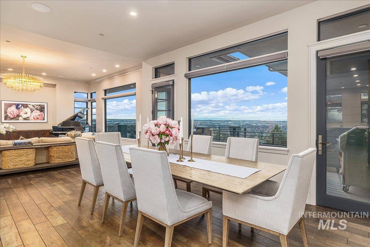 Perched above downtown Boise in the prestigious Boulder Heights enclave, this exceptional estate represents one of the most significant luxury offerings in the Treasure Valley. Set on 1.218 acres with sweeping views of the city skyline and surrounding foothills, the 7,860 square foot residence offers six bedrooms and six and a half bathrooms, blending scale, privacy, and refined design. Built in 2015 and thoughtfully enhanced over the last few years, the home is engineered for effortless living with a fully integrated Savant automation system, radiant heated floors, upgraded electrical infrastructure, a dedicated server rack, and a whole-home backup generator. Designer lighting and curated finishes elevate the interiors throughout. Designed for seamless entertaining, the residence features a private theater with laser projection and immersive sound, whole-home and exterior audio, and an indoor cabana adjacent to the pool with a built-in bar, tap system, and Sonic ice machine. Outdoors, professionally terraced landscaping creates a resort-style setting with a heated pool, hot tub, custom fire pit overlooking the city, and a resort-caliber outdoor kitchen featuring an imported Italian Mugnaini pizza oven and premium Wolf appliances. This is a rare opportunity to own a home that sets the standard for luxury, performance, and presence in one of Boise’s most sought-after locations.