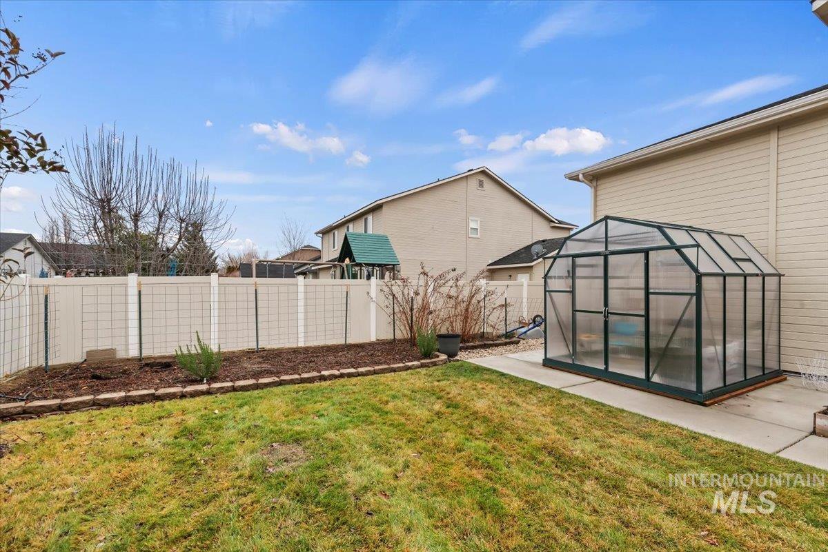 Beautifully maintained two-story home offering 2,342 sqft of comfortable living in a sought-after Meridian location. This home features 3 bedrooms, 2.5 bathrooms, den and spacious bonus room with built-in Murphy bed for the occasional guests. Kitchen includes large island, walk-in pantry and SS appliances. New updates include carpet throughout, SS microwave and SS oven. Exterior paint in 2021. A thoughtful layout provides both functionality and warmth, making it ideal for everyday living and entertaining. A spacious two-car garage plus a 36ft deep RV garage with a 10x12 door AND side trailer parking outside. Plenty of room for vehicles, toys, and storage. Outside features include covered patio, 8x8 greenhouse and garden area. Conveniently located near shopping, dining, schools, and outdoor recreation. This property combines space, location, and versatility—an exceptional opportunity in the heart of Meridian.