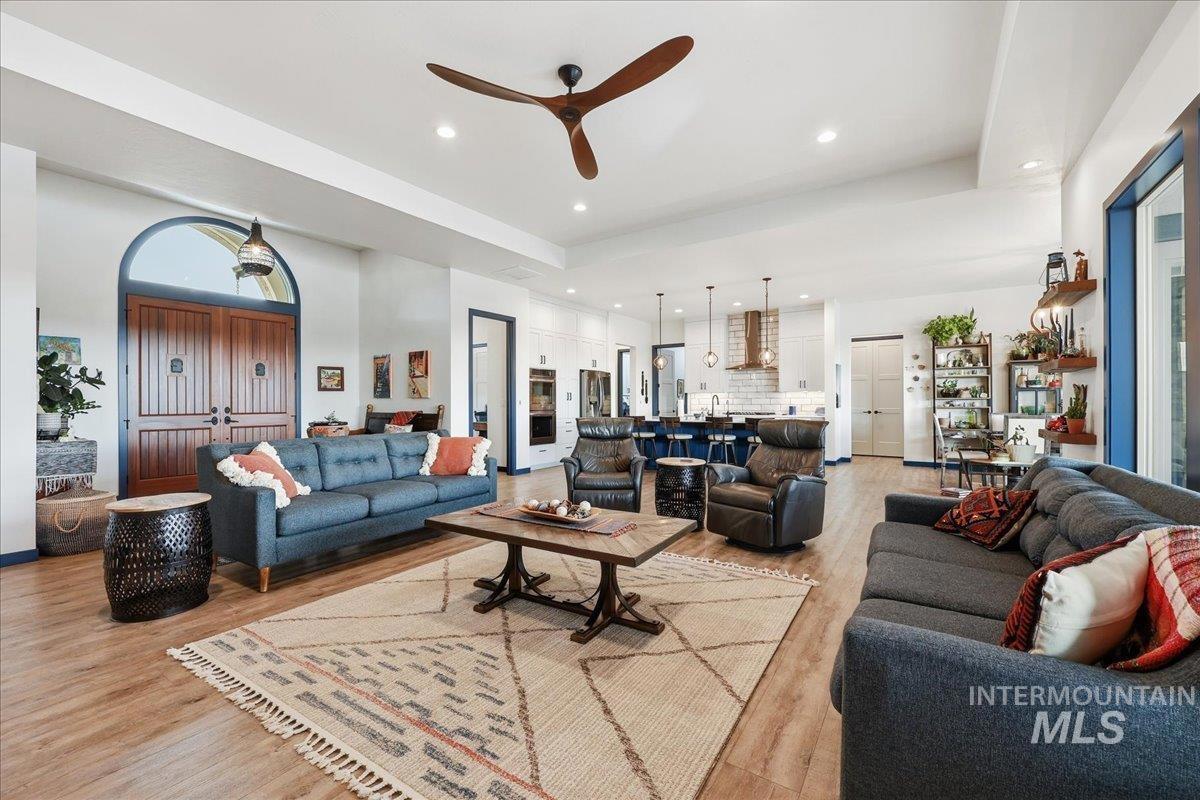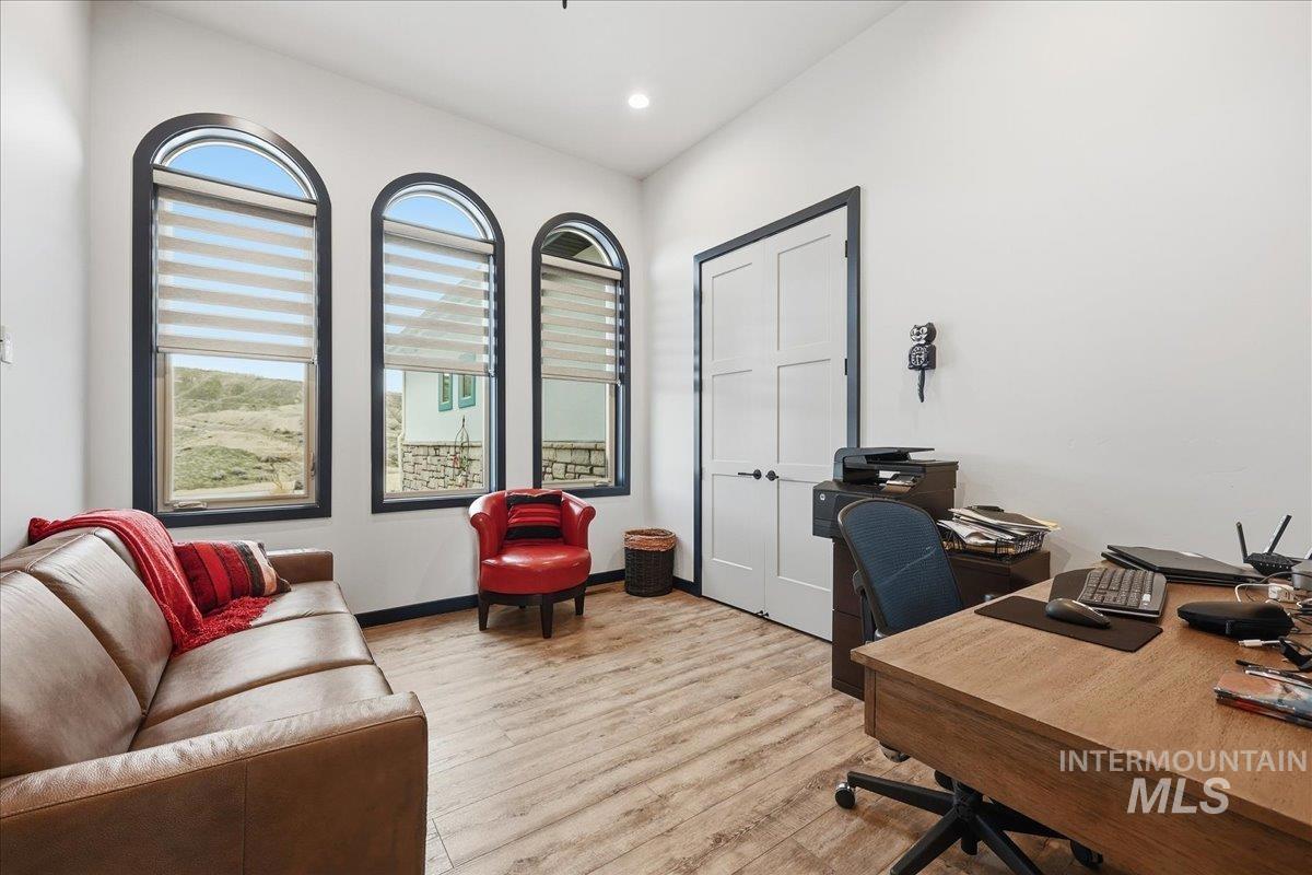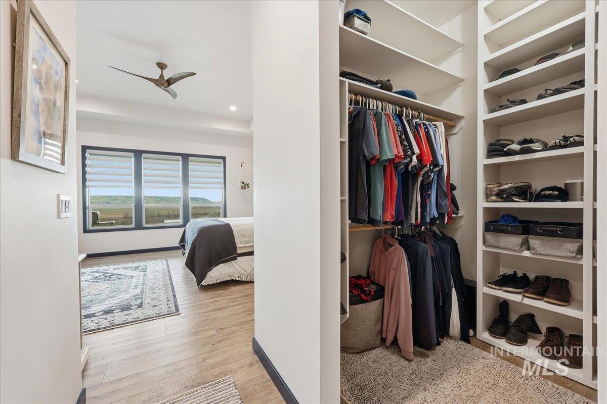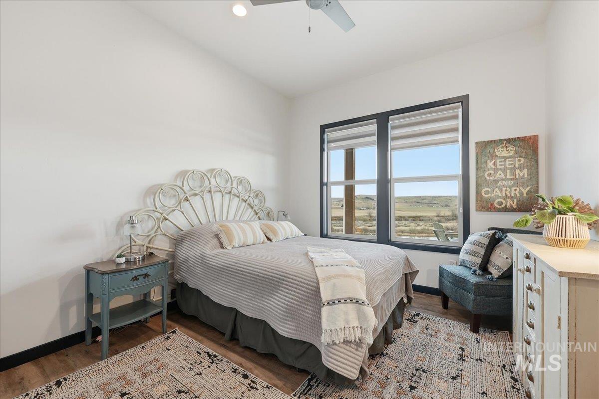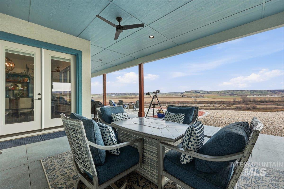Bring your telescope and Binocs!! Views of the Bogus Basin, Owyhees & Snake River! Custom built home with all the details they could think of! Sit on your huge patio (celling fans, fire pit, tv setup) and enjoy views like no other on the top of the hill! Or enjoy the inside of the home with high ceilings, great floorplan, lots of storage, custom cabinetry, soft close cabinets, dbl ovens, knife and spice rack storage, central vac & kickplate in kitchen & built in trash bins. The walk-in pantry has hard surface and outlets for all your needs. In the master bath there are dual showers heads, sprayer & bidet toilets. LVP floorings throughout home. Garage has built in shelves, complete water filtration system with reverse osmosis, water softener, tankless water heater, & electric car charger 220. Whole house fan, 2 attic fans & conditioned crawlspace. 30X30 Shop w/ 9` tall x 10` wide dual doors, shop includes electricity and insulation. No HOA or CCR`s. Bring the dogs there 4 acres for them to run the hills. Dont miss out on this home it is what dreams are made of!
