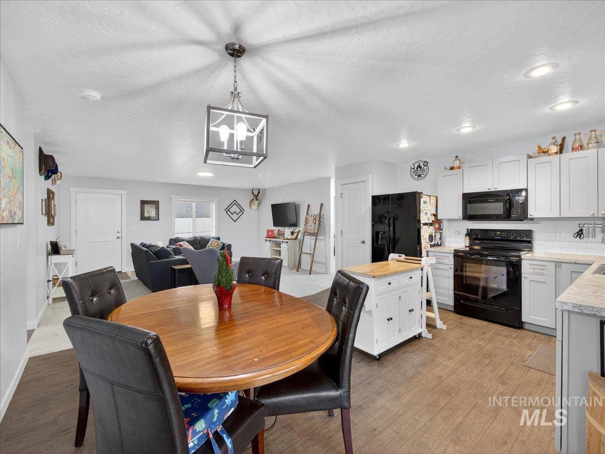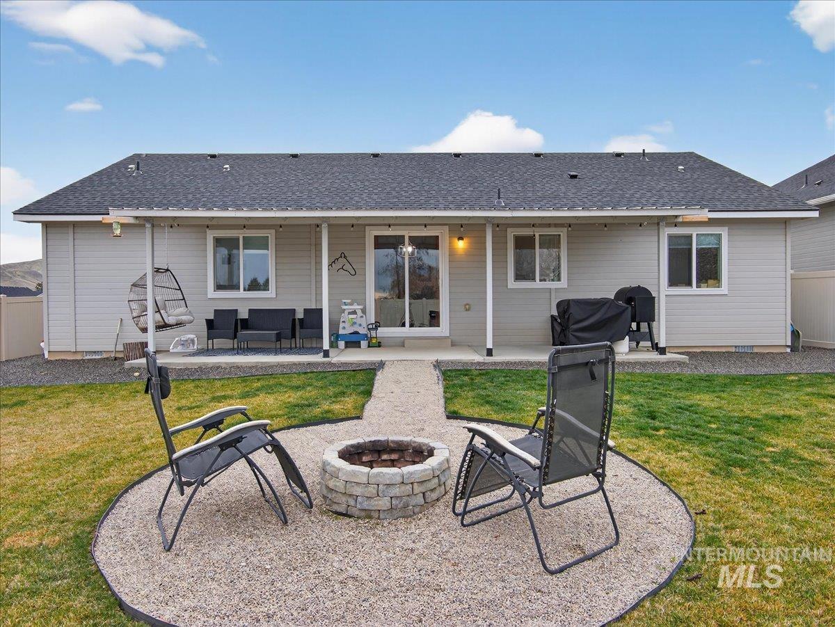 Welcome to Legacy Heights in Emmett, Idaho! This immaculate 3-bedroom, 2-bath home offers a thoughtfully designed split floor plan and an open-concept layout filled with natural light. Perfectly blending comfort and style, this inviting residence is ideal for those seeking both functionality and warmth. The private primary suite is tucked away at the rear of the home, providing added tranquility. It features a spacious walk-in closet and a well-appointed en suite bathroom-your own peaceful retreat for relaxing evenings and slow weekend mornings. At the heart of the home, the generous living and entertaining area flows seamlessly into the modern kitchen, creating the perfect space for everyday living or hosting gatherings. Whether you’re curling up with a book, enjoying movie night, or entertaining friends, this layout offers versatility and comfort. The kitchen is designed to inspire, with ample workspace and a layout ideal for cooking and connection. Step outside to an incredible backyard built for enjoyment. Take in stunning sunsets from the large covered patio, gather around the firepit, and enjoy the fully fenced and beautifully landscaped yard-ready for entertaining or quiet outdoor moments. Have toys? Plenty of room for a small trailer. This move-in-ready home has it all and is ready to welcome you. A place you’ll truly be proud to call home.