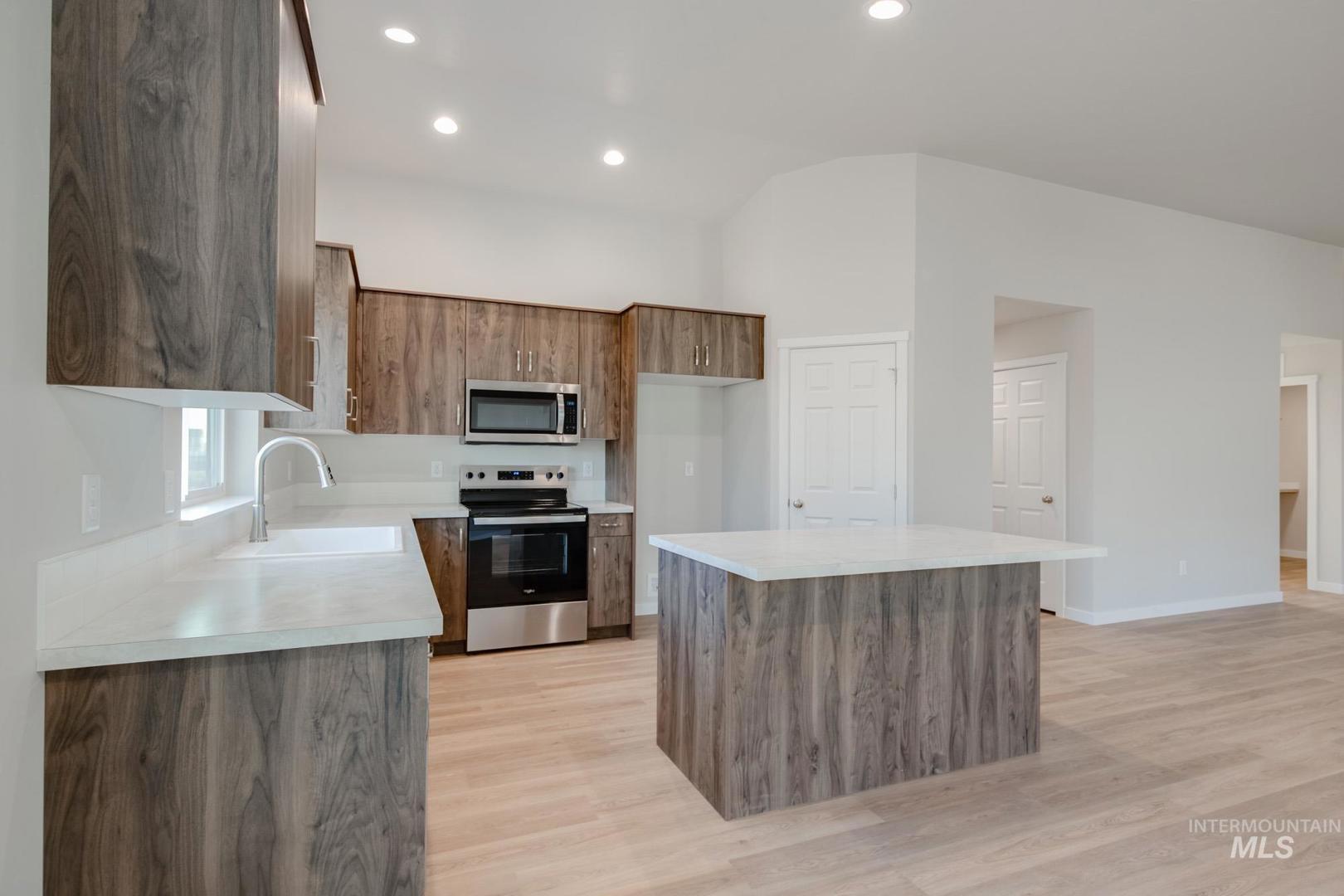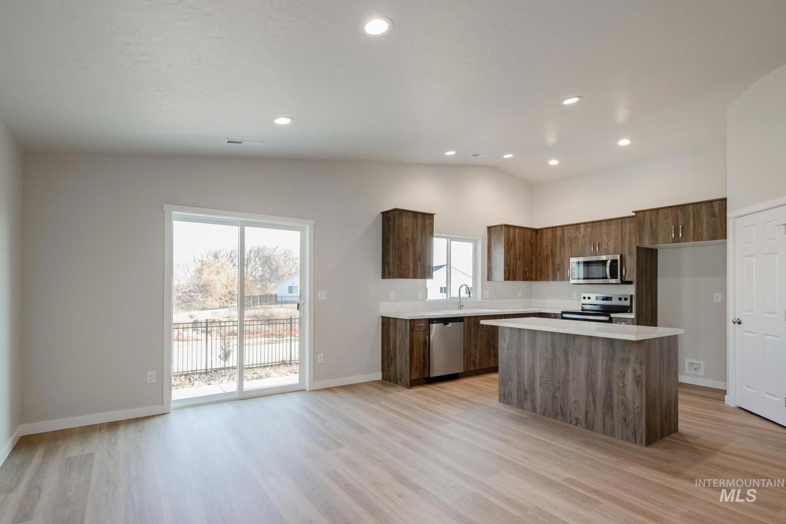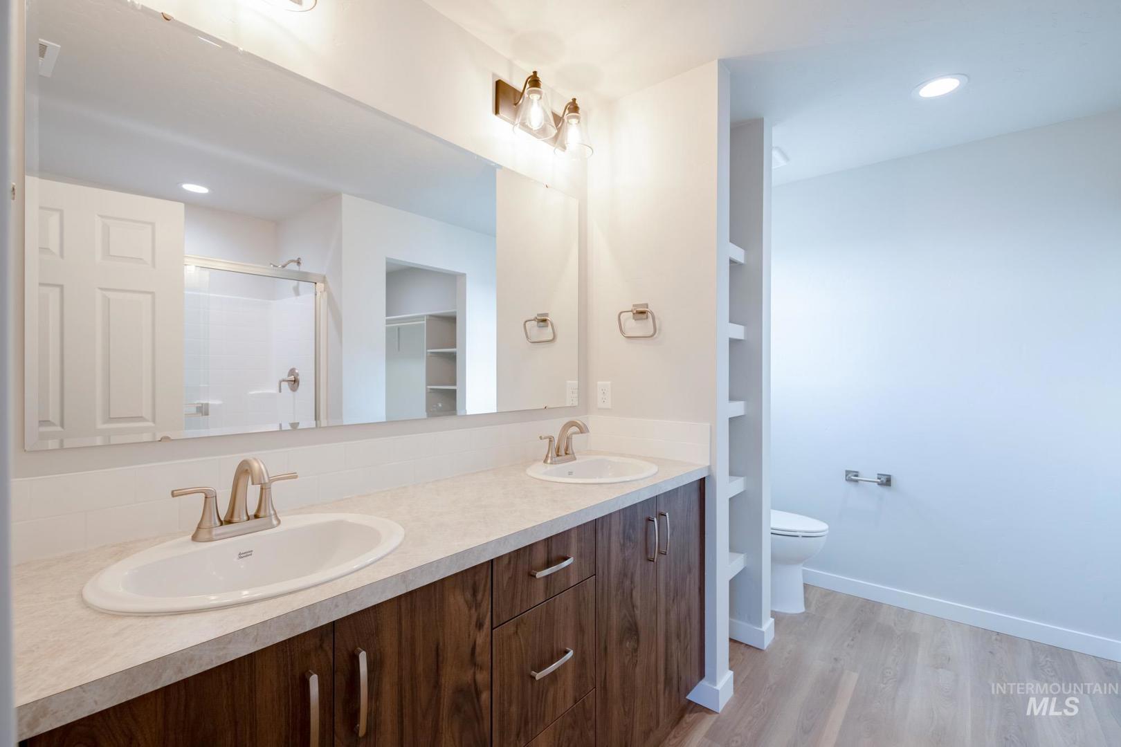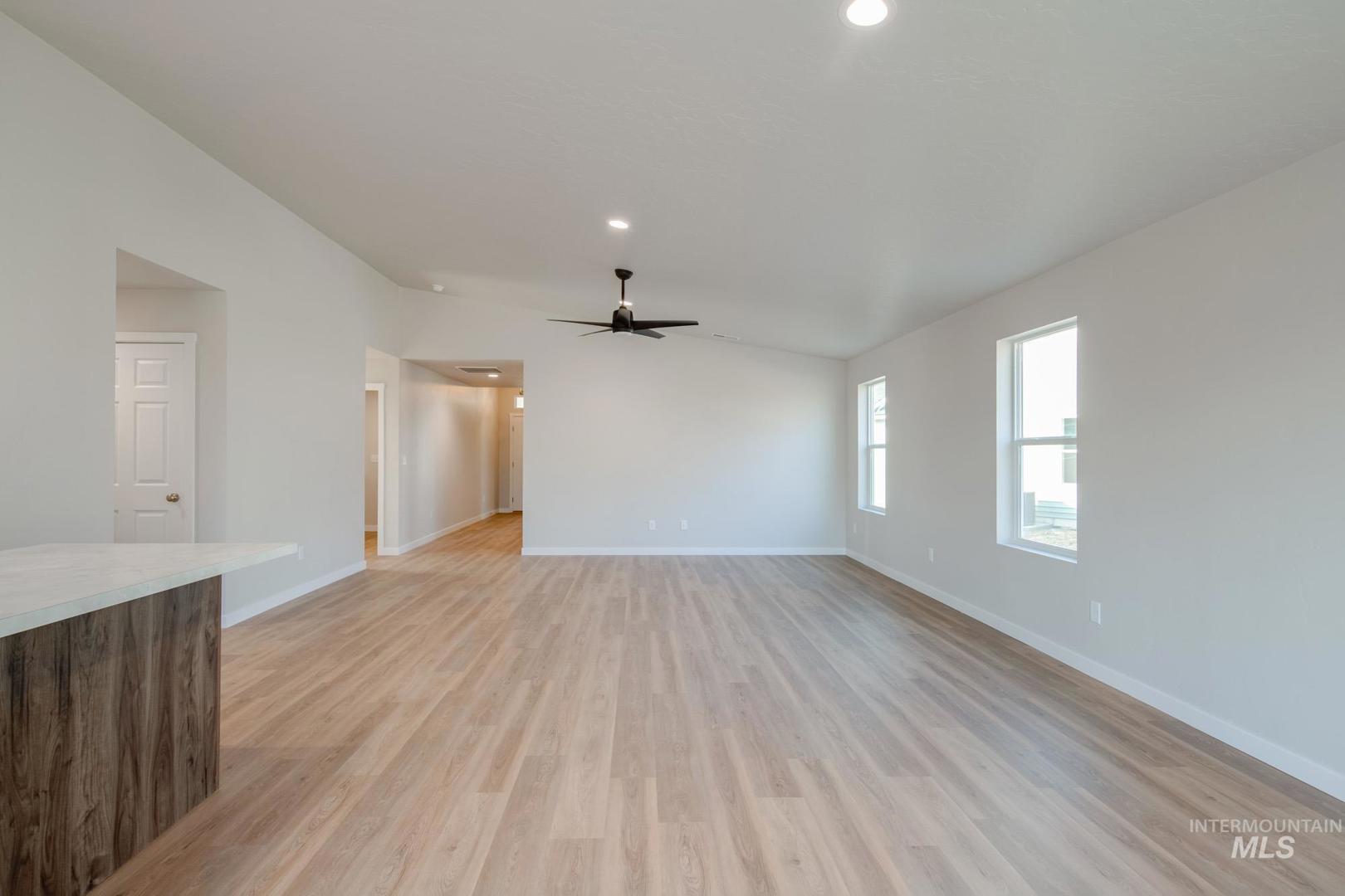 Be Mine at 3.99% – promotional rate available! Ask a Sales Specialist for details. Embrace the comforts of a brand new home in Nampa, Idaho. The Willow 1860 offers a beautifully designed single level layout with two bedrooms situated at the front of the home for a peaceful sense of separation. The vaulted great room and dining area create an airy, inviting space that opens to the back patio, perfect for both entertaining and quiet relaxation. Natural light pours through the windows, highlighting the height and openness of the vaulted ceiling. The well-appointed kitchen provides ample counter space, modern appliances, and an island ideal for everyday meals or casual hosting. The primary suite serves as a restful retreat with a roomy en suite bathroom, dual vanities, a stand-up shower, and a generous closet. With its open design, thoughtful storage, and elegant flow, the Willow 1860 brings comfort and functionality together in a truly elevated way. Photos are of the actual home!