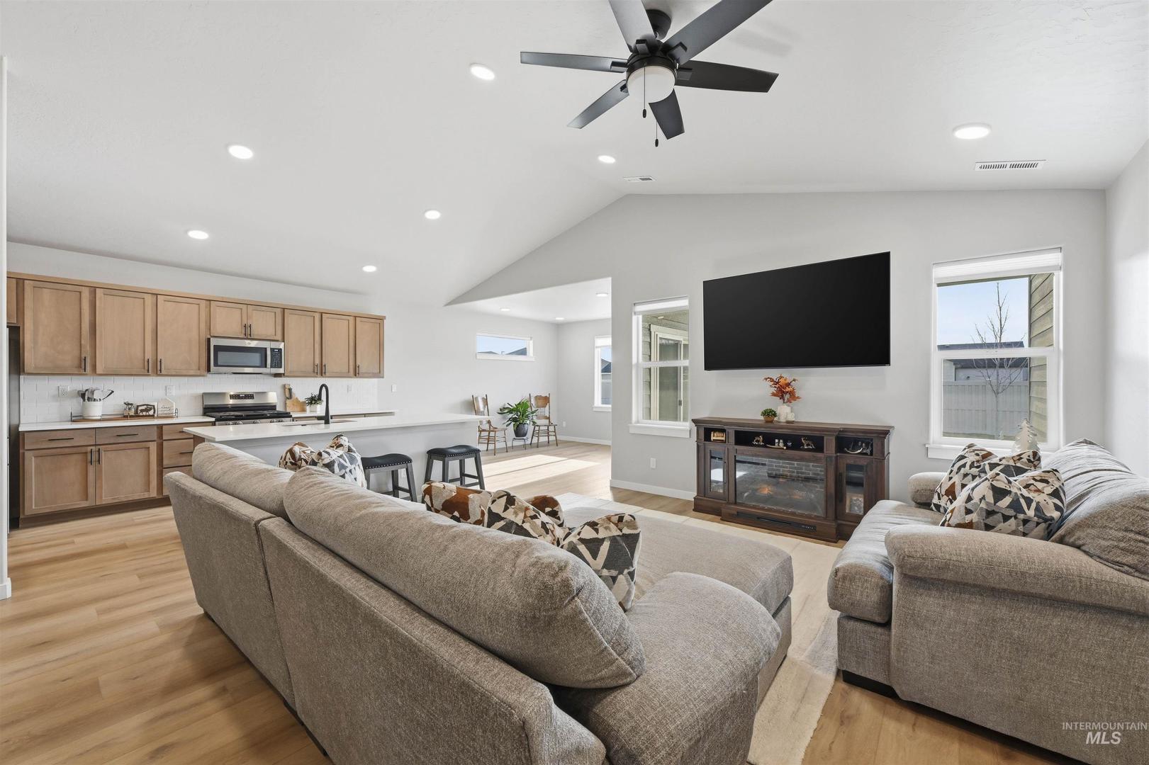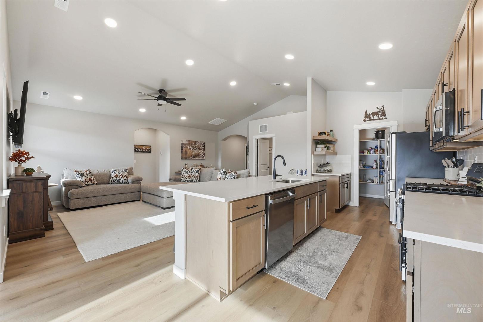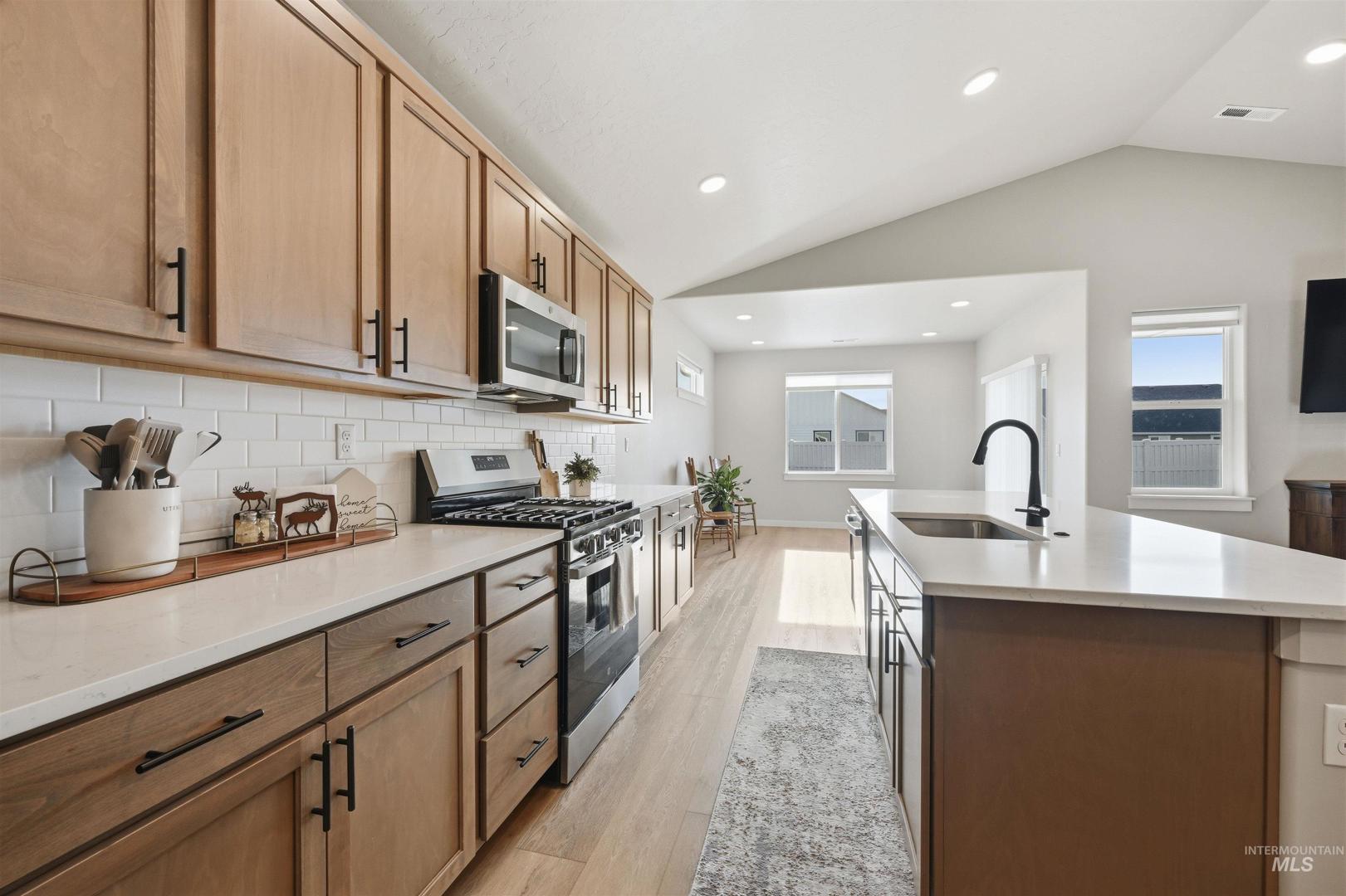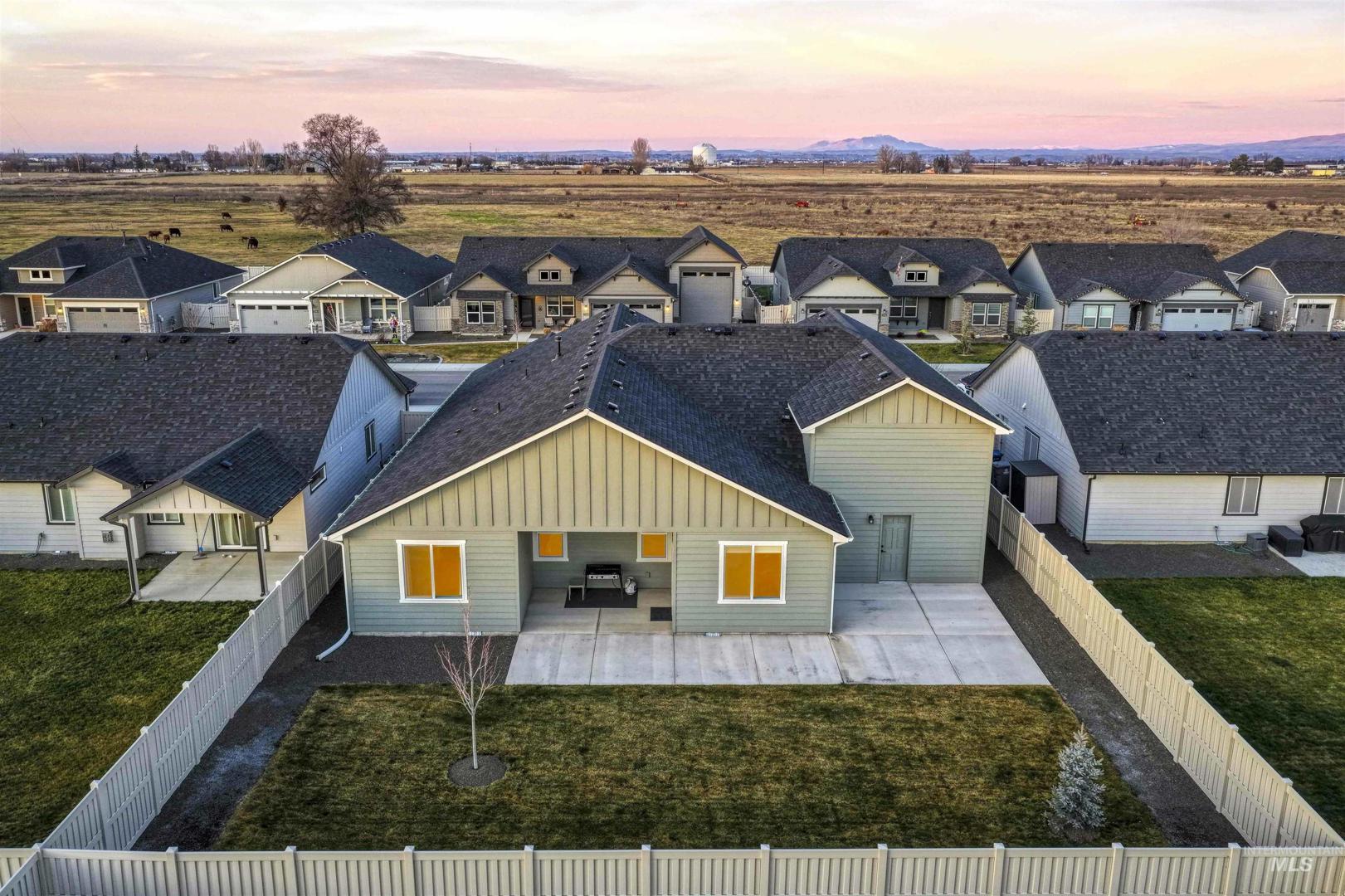 This barely lived-in 2024 home is truly move-in ready with thoughtful upgrades already completed. Offering 4 bedrooms and 2 bathrooms, including a flexible fourth bedroom ideal for a home office, guest room, or den, the well-designed single-level layout includes an extended garage with a 4-foot extension plus a 46-foot RV bay. The garage is fully finished, and additional concrete extends off the back of the garage for added functionality. Enjoy a covered back patio, completed landscaping, fencing, and window blinds—saving time and additional expense. Extra windows throughout the home provide abundant natural light, while a whole-home water filtration system enhances everyday living. Conveniently located near downtown Nampa, the Idaho Ford Center, hospitals, shopping, and dining, this home offers upgraded living in a growing community.