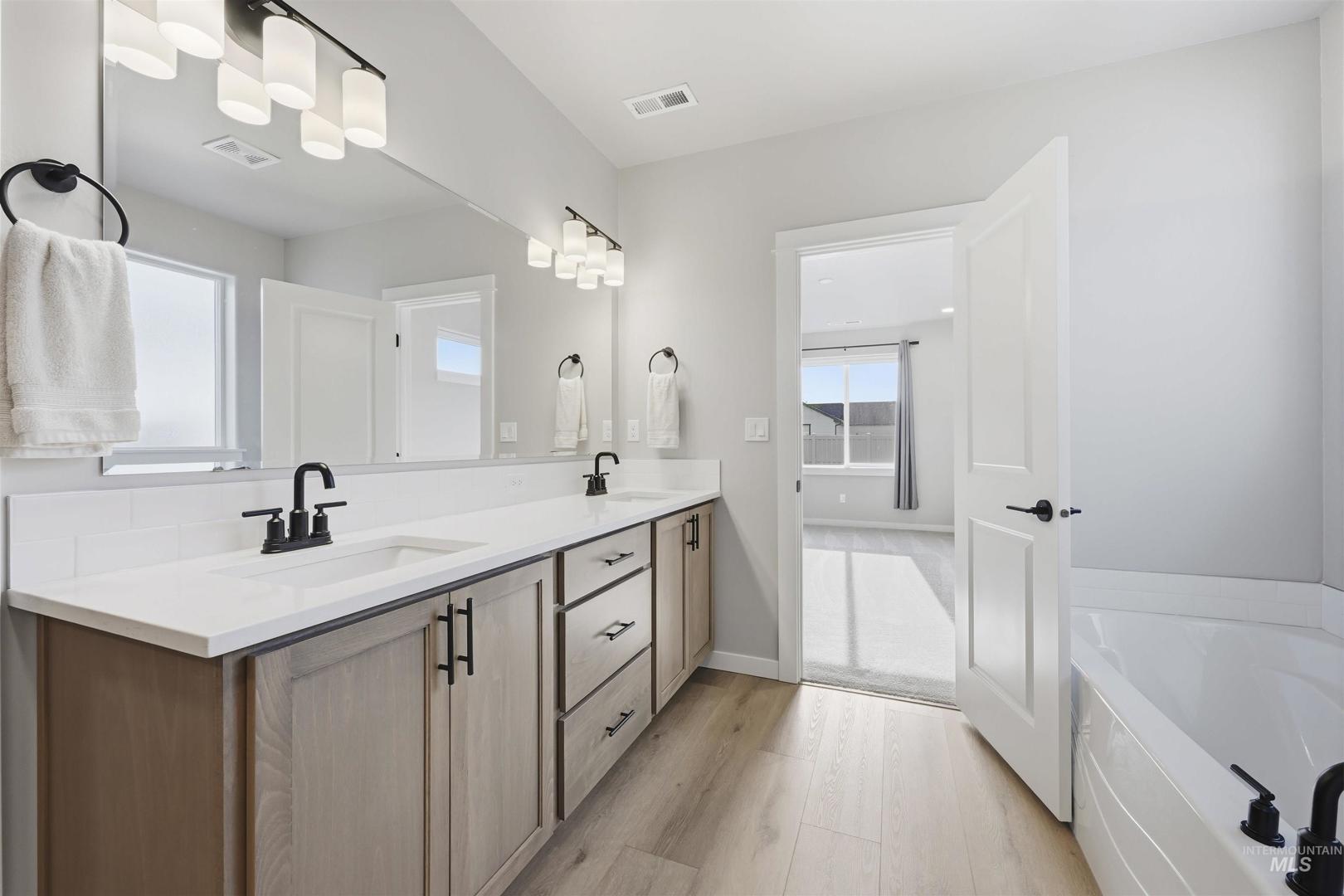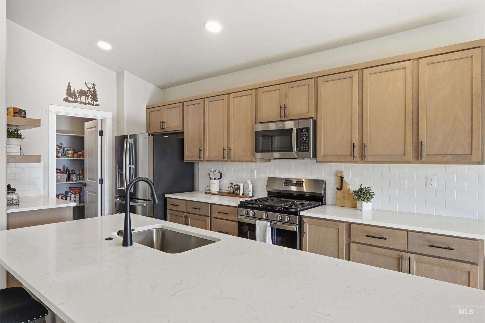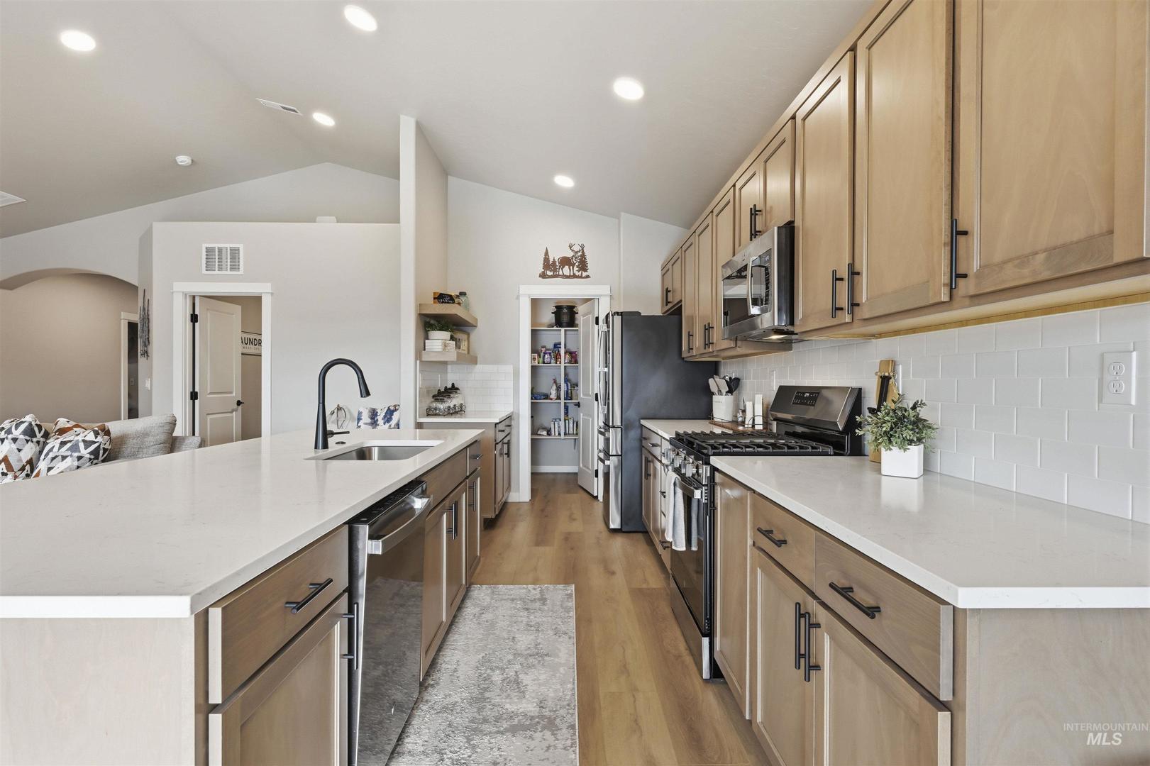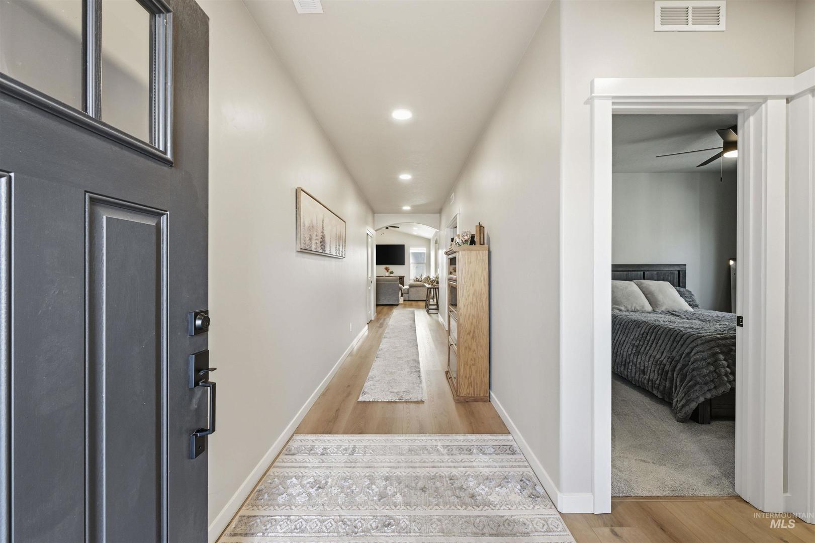 This barely lived-in 2024 home is truly move-in ready with thoughtful upgrades already completed. Offering 4 bedrooms and 2 bathrooms, including a flexible fourth bedroom ideal for a home office, guest room, or den, the well-designed single-level layout includes an extended garage with a 4-foot extension plus a 46-foot RV bay. The garage is fully finished, and additional concrete extends off the back of the garage for added functionality. Enjoy a covered back patio, completed landscaping, fencing, and window blinds—saving time and additional expense. Extra windows throughout the home provide abundant natural light, while a whole-home water filtration system enhances everyday living. Conveniently located near downtown Nampa, the Idaho Ford Center, hospitals, shopping, and dining, this home offers upgraded living in a growing community.