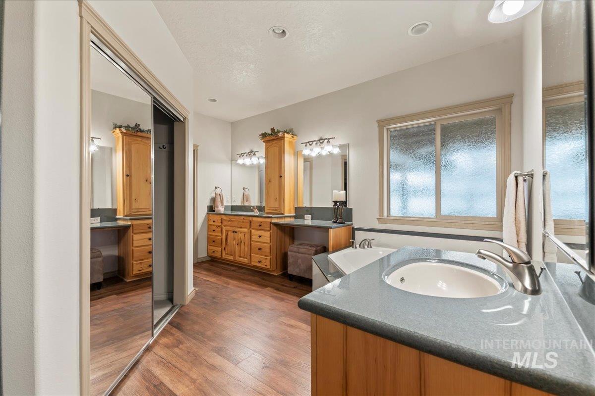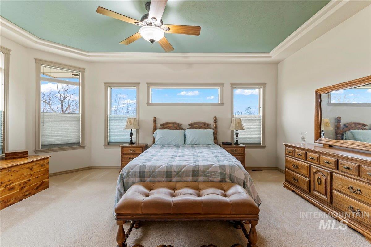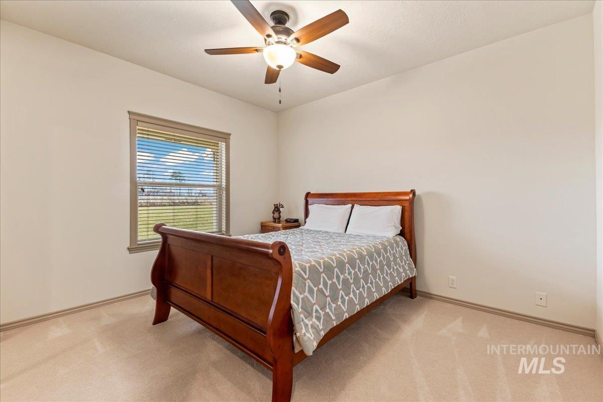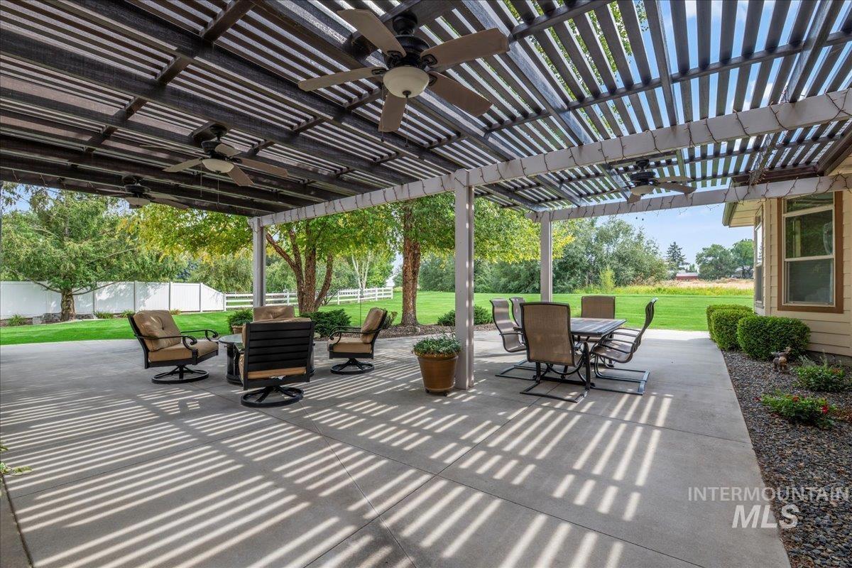 Welcome to your slice of Idaho living in the highly sought-after Belmont Heights community! Sitting on a full 1-acre lot with no rear neighbors, this home gives you room to breathe, play, park your toys, and enjoy the peaceful surroundings. Step inside to an inviting open-concept layout where the kitchen truly is the heart of the home. Sunlight pours in through large windows thanks to the south-facing orientation. Each bedroom features a walk-in closet with custom shelving, and one bedroom has its own private en suite. Need a home office? You have that too—easily doubles as a fourth bedroom. Inside, you`ll find all the comfort upgrades already done for you, including a new furnace and A/C, a water softener, and a central vac system. Love spending time outdoors? You’ll enjoy two covered patios with ceiling fans for those hot summer days, a backyard TV that stays, and wiring ready for a hot tub whenever you are. The RV pad is fully ready with a 30 AMP circuit, water freeze pipe and a sewer hookup—just pull in and relax. The oversized 1,382 sq. ft. insulated garage is a dream come true—perfect for hobbies, projects, storage, or that extra fridge or freezer you’ve always wanted space for. Plus, no pets have ever lived here, keeping the home feeling fresh. This home blends comfort, space, and personality in a quiet neighborhood you’re sure to love.