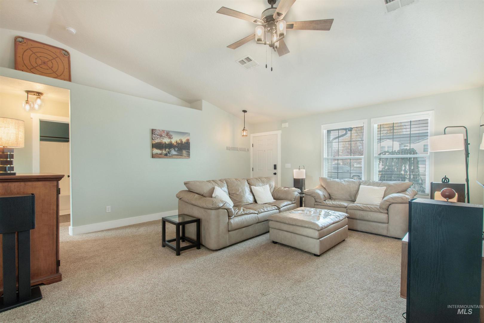 Nestled on a beautifully landscaped corner lot, this home offers privacy and convenience. 3 bedroom, 2 bath, 2 car garage with BONUS ROOM or potential 4th bedroom. Centrally located home in a well established South Boise neighborhood. Step inside to a bright, airy living room with vaulted ceilings. Showcasing stainless steel appliances, full tile backsplash, granite countertops, elegant white cabinets with crown molding and a pantry with generous storage. This home has been updated with exceptional craftsmanship throughout. The location is superb making commutes to the interstate, airport, or downtown a breeze.