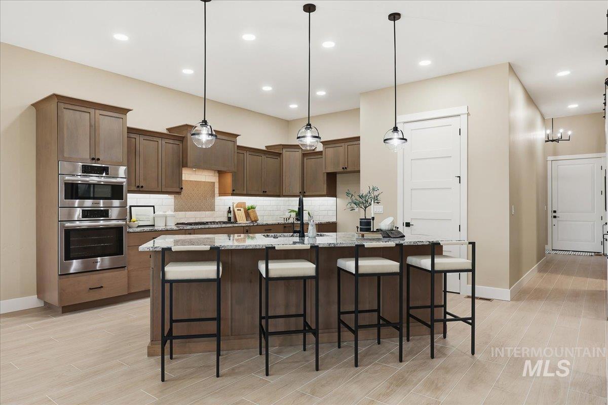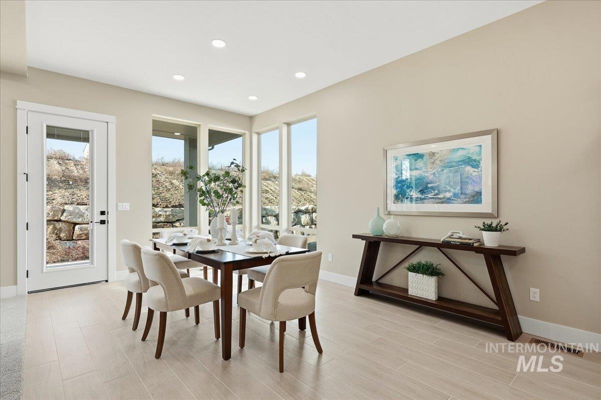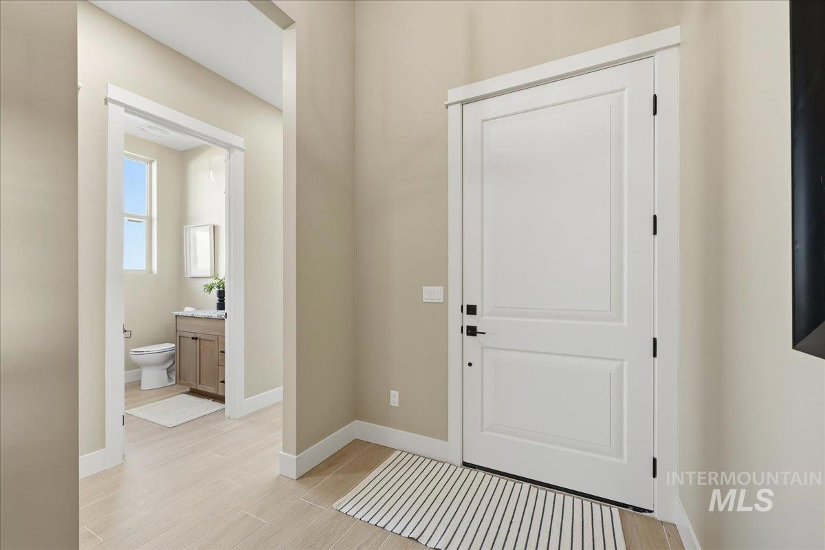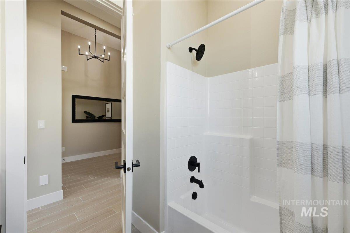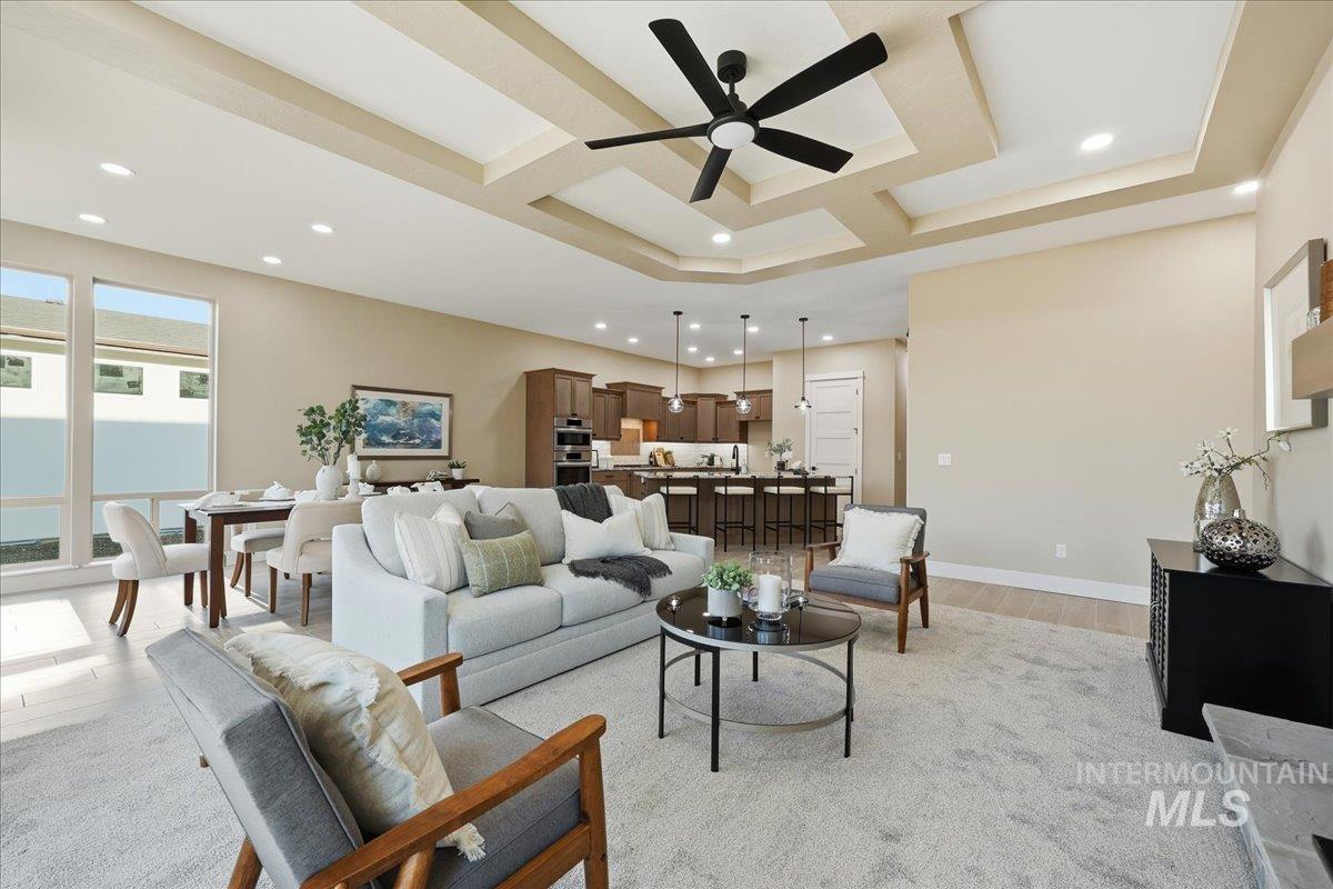 Aspen floor plan by Ninety Degree Construction, located in a brand-new Middleton subdivision offering a true small-town feel paired with upgraded living and modern style. This thoughtfully designed home offers generous space with 4 bedrooms, or 3 bedrooms plus a bonus room, along with a dedicated office—perfect for today’s flexible lifestyle. The spacious kitchen is a standout, featuring a gas stovetop, built-in oven, microwave/convection oven combo, and refined finishes throughout. Abundant natural light fills the home, enhancing the open and inviting layout. The great room showcases a warm fireplace and near floor-to-ceiling windows that overlook the easy-to-maintain backyard and large covered patio, ideal for relaxing or entertaining. The primary suite is impressively sized and offers a spa-like bathroom complete with a zero-entry shower, dual shower heads, and a large walk-in closet. Car and toy enthusiasts will appreciate the 41` RV bay with a 12` x 14` door, providing exceptional storage and flexibility. A beautiful blend of comfort, function, and style—this home is a must-see in Middleton’s newest community.
