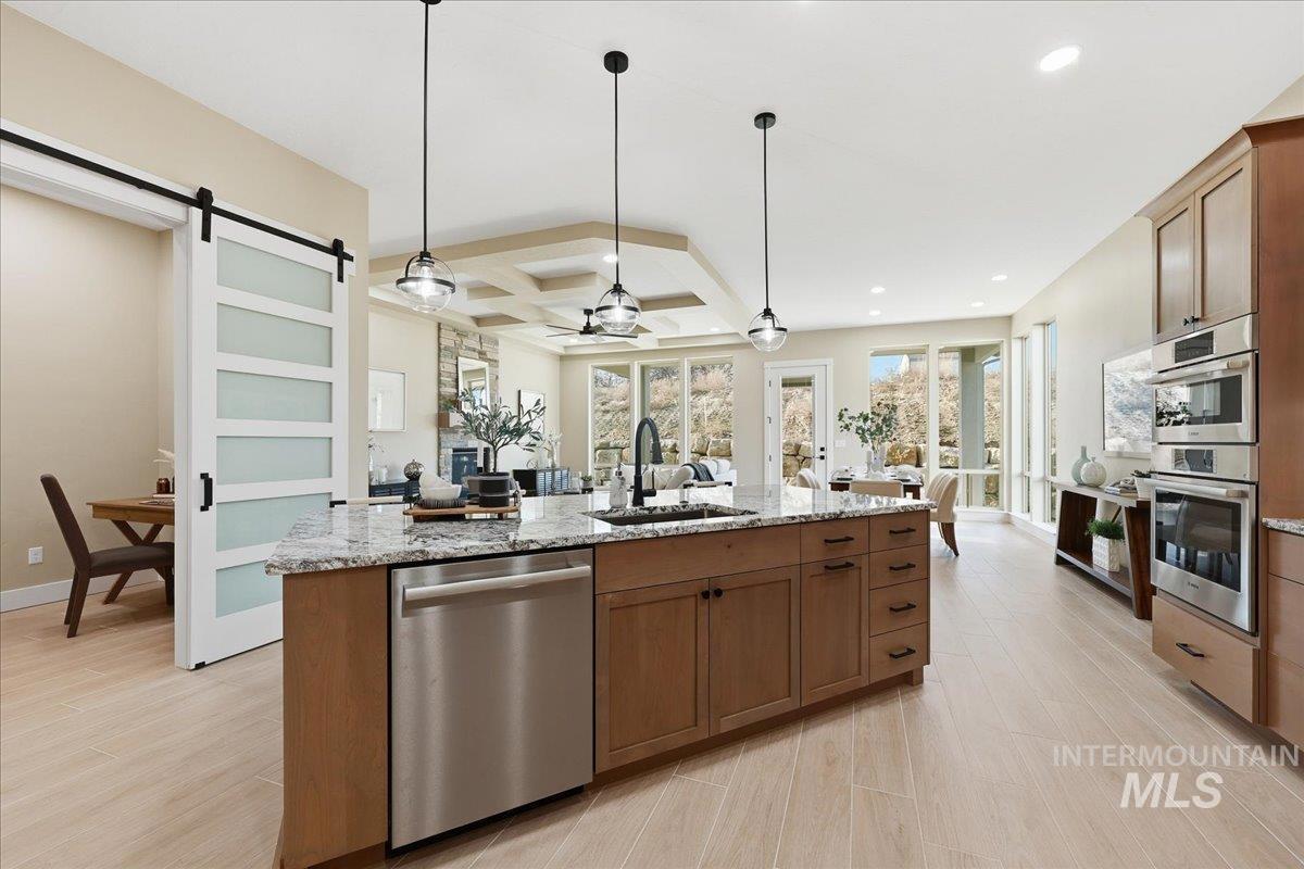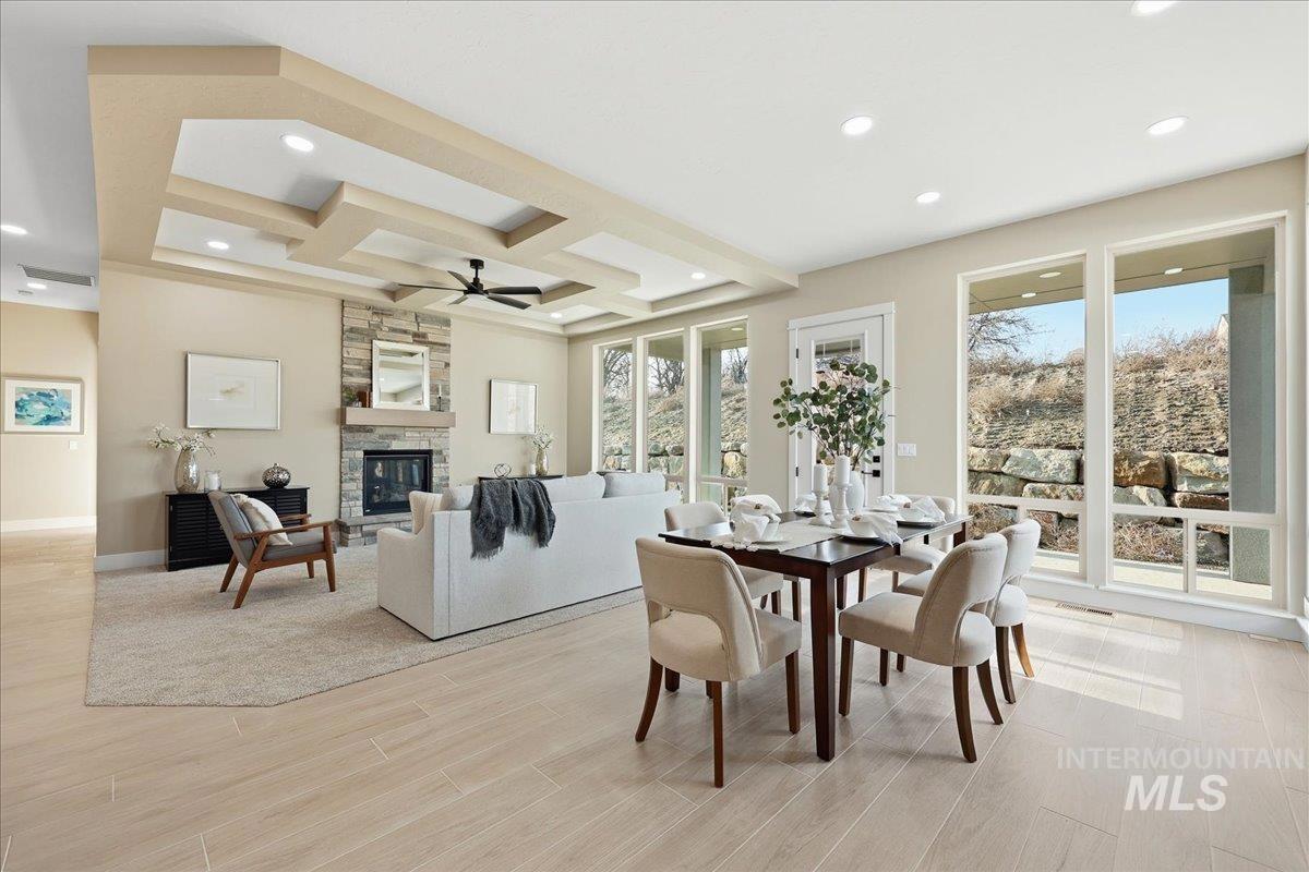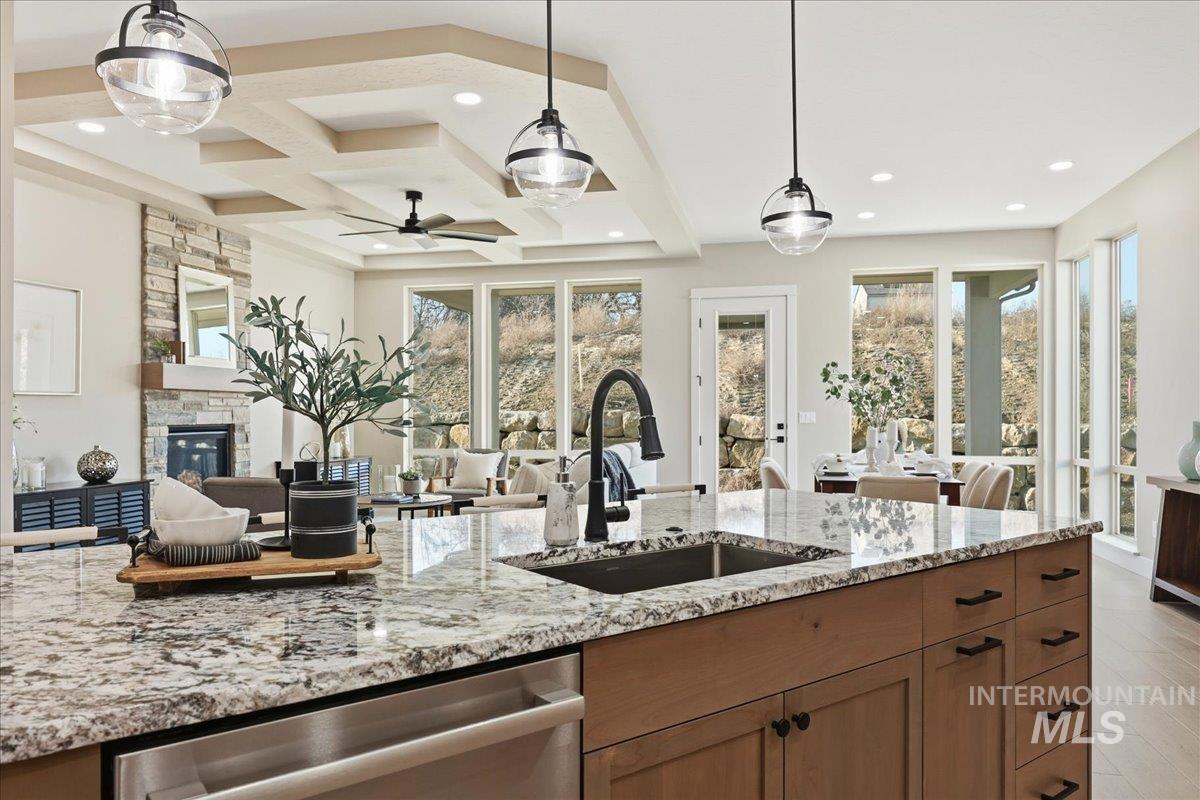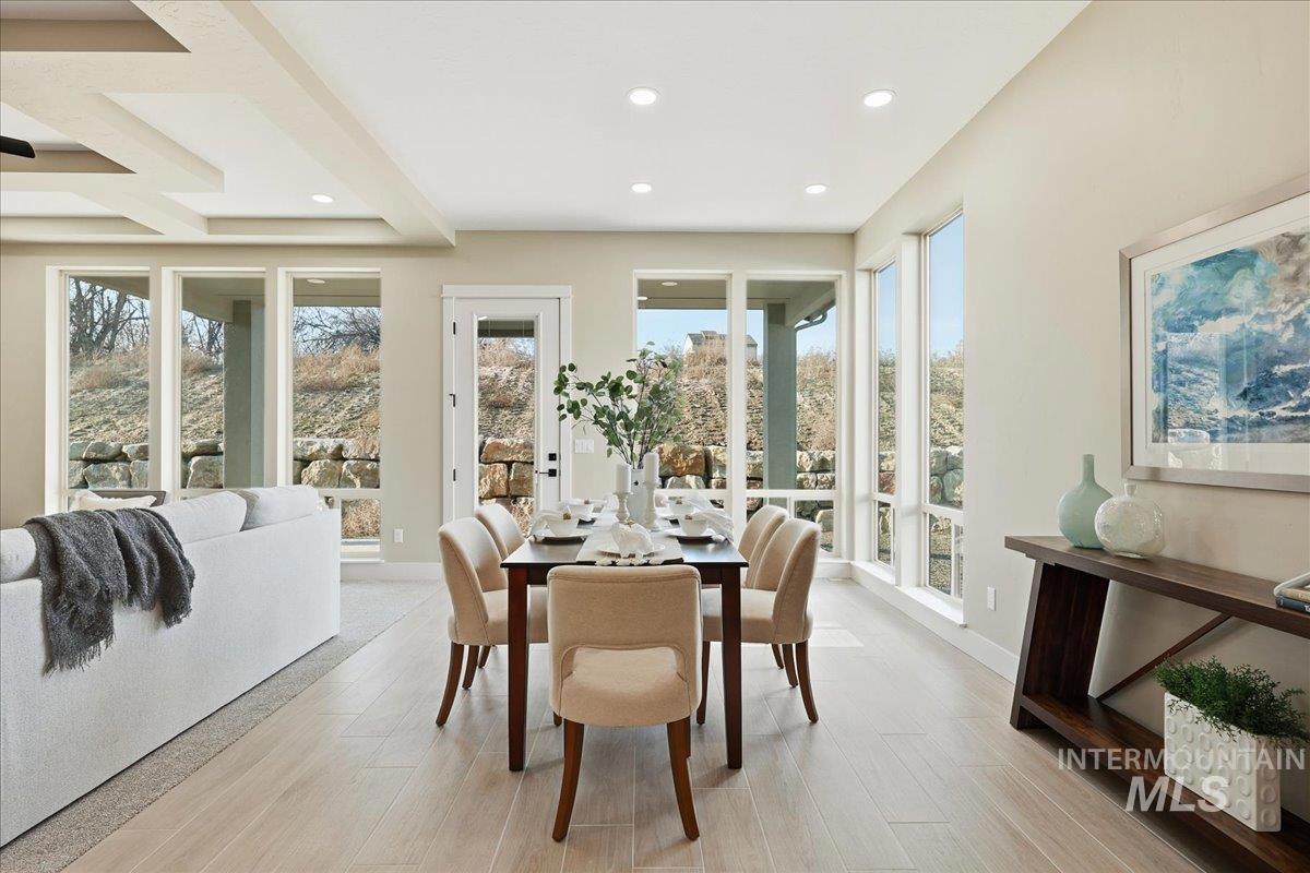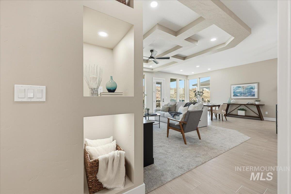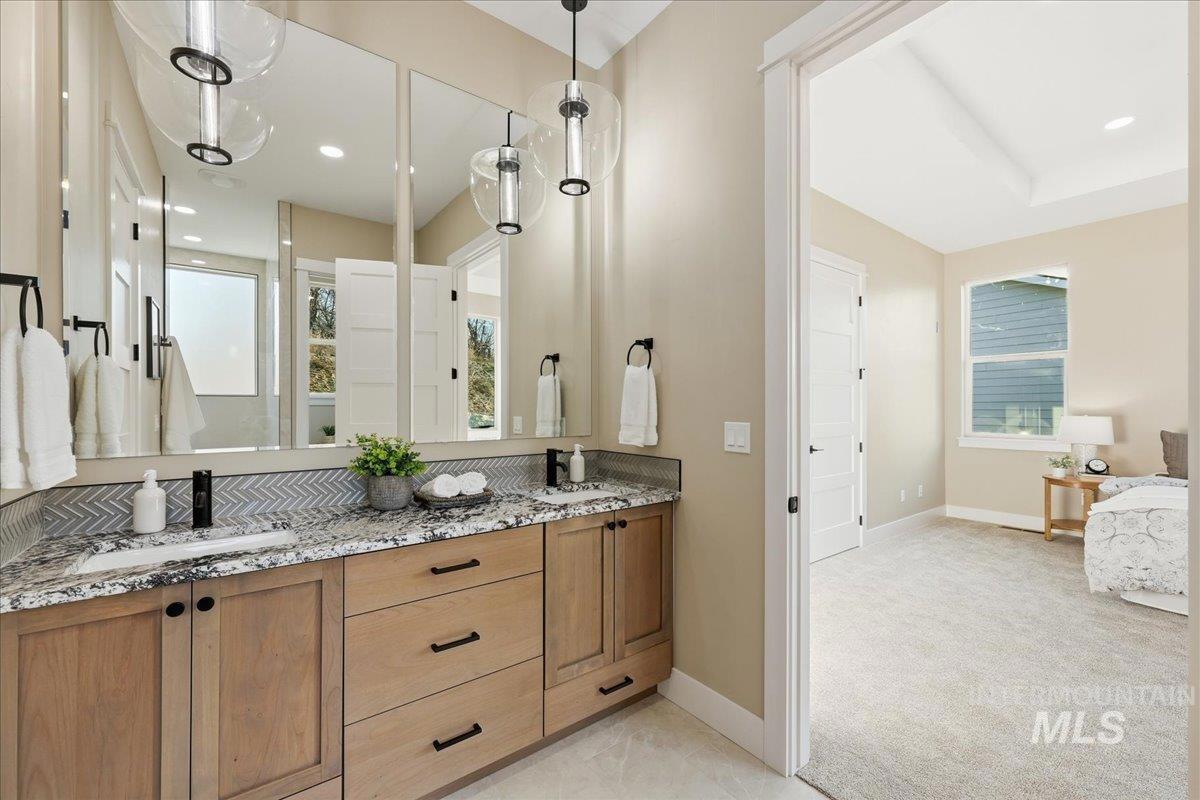 Aspen floor plan by Ninety Degree Construction, located in a brand-new Middleton subdivision offering a true small-town feel paired with upgraded living and modern style. This thoughtfully designed home offers generous space with 4 bedrooms, or 3 bedrooms plus a bonus room, along with a dedicated office—perfect for today’s flexible lifestyle. The spacious kitchen is a standout, featuring a gas stovetop, built-in oven, microwave/convection oven combo, and refined finishes throughout. Abundant natural light fills the home, enhancing the open and inviting layout. The great room showcases a warm fireplace and near floor-to-ceiling windows that overlook the easy-to-maintain backyard and large covered patio, ideal for relaxing or entertaining. The primary suite is impressively sized and offers a spa-like bathroom complete with a zero-entry shower, dual shower heads, and a large walk-in closet. Car and toy enthusiasts will appreciate the 41` RV bay with a 12` x 14` door, providing exceptional storage and flexibility. A beautiful blend of comfort, function, and style—this home is a must-see in Middleton’s newest community.
