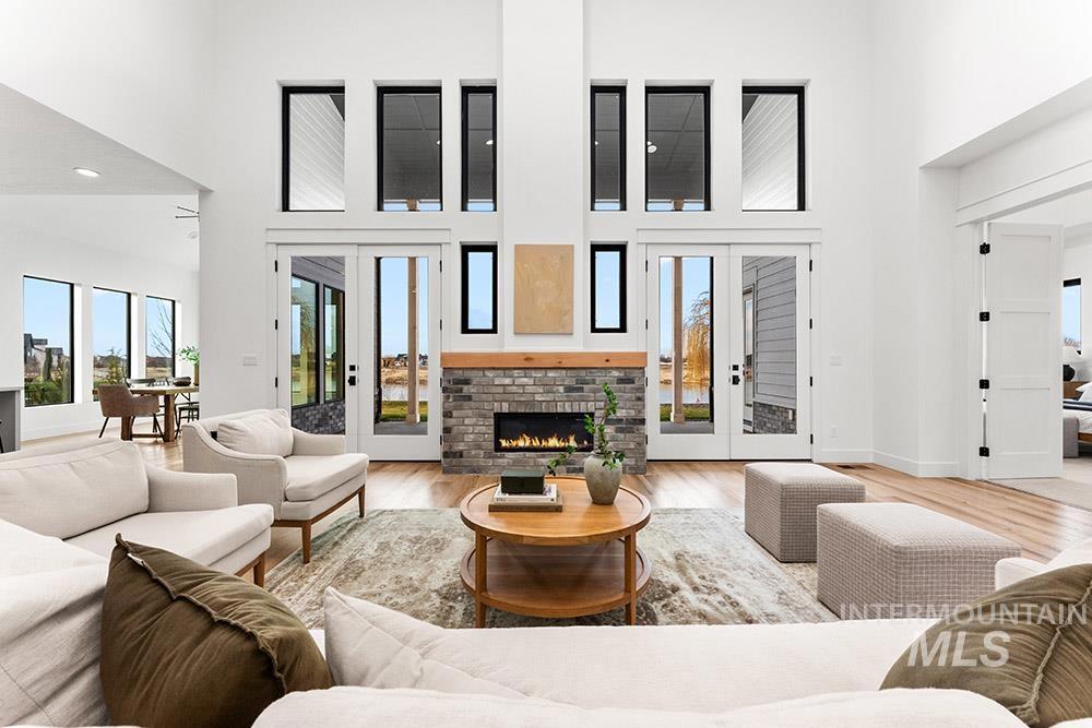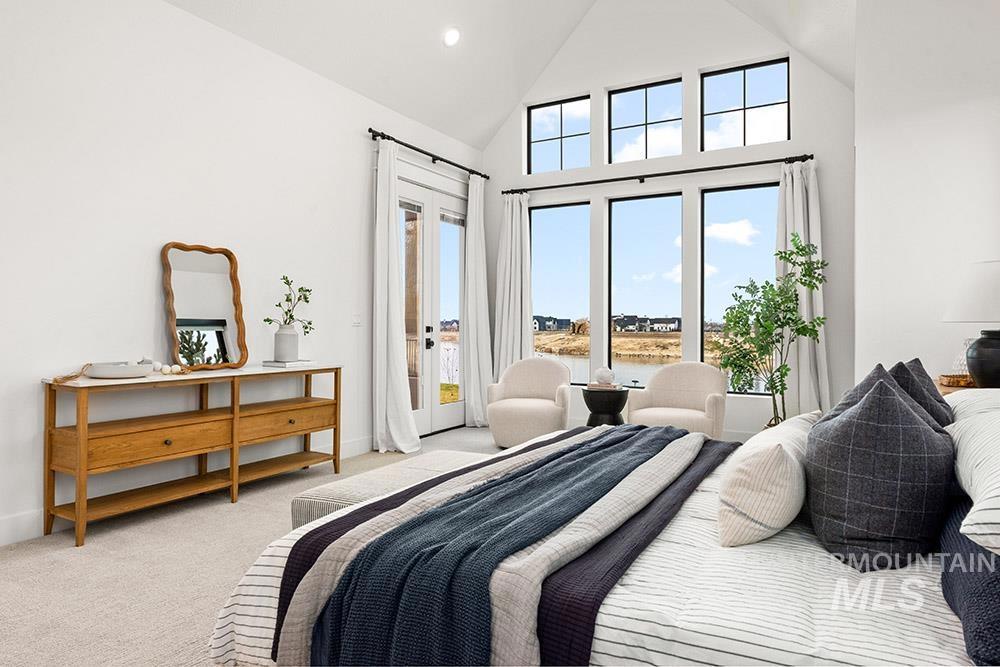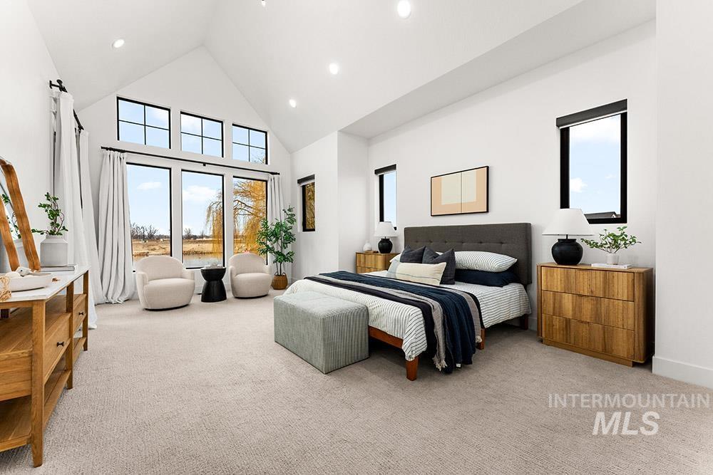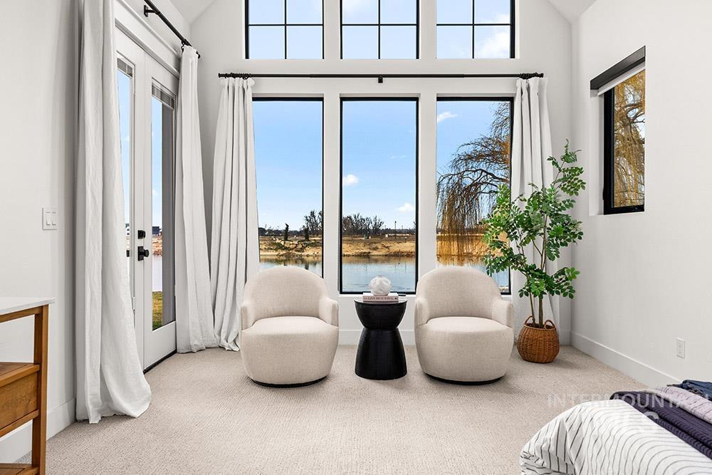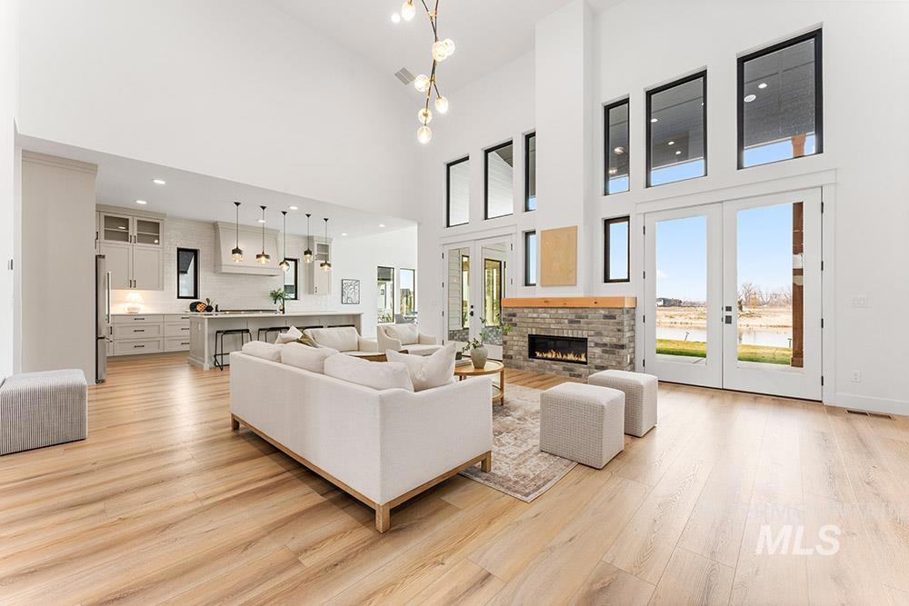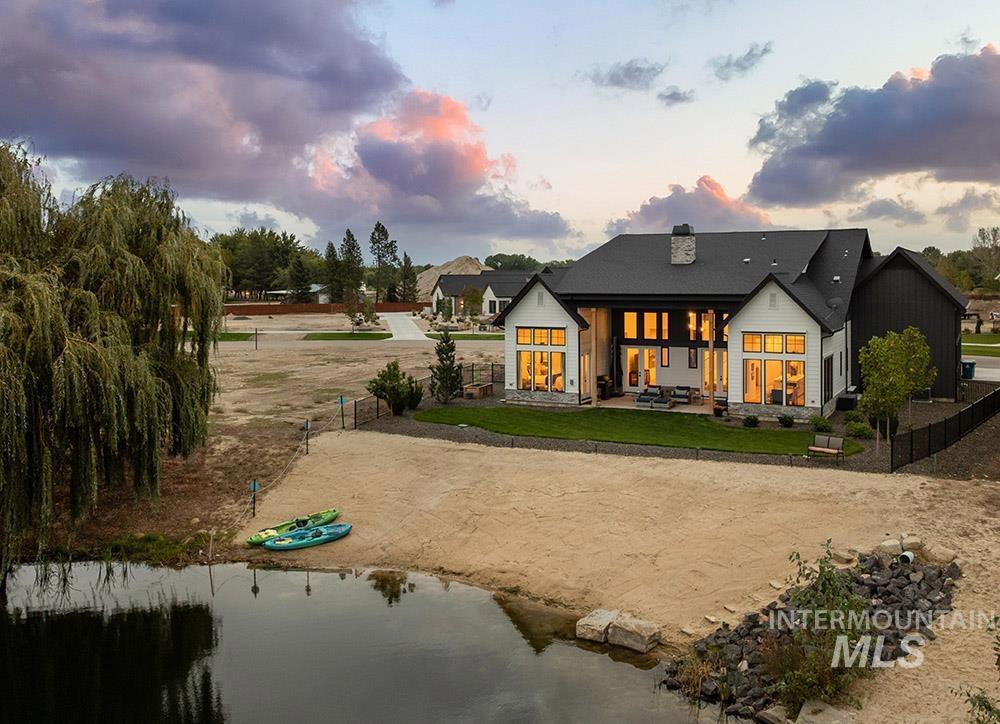 Spectacular waterfront estate, custom-built by Cedar & Sage on nearly half an acre in the prestigious Star River Ranch community! This breathtaking home is designed for both elegance and functionality, featuring a rare 41’ RV garage, soaring double story ceilings, and walls of windows that flood the interior with natural light while highlighting extensive custom details throughout. The heart of the home is a chef-inspired gourmet kitchen with an oversized island, quartz countertops, Thermador® double ovens, a Thermador® built-in microwave, floor-to-ceiling custom cabinetry, fully tiled backsplash, and a spacious walk-in pantry. The adjacent dining area boasts cathedral ceilings wrapped in panoramic waterfront views. The main-level master retreat offers a serene escape with private patio access, cathedral ceilings, picturesque windows, a beautifully tiled walk-in shower, and an expansive walk-in closet. Upstairs, a massive loft/bonus room provides the perfect space for entertaining, complete with additional areas ideal for a home office, study, or lounge. Enjoy seamless indoor-outdoor living with a wall of doors opening to the expansive covered patio overlooking a private pond. Star River Ranch is a premier estate community featuring multiple lakes and luxury waterfront homes, delivering the perfect blend of privacy, beauty, and refined living. Luxury living awaits in Star!