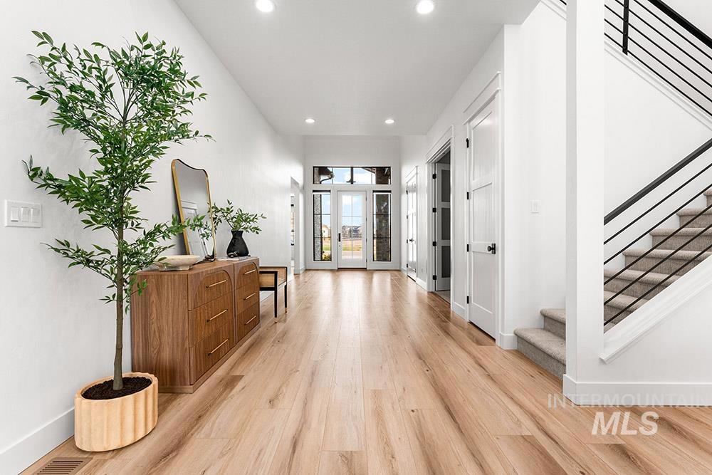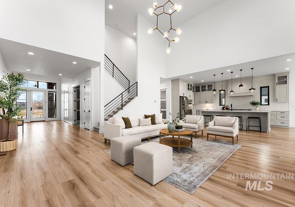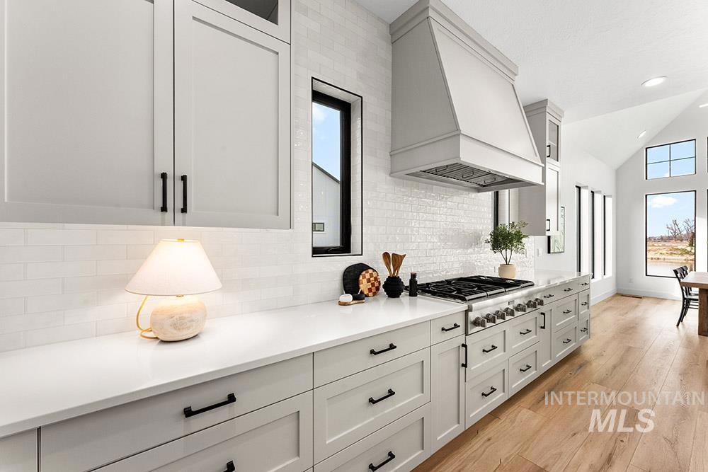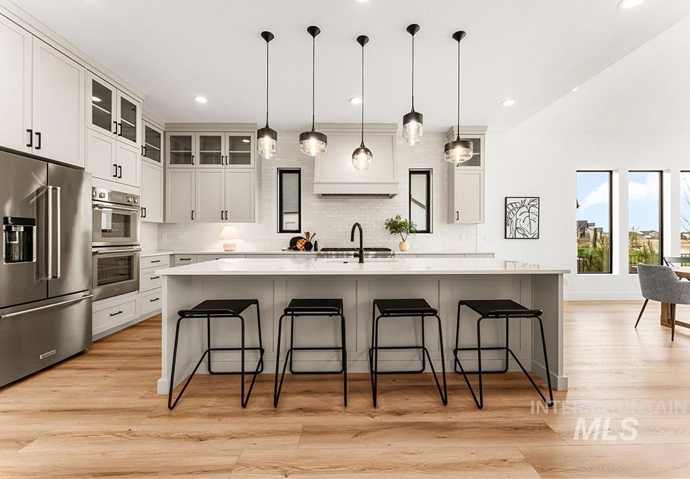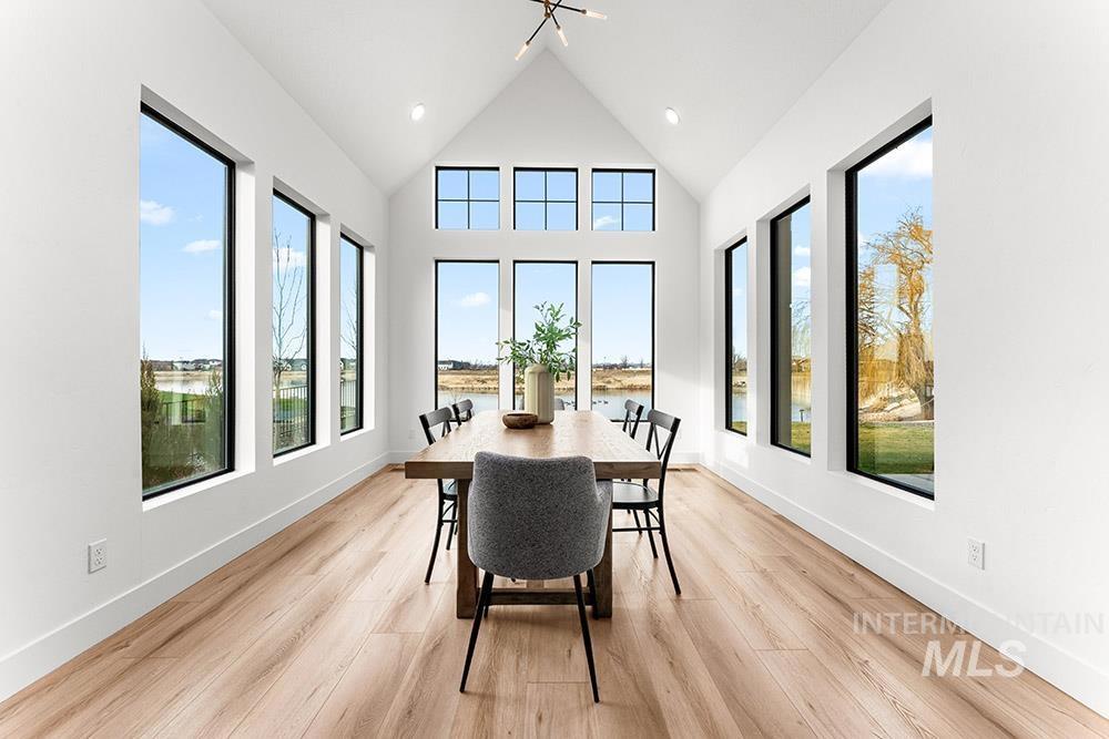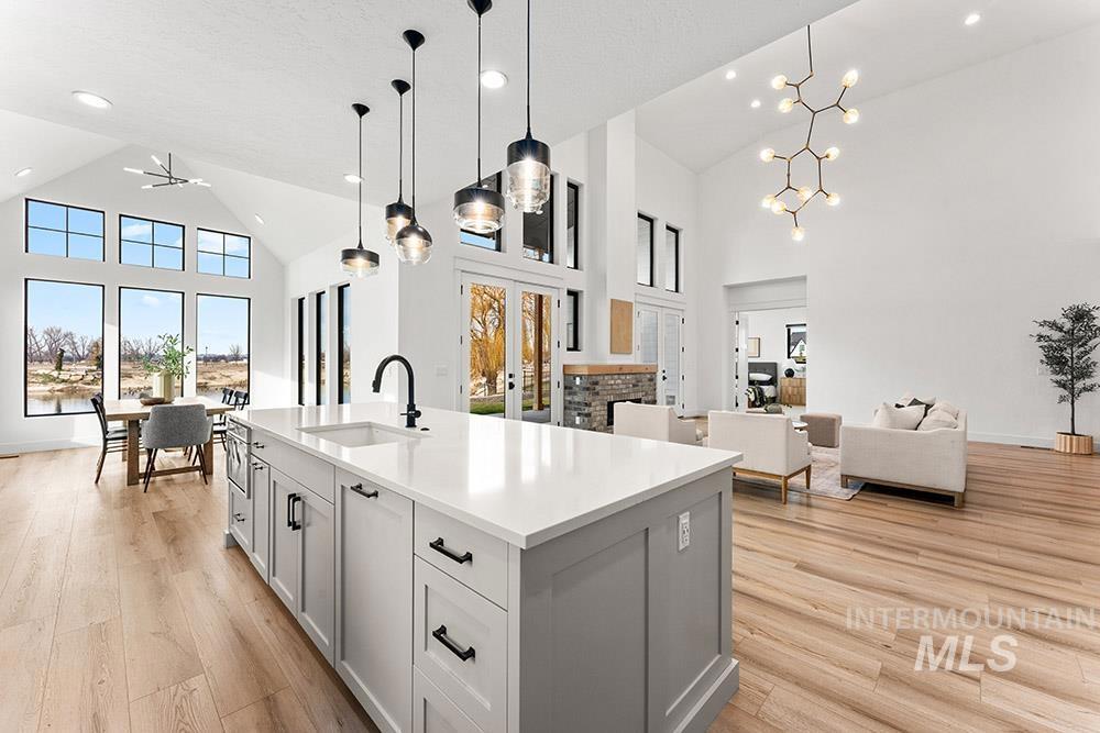 Spectacular waterfront estate, custom-built by Cedar & Sage on nearly half an acre in the prestigious Star River Ranch community! This breathtaking home is designed for both elegance and functionality, featuring a rare 41’ RV garage, soaring double story ceilings, and walls of windows that flood the interior with natural light while highlighting extensive custom details throughout. The heart of the home is a chef-inspired gourmet kitchen with an oversized island, quartz countertops, Thermador® double ovens, a Thermador® built-in microwave, floor-to-ceiling custom cabinetry, fully tiled backsplash, and a spacious walk-in pantry. The adjacent dining area boasts cathedral ceilings wrapped in panoramic waterfront views. The main-level master retreat offers a serene escape with private patio access, cathedral ceilings, picturesque windows, a beautifully tiled walk-in shower, and an expansive walk-in closet. Upstairs, a massive loft/bonus room provides the perfect space for entertaining, complete with additional areas ideal for a home office, study, or lounge. Enjoy seamless indoor-outdoor living with a wall of doors opening to the expansive covered patio overlooking a private pond. Star River Ranch is a premier estate community featuring multiple lakes and luxury waterfront homes, delivering the perfect blend of privacy, beauty, and refined living. Luxury living awaits in Star!