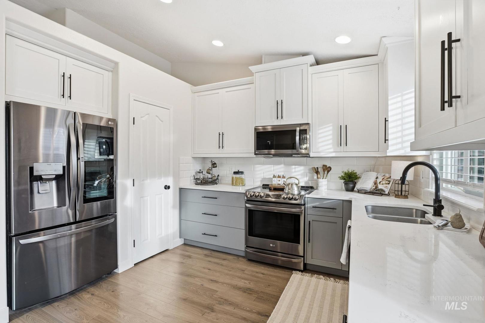 ONLY 2 MILES FROM BSU! AMAZING LOCATION NEAR EVERYTHING! This adorable single level house has so much to offer you won`t want to miss it! 3 bed, 2 bath, split bedroom floor plan with vaulted ceilings. You will love the updates that were done in 2024. All new kitchen with slab granite counters, SS appliances, pantry, new floors throughout home and a new HVAC system. Updated bathrooms with granite counters and the primary suite offers walk in closet and a nice sized tile shower. Enjoy time in your backyard on the large back deck and/or the new concrete pad in the back. Washer/dryer and fridge are included.