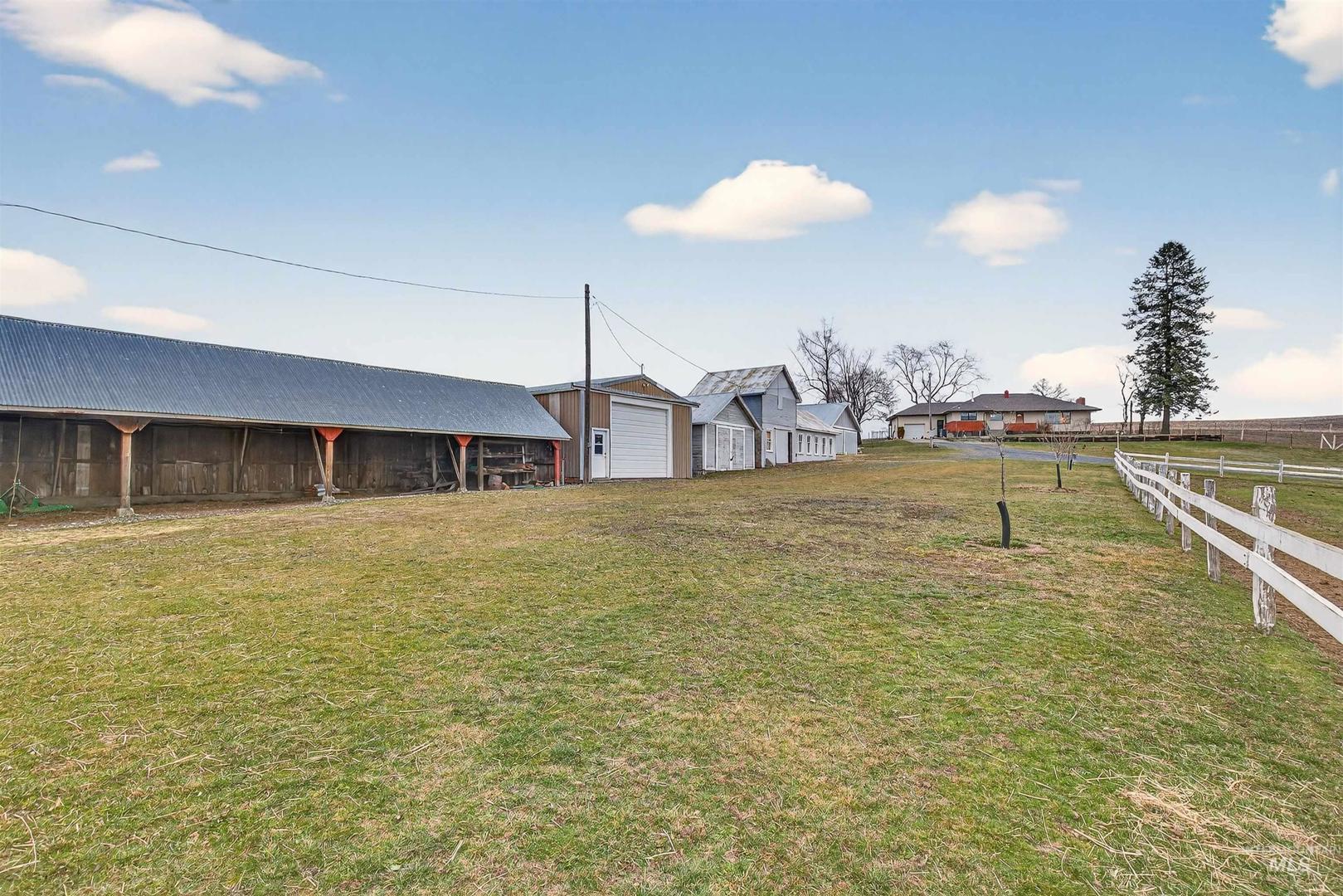 Looking for a well-loved farmhouse on 18.16± acres? This exceptional property has had just 3 owners & offers space, functionality & thoughtful updates throughout. The 4-bedroom, 2-bath, 3,870 sqft ranch-style home includes a 1-car attached garage & numerous upgrades, incl. a new roof, gutters, heating & A/C system, exterior siding, electrical panel, updated bathrooms & more. Recent improvements include fresh interior paint in most of the upstairs, new LVP flooring coming to the kitchen, laundry, pantry, dining room, entry, office & hallway; & professionally cleaned carpets. A Culligan filtration system, new well pump, updated water lines, & upgraded electrical at the well add peace of mind. Outside, the property truly shines w/ a professionally fenced backyard, fenced garden area & approx. 14 acres of 4-wire barbed fencing that is cross-fenced and gated - ideal for livestock. Approx. 13 acres are planted in a mix of brome, timothy, fescue, & orchard grass, providing quality hay ground & pasture. Outbuildings incl. a 20x20 detached garage, 18x30 shop w/ power, 26x30 shop w/ concrete floor, power, wood stove, 12-ft door & machine bays, a chicken/sheep barn, & a large red barn w/ five stalls & tack room. Enjoy a pond, additional pasture, beautiful landscaping, a large patio, garden space, and sweeping views of rolling fields. This is a property you truly need to see to appreciate.