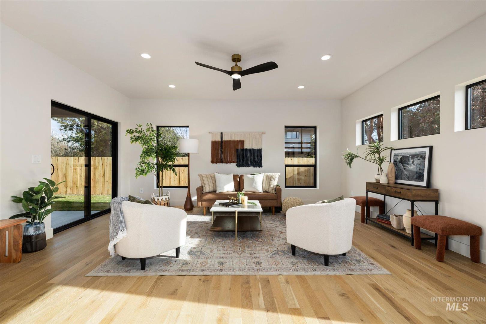 OPEN HOUSE SAT 1/31 11-1. Urban Idaho living at its best. No need to compromise location for modern amenities with this new construction home in the heart of the Bench. Just minutes to downtown with a FOUR car garage, including an RV BAY. The 12x12 RV garage door accesses the double deep bay, equipped with 220V power. No HOA/CCRs in this quiet pocket on the Bench allow the freedom to make this space your own. Attention to detail exudes throughout the design and floorplan, with every accent thoughtfully chosen. Nature inspired finishes paired with warm tilework, floor to ceiling windows, thin plank engineered hardwood floors, and flat paneled cabinetry. Great room opens to open kitchen with large island, high-end appliances, and a pantry for chef designed functionality. Soaring ceilings open up to a bonus room, generous guest rooms and expansive primary with walk-in closet. Smartly sized yard offers a covered patio nestled in this private, fully fenced escape. This stunning new home comes to you by Kouba Homes, locally owned & operated for 20 years. Located behind the existing home at 5610 Grover.