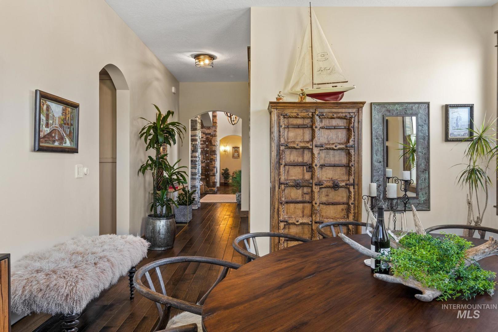 SELLER MOTIVATED, BRING ALL OFFERS. STUNNING Exquisitely Crafted custom ranch-style home nestled within the gated Spurwing Country Club Estates on a nearly half acre setting with many high-end amenities. Entertain with flair in 4,268 sq ft of thoughtfully designed home featuring 4 spacious bedrooms including a luxurious Primary Suite, 3.5 baths, soaring ceilings, hardwood floors, custom hardwood cabinetry, and a chef’s kitchen with Premium Almost New Thermodor Appliances, a generous island, and wrap-around pantry. The elegantly designed interior flows seamlessly into a resort-inspired outdoor retreat complete with a heated saltwater pool/spa, multi-level patios, and rock waterfall with foothill views. An oversized laundry/mudroom and 3-car garage add function to form. Ideally located near top-rated schools (Willow Creek, Sawtooth, and Rocky Mountain) and just minutes to I-84, fine dining, and the best amenities in Meridian, Eagle, and Downtown Boise. Refined living in one of the Treasure Valley’s most sought-after communities.
