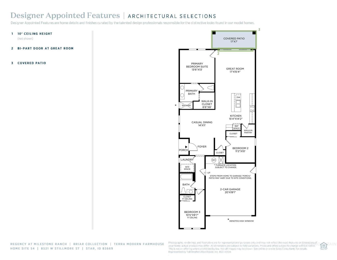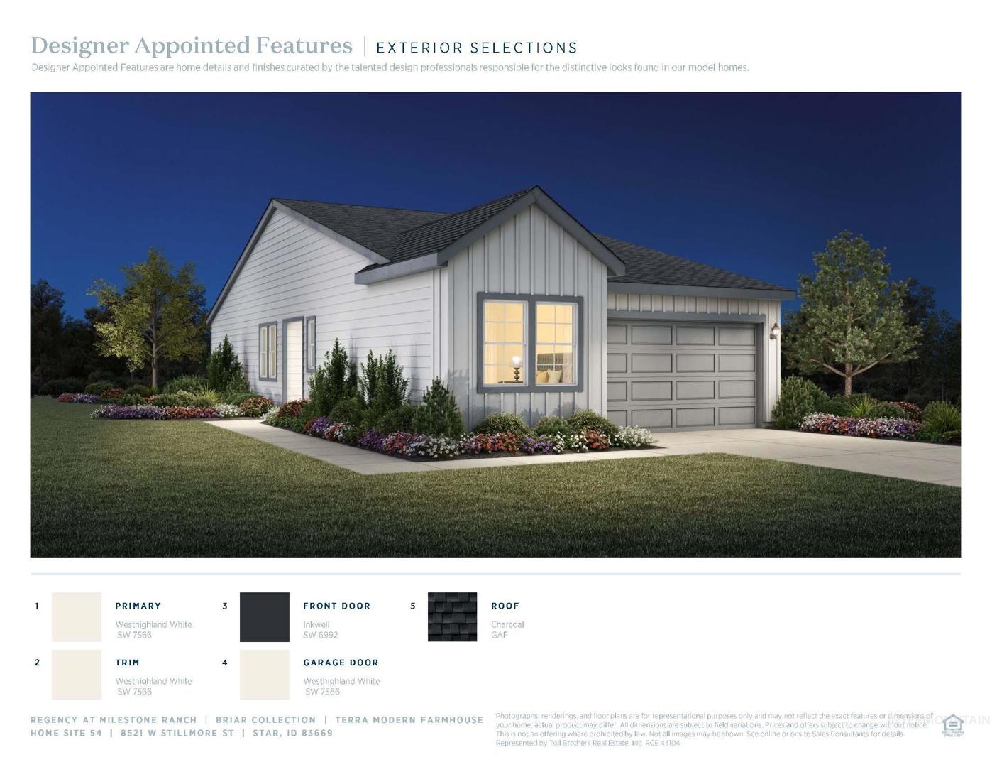 "The Terra." Discover the Regency difference at this premier new home community for 55+ active adults. Ideally located in tranquil Star close to hiking and biking trails, the Boise River greenbelt, and shopping, dining, and entertainment, Regency at Milestone Ranch is where luxury and lifestyle meet in exquisite fashion. Enjoy a stunning home built to the highest standards and personalized to your style, and a world of resort amenities just beyond your door. Events and activities create a true sense of connection and exciting opportunities to socialize with neighbors and friends. The Terra offers 3 spacious bedrooms, 2 bathrooms, laundry room, convenient, 10 ft ceilings and 2 car garage. Front and rear landscape included. BTVAI