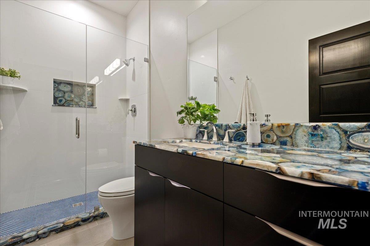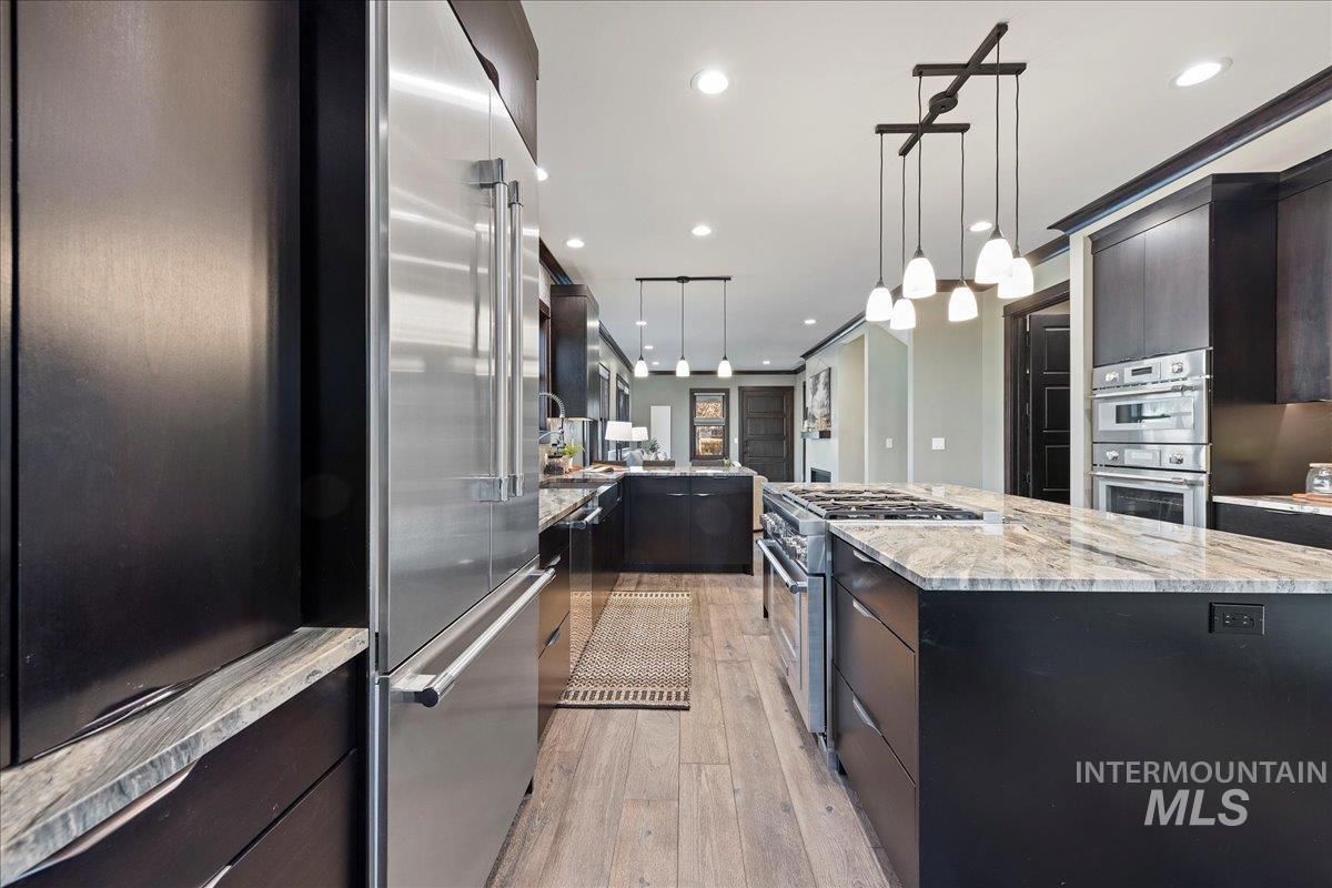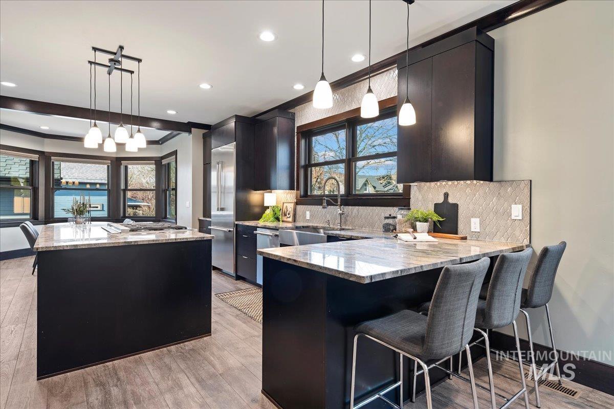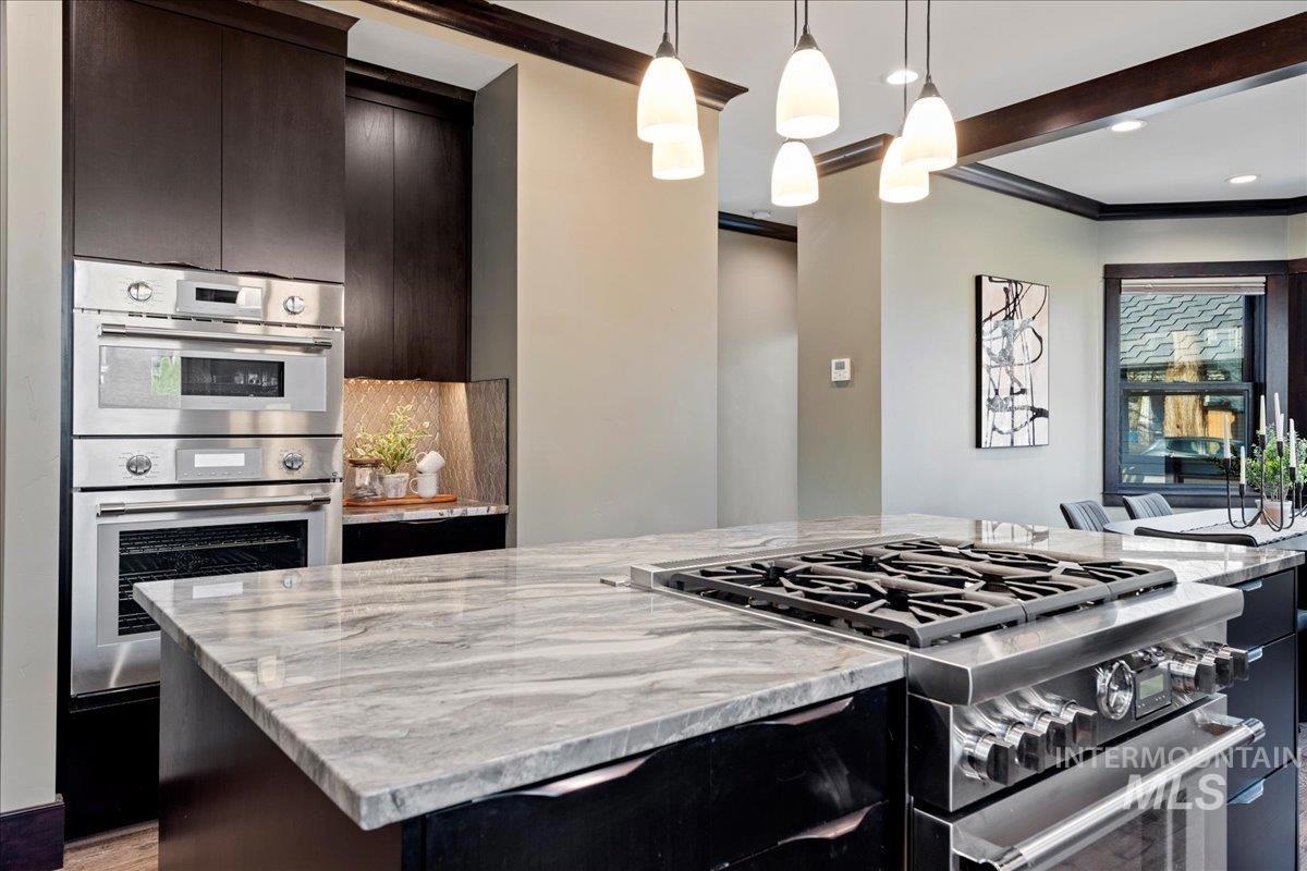 Introducing a stunning new 5 bedroom 4.5 bath home situated in the heart of the North end, right at the base of the foothills. This exquisite residence boasts high-end finishes throughout, featuring upgraded Thermador appliances and solid surfaces counters throughout. The main level offers a luxurious master suite, complemented by a private deck, office, and a 2nd laundry room area. The Basement area has 9 foot ceilings throughout with custom window wells that allow an abundance of natural light. There are 3 generous sized bedrooms and 2 full baths, a 2nd laundry room that comes with a washer and dryer, full size refrig, and mini kitchen. The upstairs has many options; It could be a 2nd master suite, a 2nd rec room, or a 2nd office. Nestled on a corner lot, the property includes a 28 by 26 garage with 9 ft doors and electric hook up for 2 cars. The home comes equiped with solar, high end heat pump with backup natural gas for a very engery efficient home. Built with the finest material, a true masterpiece.