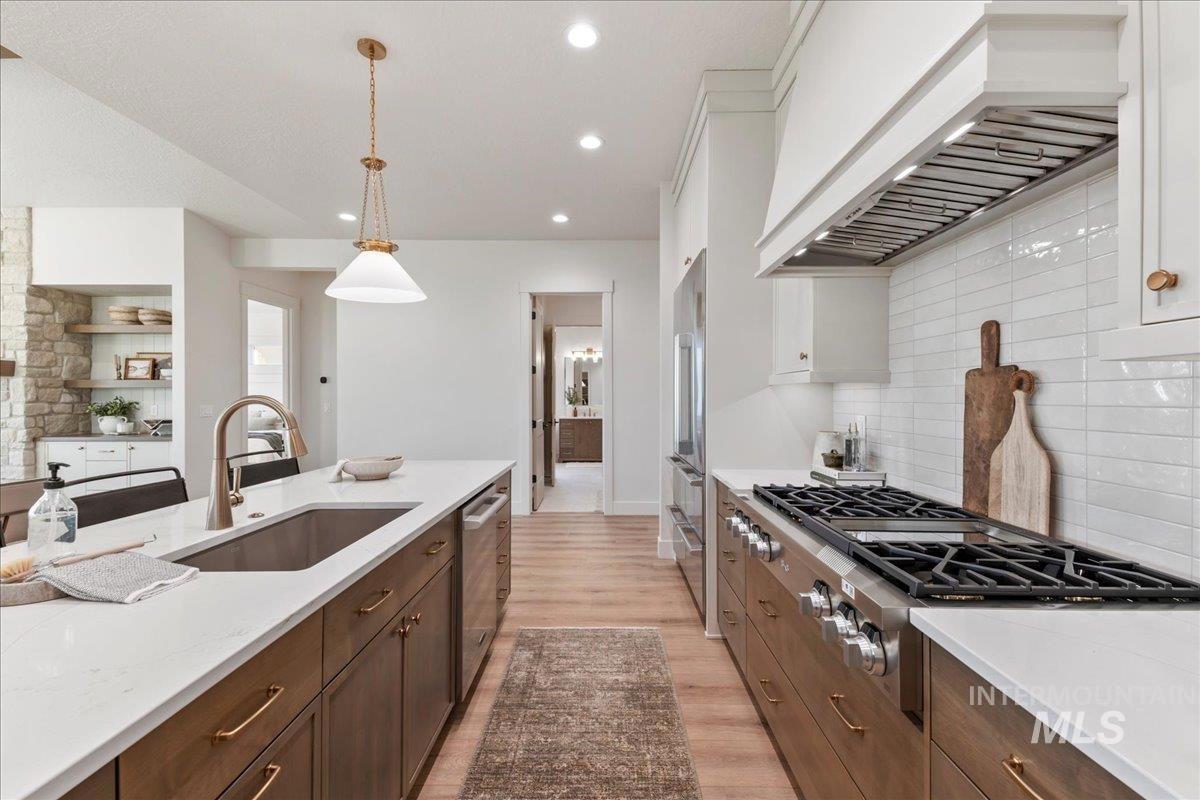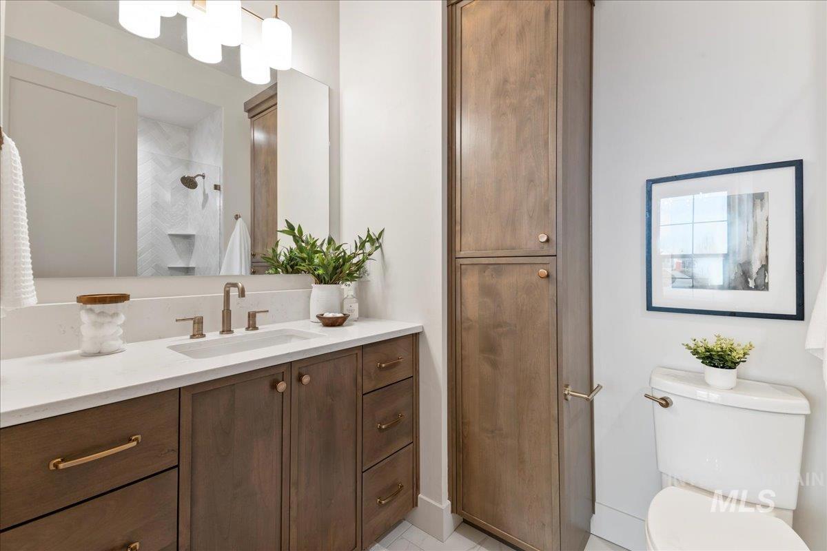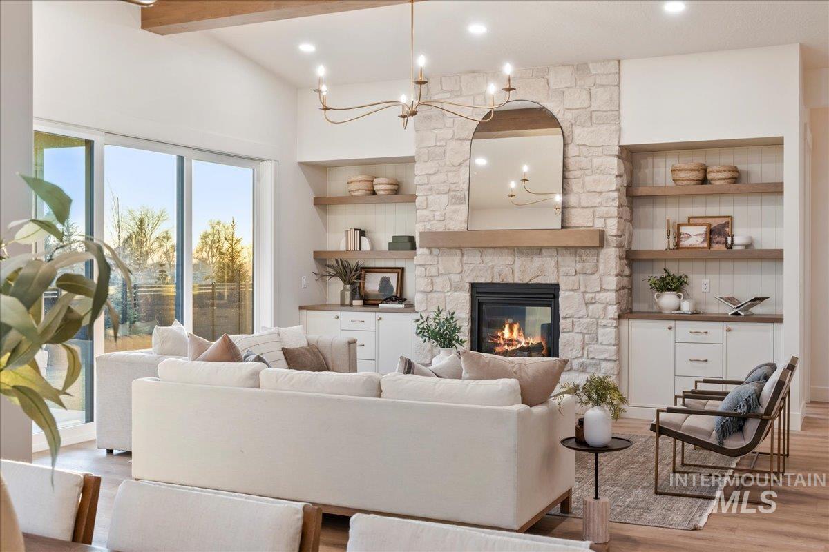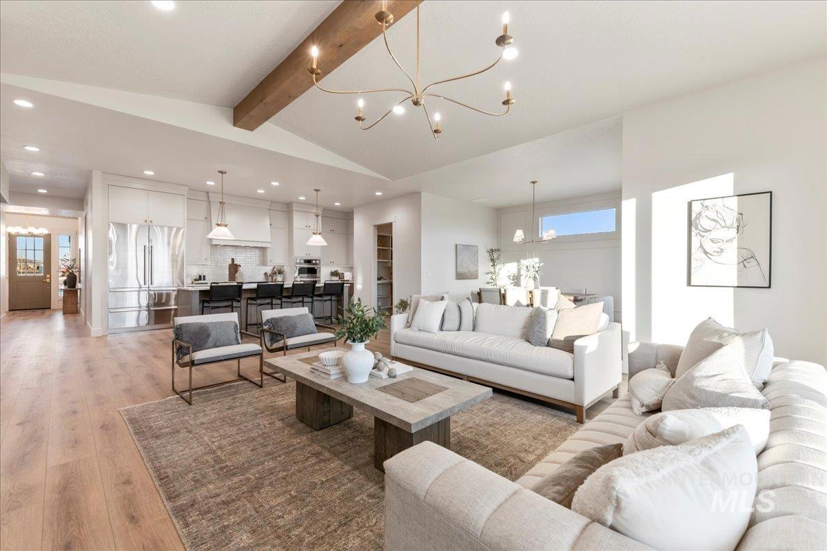 Prepare to be inspired by this award winning Asbury home "The Banquette". This design features maximum privacy while also offering large open gathering spaces. High ceilings, wide pathways and abundant natural light create the open and welcoming "homey" feel everyone is looking for. Designer quartz countertops, ceiling-height custom cabinetry, upgraded appliances (fridge incl.) and thoughtful stone accents easily elevate this home above the competition. On the main level are both the primary suite and a guest ensuite perfect for visitors or extended family. Upstairs offers two more large bedrooms and a 25`x16` bonus/family room with endless options. Outdoor living has been optimized for enjoyment with covered patios on both the front and rear of the home with no direct backyard neighbors. Enjoy onsite storage/access for all your Idaho toys in the attached 36`x`15` toy garage. Located in Millstone Farms, you`ll enjoy all of the community ammenities like pickleball courts, playgrounds, basketball, a swimming pool, beautiful greenspaces and walking paths. If you`re looking for the right place to start your next chapter, this is it!