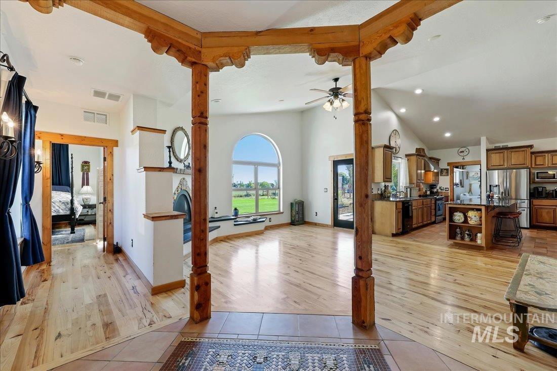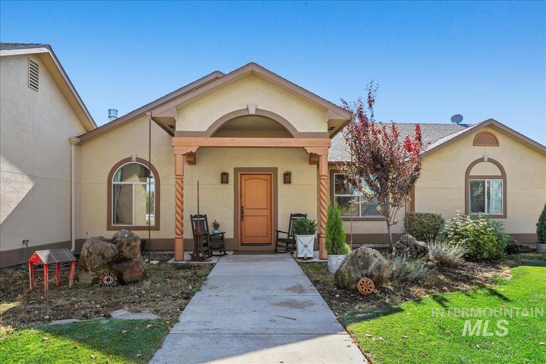 NO HOA fees & NO CCR restrictions, just open skies & mountain views of Bogus Basin! Bring your horses, your dreams, and your sense of freedom to this remarkable 5-acre property tucked away on a private road on the outskirts of Middleton! The home welcomes you with the warmth of rich hickory hardwood floors & a hand-laid Navajo-style tile mosaic that instantly captures the home’s artisan charm. The gourmet kitchen stands as the true centerpiece, crafted for connection & culinary creativity, it has granite countertops, spacious island w/prep sink, breakfast bar, wine fridge, new DW/range, & striking western-inspired tiled backsplash. There is even a 220 outlet for small European appliances! The thoughtful split-bedroom design offers both privacy and flow, complemented by a generous formal dining room w/a new Antler chandelier and two comfortable living areas—perfect for gathering, relaxing, or entertaining in style. The master ensuite is private & walks out to the back patio. Designed for rural living, the mudroom boasts a toilet, sink, floor washout, w/warm water for bathing horses or rinsing off after a long day outdoors. Gated pipe fencing encloses the horse pasture, while the circular driveway & RV parking offer room to expand for shop or barn. It also has a loafing shed & auto heated waterers for horses. It’s truly a rare find! Please click on the tour link for 3D and more info.