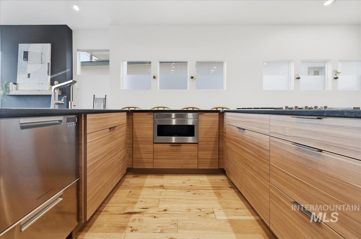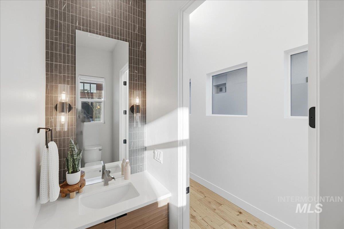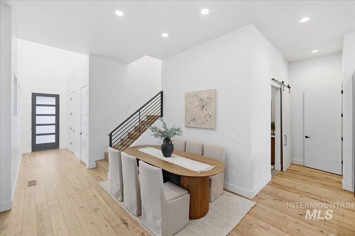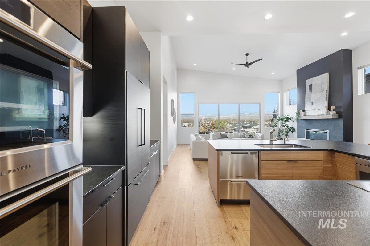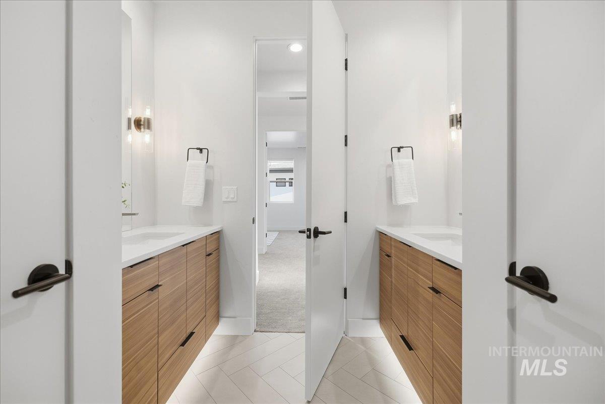 Introducing a stunning 2,835 sq. ft. high-end modern masterpiece offering the ultimate in luxury and convenience. This elegant home features 4 spacious bedrooms, 3.5 designer bathrooms, and a 3 garage with epoxy floors & a mini-split system, perfect for cars or projects. Perched atop a premier view lot, the home boasts breathtaking, uninterrupted views of Eagle and the Boise Foothills, ideal for enjoying serene sunsets. Open up the stacking slider out to the patio for seamless indoor/outdoor living, perfect for entertaining/gatherings. With a low-maintenance yard, you`ll enjoy luxurious living without the hassle of upkeep. The coveted Lakemoor Community also features Gated Privacy, Direct Greenbelt Access, Tennis/Pickleball courts, Basketball Court, 2 swimming pools, and walking distance to countless amenities! This is a rare opportunity to own a modern oasis with unbeatable views!