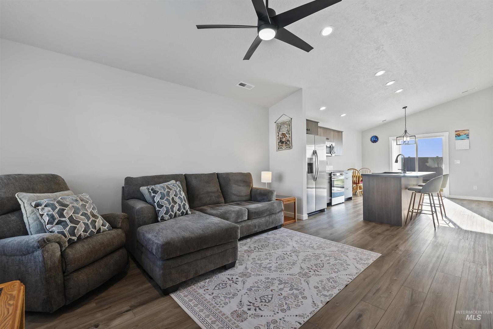Welcome home to this charming single story 3 bedroom, 2 bath home designed for comfort and easy living. The open and functional layout offers seamless flow throughout the main living areas, making it ideal for both everyday living and entertaining. The home features spacious bedrooms, including a private primary suite with an ensuite bath. Natural light fills the living and dining areas, while the kitchen provides ample cabinet and counter space. Blinds, washer, dryer, refrigerator and ring camera are included for added convenience. Step outside to a fully fenced and beautifully landscaped yard, perfect for relaxing or entertaining with added privacy. Residents also enjoy access to a community pool, ideal for cooling off and socializing during warmer months.