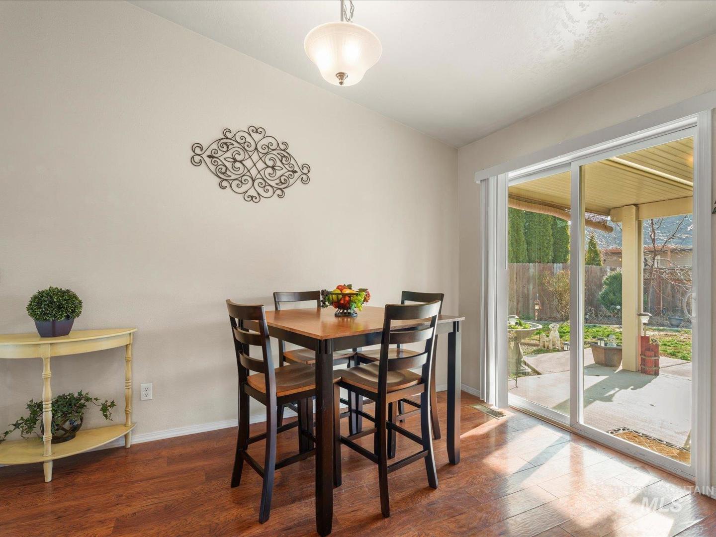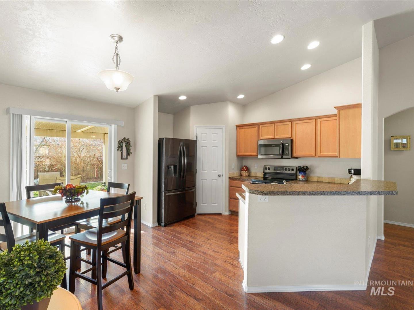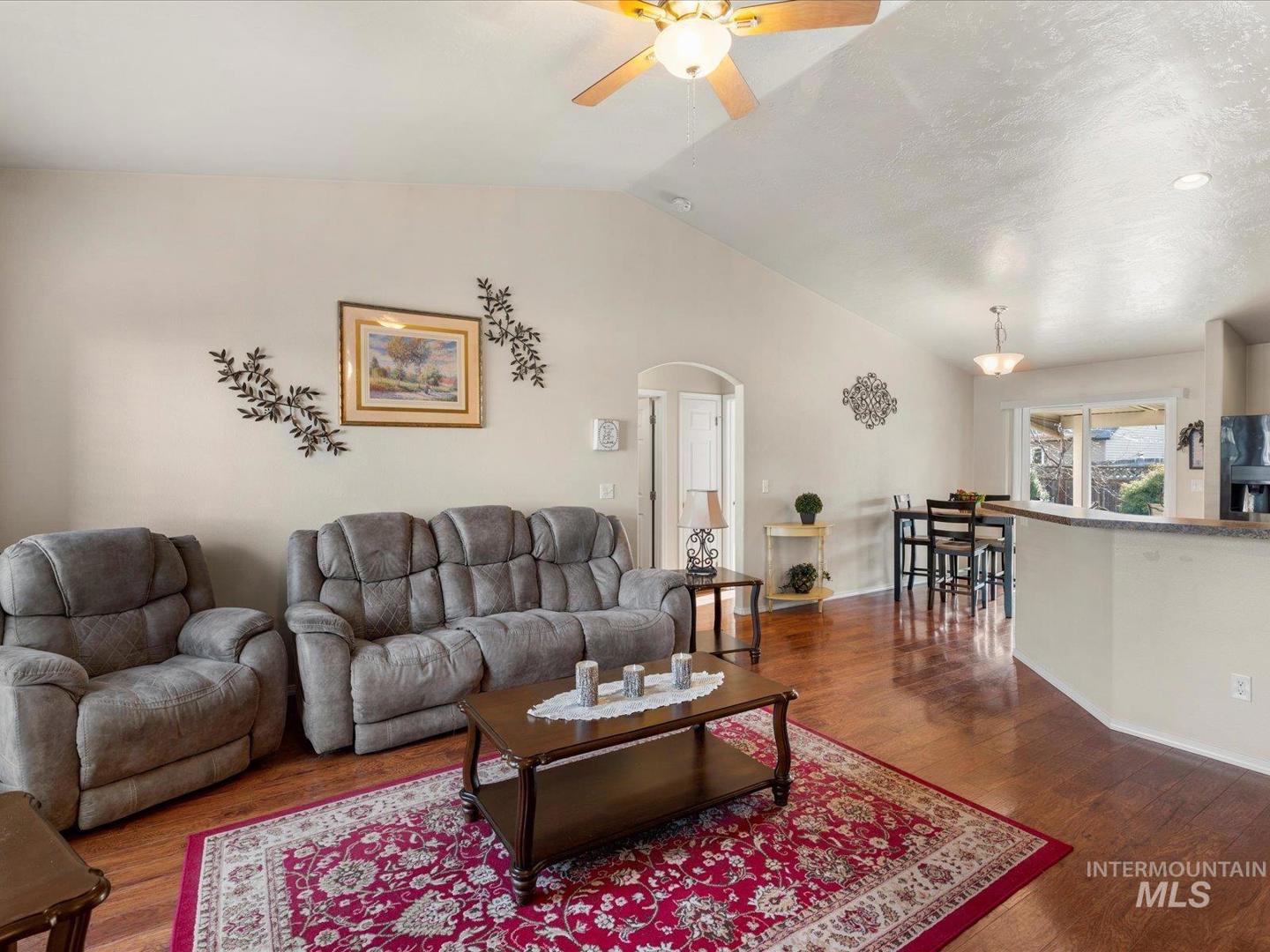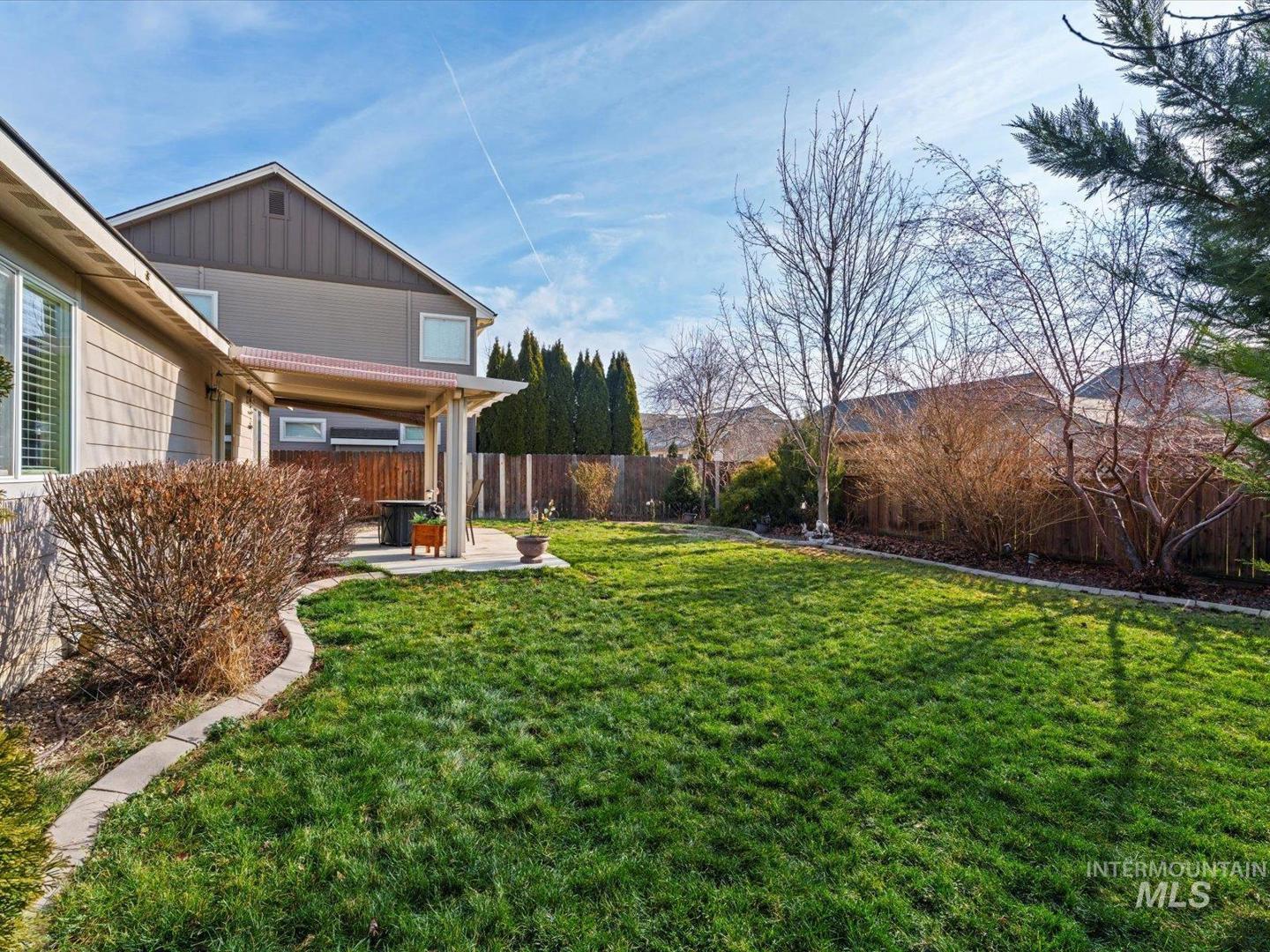 Designed for comfort & ease, this inviting single-level home offers generous space in a popular split-bedroom layout ideal for everyday living. Vaulted ceilings elevate the family room, creating an airy flow through the kitchen & dining areas—perfect for gathering or relaxing. The primary suite is a private retreat featuring a large soaking tub & spacious walk-in closet. Recent upgrades include a new HVAC system (2025), newer stainless steel appliances & beautifully enhanced landscaping w/ concrete curbing & lush flowerbeds. Step outside to an extended covered concrete patio, ideal for outdoor dining or quiet evenings at home. Conveniently located minutes from shopping, dining, healthcare & entertainment, w/ easy freeway access & walking distance to elementary & middle schools. Whether you’re a first-time buyer, growing household or investor, this well-maintained home delivers comfort, value & a prime Nampa location.