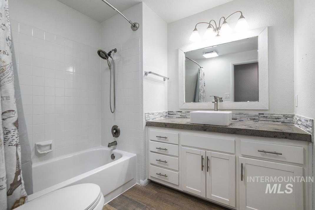 Great home, great location and ready for your buyers! Home has been recently updated with a new beautiful kitchen opened to the living room, all new appliances less than one year old, new laminate floating floors throughout except bedrooms and an awesome updated bathroom. Home is warm and inviting! Covered patio is a plus, also wired for hot tub. The planter boxes are plumbed into sprinkler line. The yard is nice sized with shade trees and a shed for extra storage. Roof is only 13 years old. Come see this home, it won`t disappoint.