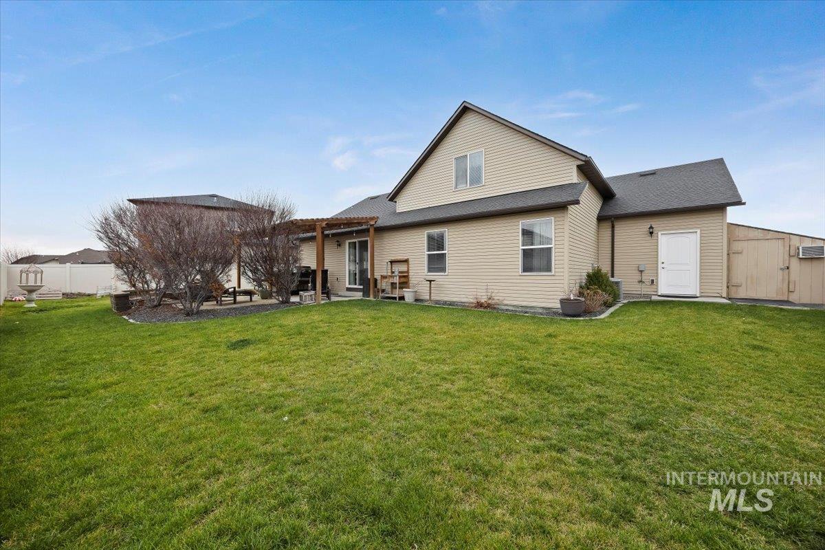 Welcome to this EXCEPTIONAL home with great curb appeal, nice long driveway, a cute front porch, and warm wood exterior accents! The location is phenomenal in a newer, yet established neighborhood, very close to churches, schools, canyon walking trail, shopping, restaurants. The home is a great layout with the beautiful Master suite on the main level, which includes double sinks, large walk in shower, and a walk in closet. There is also a half bath on the main level for your guests while you are entertaining in the open concept living area with a large, gorgeous kitchen with quarts countertops and lots of counter space, pantry and upgraded vent hood, large dining area that can accommodate a big table. There is a warm fireplace for when those cool days arrive. Upstairs you will find 2 nice size bedrooms and a full bath, plus more storage. The back yard oasis has privacy as well as a nice pergola, a very large storage shed that has power. This home is full of pride of ownership and move in ready! This home has no HOA!