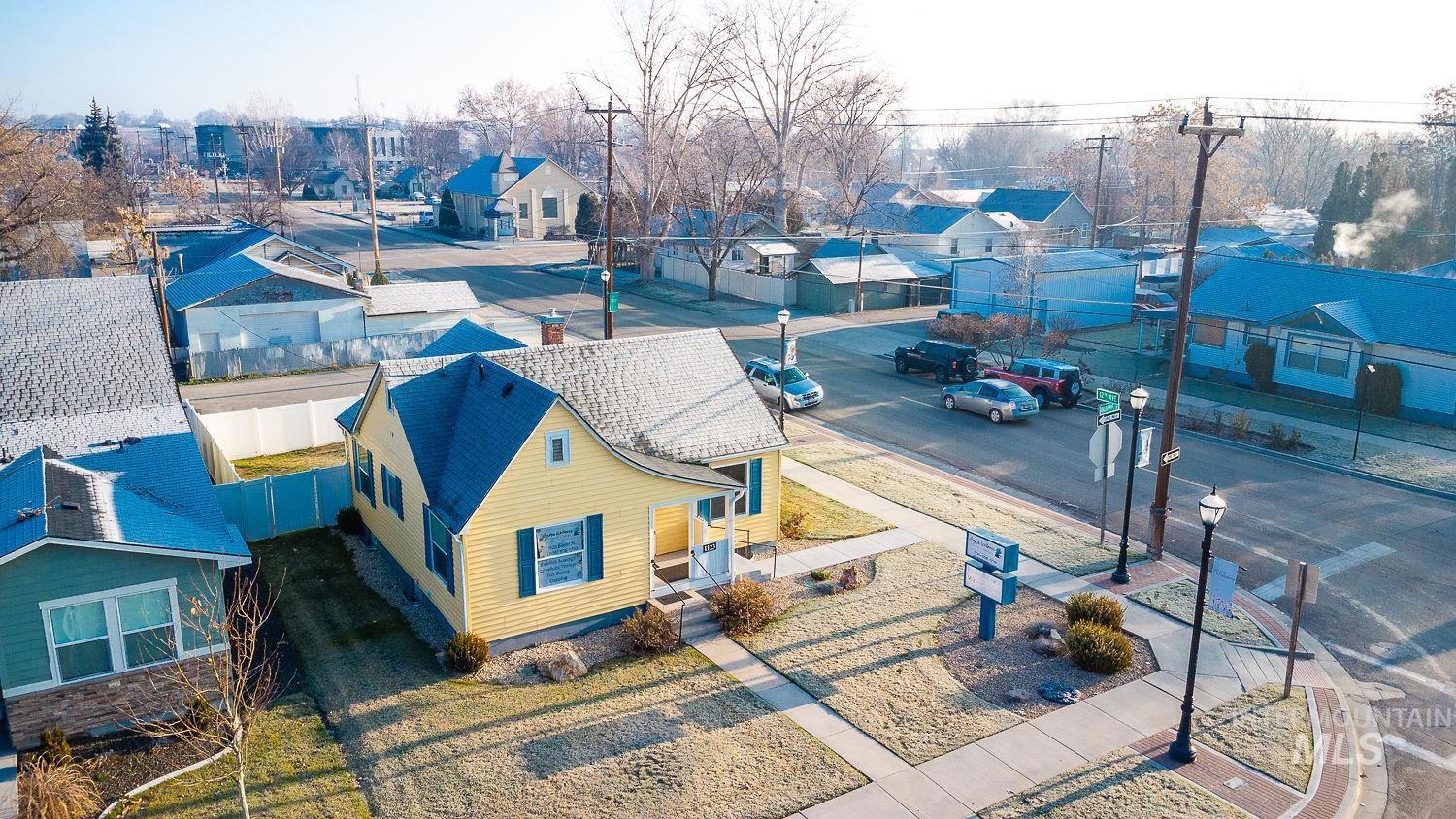 Commanding a prime corner location in downtown Caldwell, this commercial property offers exceptional exposure in one of the city’s most heavily traveled areas. Daily vehicle and pedestrian traffic create powerful drive-by advertising opportunities, further enhanced by a dedicated monument sign that anchors strong brand visibility. The 1,475 sq ft building, complete with a finished basement, delivers a versatile interior ideal for professional services, office, or boutique retail use, with multiple private rooms that allow for flexible business configurations. Convenient rear dedicated parking supports both staff and client access. Just steps from Indian Creek Plaza, dining, and shopping, this property places your business in the center of Caldwell’s vibrant downtown activity—an outstanding opportunity to establish a lasting presence in a high-growth, high-visibility location.