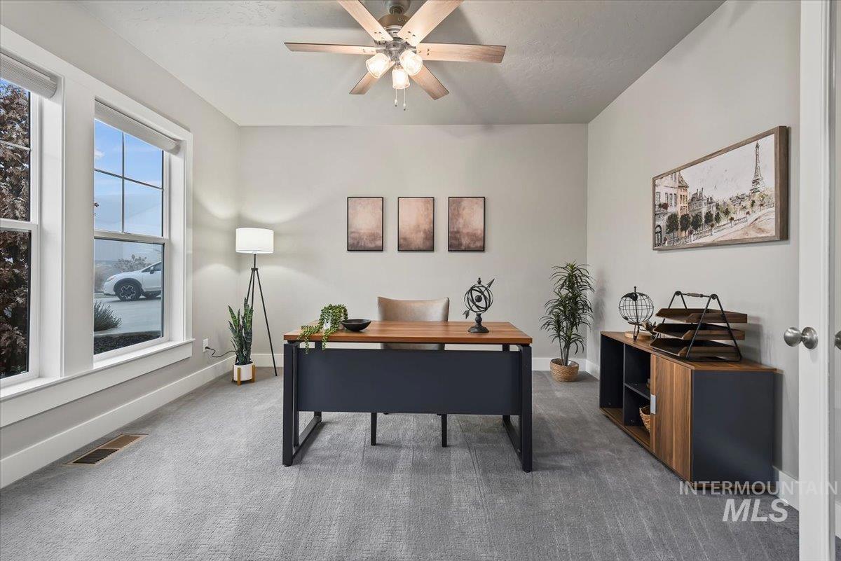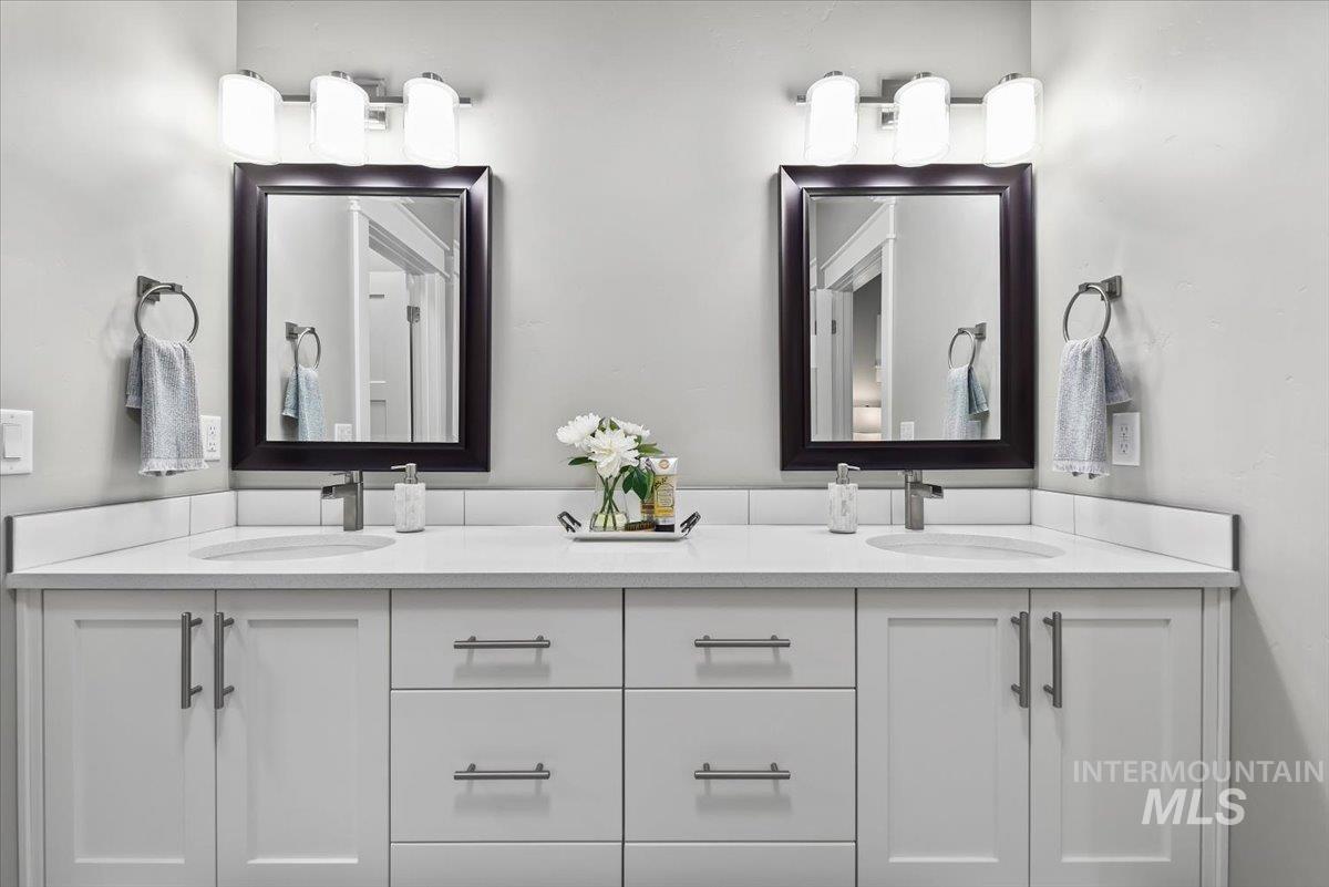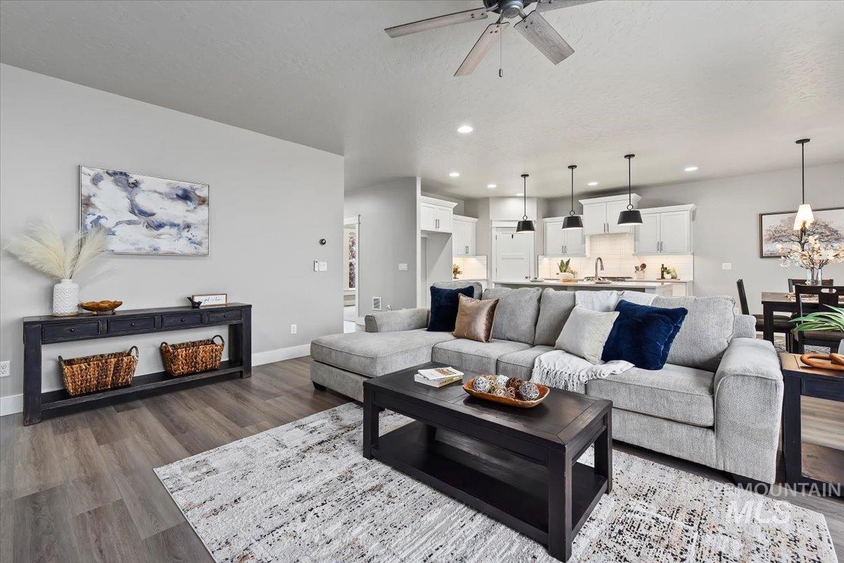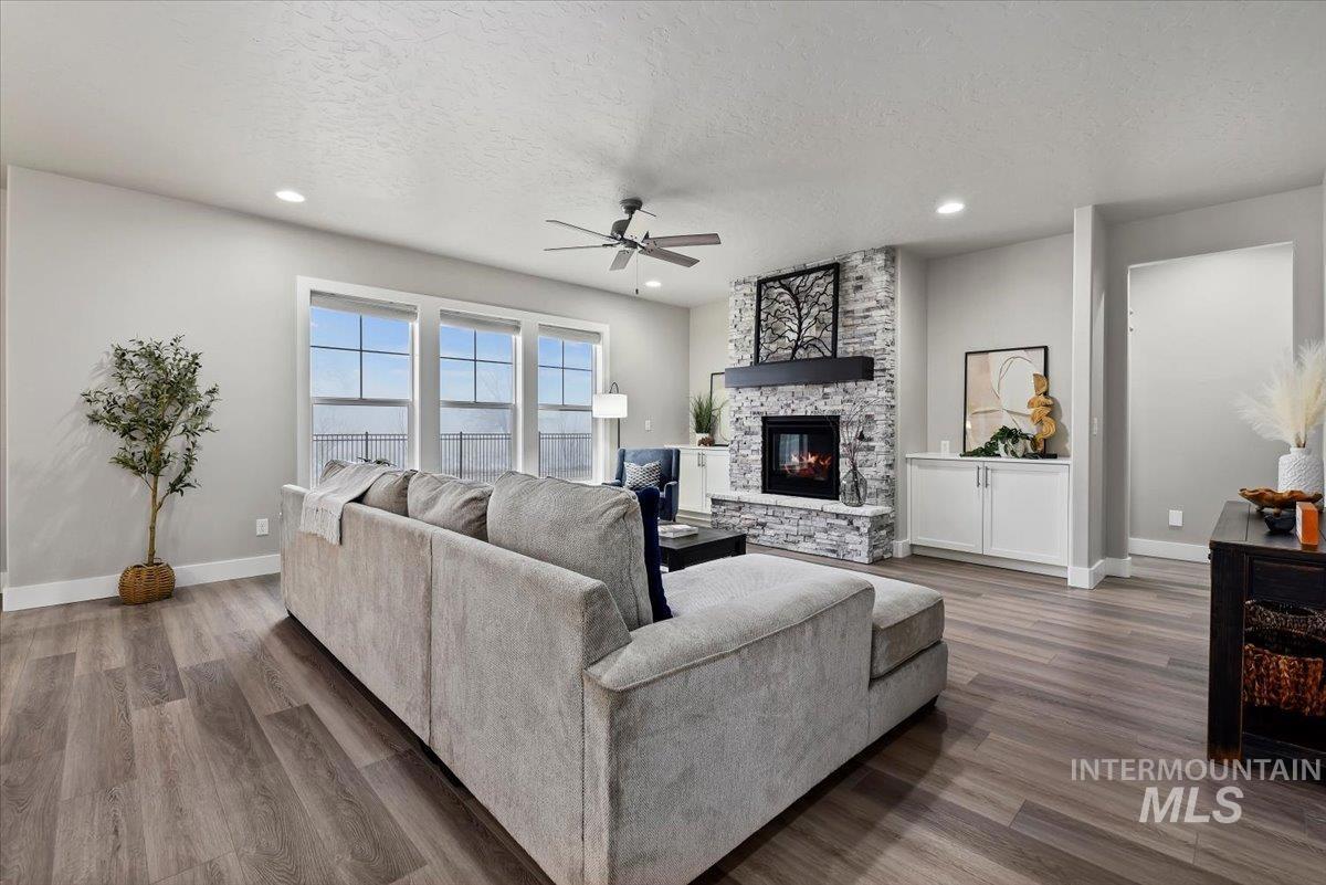 Welcome to one of Hartland’s most desirable homesites in NW Nampa—where nearly new construction meets comfort, style, and an exceptional setting. Built in 2024 and truly move-in ready, this thoughtfully designed home offers 4 bedrooms, a main-level primary suite, and a dedicated main-level office, perfect for today’s lifestyle. Enjoy high-end finishes throughout including LVP flooring in the main living areas, quartz countertops, full tile backsplash, soft-close cabinetry, updated lighting, and beautifully tiled bathrooms with full tile showers. The stunning floor-to-ceiling stone fireplace with built-in cabinetry creates a warm and inviting focal point. Upstairs features three additional bedrooms plus a spacious bonus room ideal for a media room, playroom, or second living space. Step outside to an extended covered patio with additional concrete and existing hot tub hookup—perfect for entertaining or relaxing. With no rear neighbors, this home backs to a peaceful field, common area, and walking path, offering rare privacy and open views. Located in a welcoming community with a pickleball court, this home combines modern design, premium upgrades, and an unbeatable lot. A must-see!