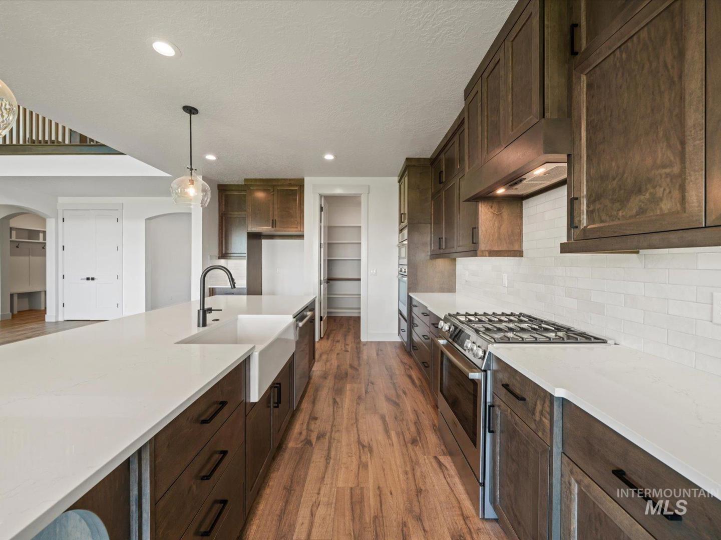The Messina XL is Riverwood`s latest and largest floor plan! This home boats 3700 sq. ft. of quality with a large kitchen with SS Bosch appliances including double ovens, custom built in cabinets with soft close doors and drawers, and your own butler`s pantry with an appliance counter. The Owners suite, a guest suite and additional 1/2 bath on the first floor and 3 more bedrooms including another ensuite upstairs along with an amazing bonus room and 2 baths. 2 laundry rooms, a built in desk on the second floor, and closets galore are just a few of the included features! Great room features 18` ceilings, & a cozy fireplace. Enjoy the huge covered patio on a large lot fully fenced and landscaped with no direct back neighbors. Photos similar.