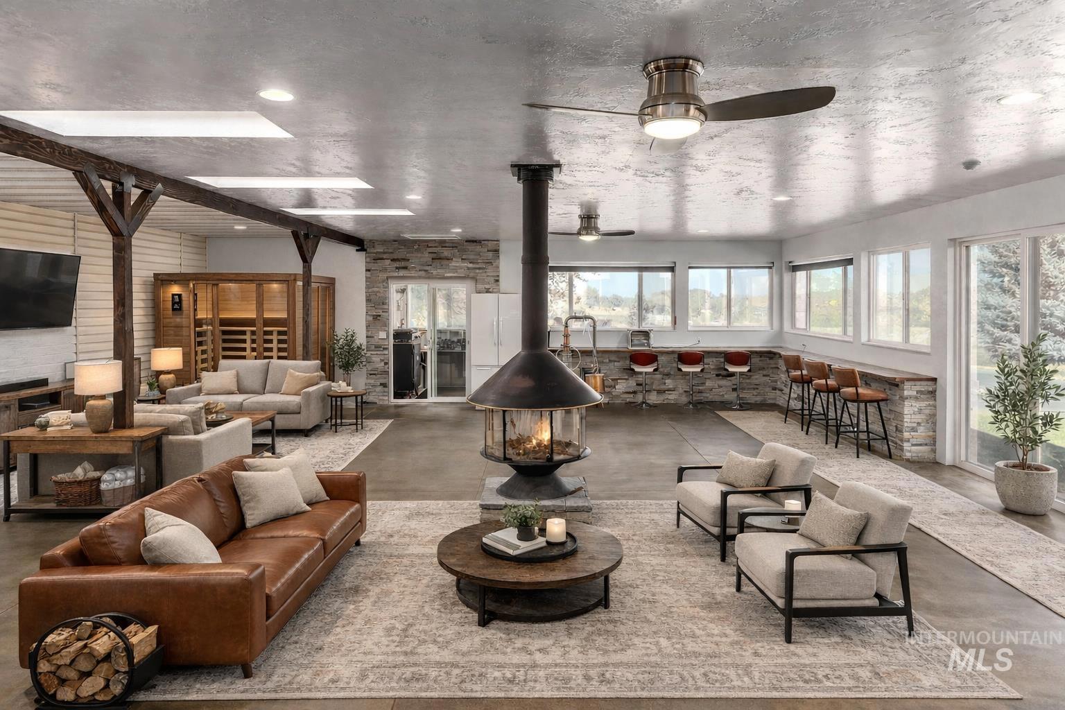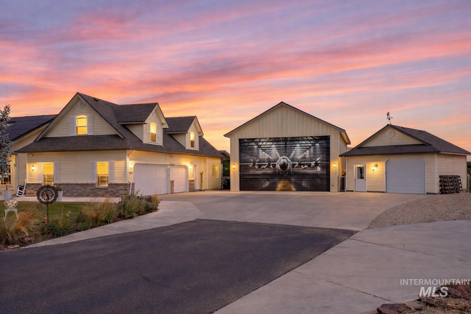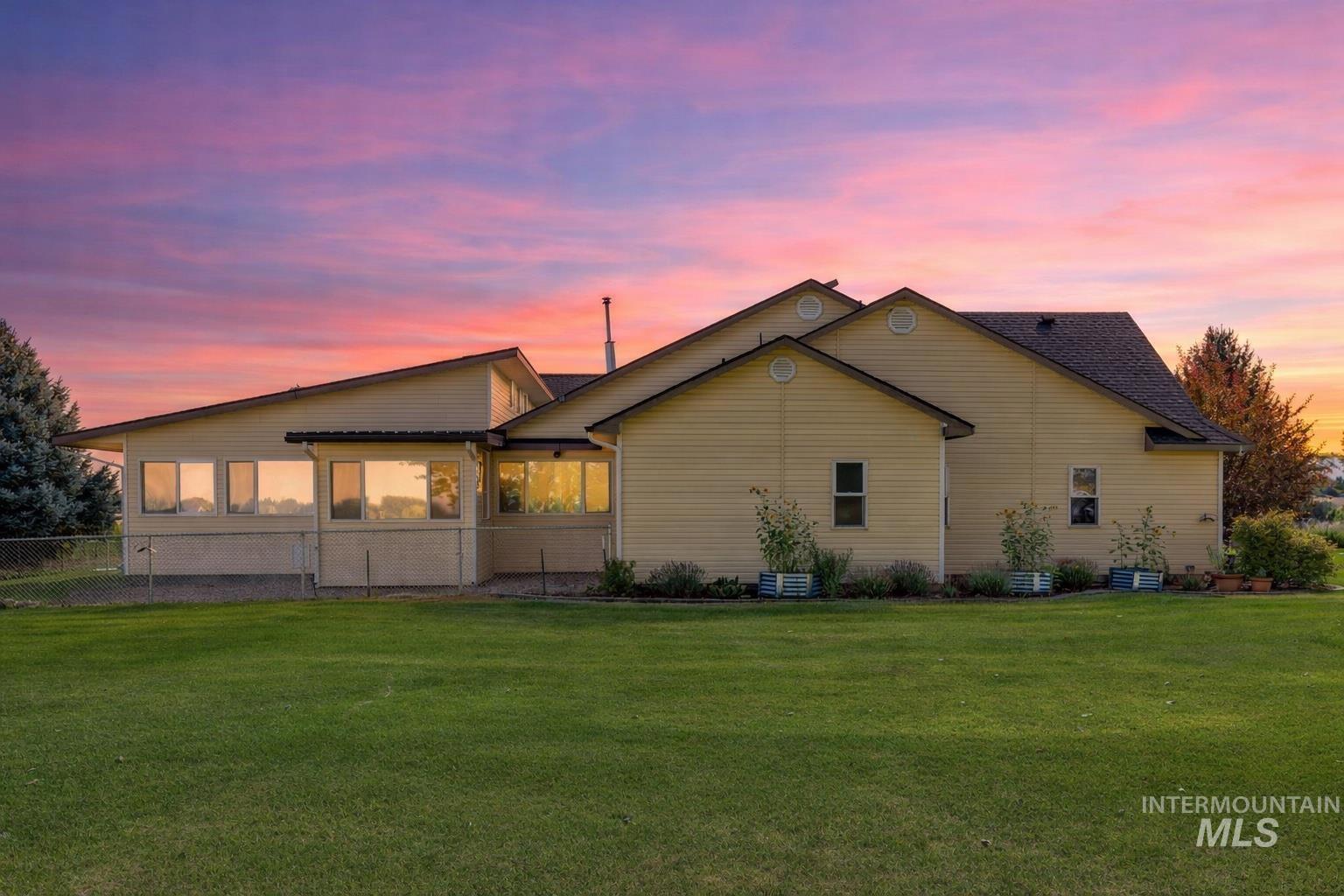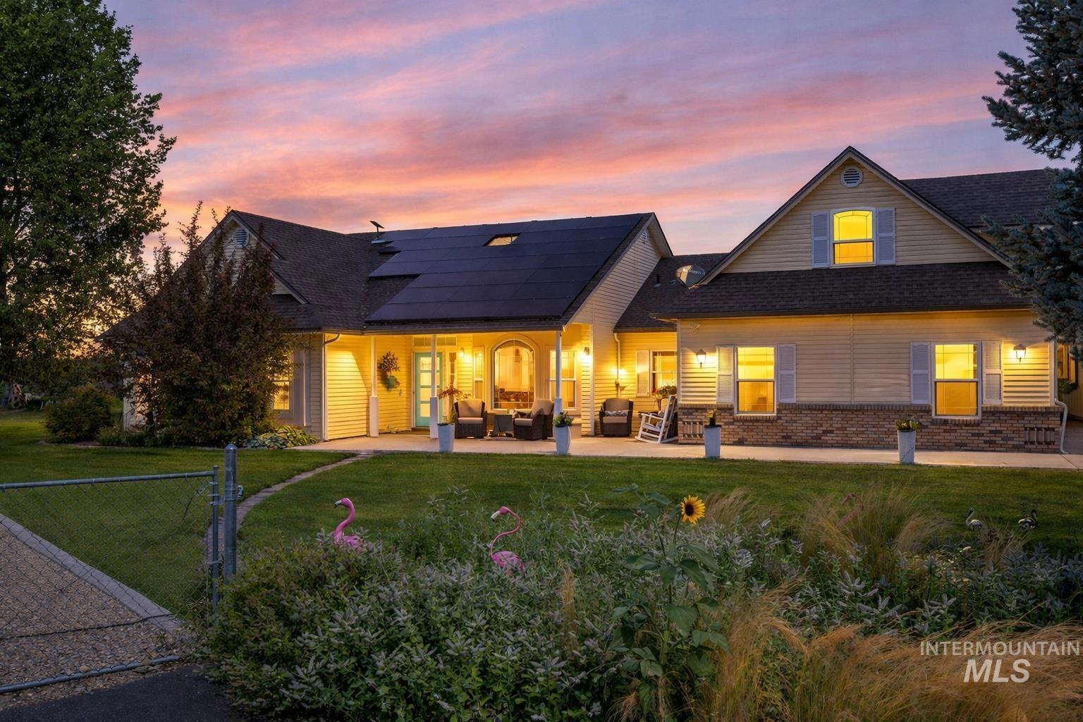 Set at the end of a quiet country street on 1.27 private acres, this exceptional property offers refined living, expansive space, and sweeping open views with unforgettable sunsets. With 4,000+ square feet of thoughtfully designed living space, the home features 4 bedrooms and 3.5 bathrooms, including a private guest suite with ensuite bath, ideal for guests or multigenerational living. Recent upgrades elevate the home throughout, including quartz countertops, new flooring, updated light fixtures, and solar panels, blending modern style with efficiency. The beautiful kitchen serves as the heart of the home, offering ample cabinetry, generous prep space, insta-hot water, and seamless flow to dining and living areas designed for entertaining. Enjoy year-round versatility with a spacious bonus room, huge enclosed patio w/ tinted windows, sauna and hot tub, an enclosed grilling area with ventilation, perfect for the all-season grilling enthusiast, and multiple gathering spaces. Outdoor living shines with manicured lawn areas, mature shade trees, and firepit for evening gatherings. Garage and shop space are unmatched, featuring an attached 3-car garage, a 32x45 RV garage, and an additional 23x31 detached garage, ideal for toys, hobbies, or storage. A charming She Shed tucked among the trees adds the perfect private retreat. Peaceful luxury country living without compromise.