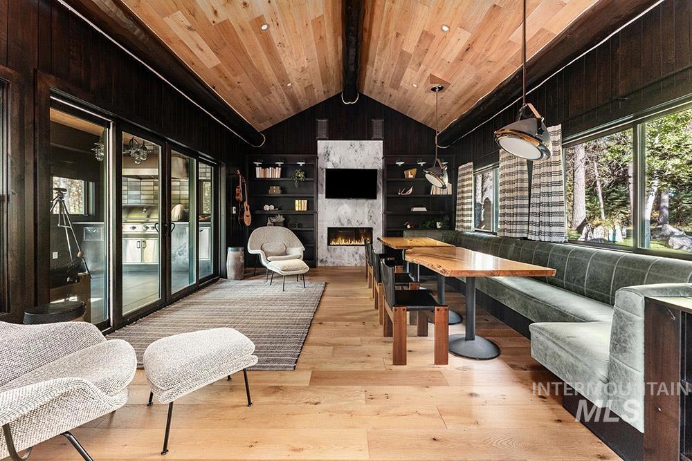 A true statement in elegance and design, this extraordinary waterfront estate—featured in Architectural Digest—offers nearly 6,000 square feet of exquisitely curated living space, nestled on approximately 3 acres of private, manicured grounds with a private dock on Blackhawk Lake. From the moment you arrive, a sense of serenity and sophistication abounds. Inside, five expansive bedrooms and six impeccably designed bathrooms are thoughtfully positioned across a flowing floor plan, offering privacy, comfort, and dramatic views at every turn. The master suite offers its own private terrace, spa-like bath, and custom dressing room. Designed for both grand entertaining and intimate gatherings, the home boasts multiple bonus spaces including a media lounge, kids bunk room and private sauna. The chef’s kitchen, outfitted with top-tier appliances & bespoke finishes, opens seamlessly to refined living and dining spaces, all oriented to maximize natural light & sweeping waterfront vistas. Step outside to a series of expansive patios, covered terraces, & outdoor entertaining areas ideal for al fresco dining, cocktail evenings, or simply taking in the stunning natural surroundings. Your private dock invites endless waterfront enjoyment kayaking, swimming, or savoring golden sunsets from the water’s edge. This is more than a home, it’s a rare sanctuary of style, privacy, and unparalleled luxury.
