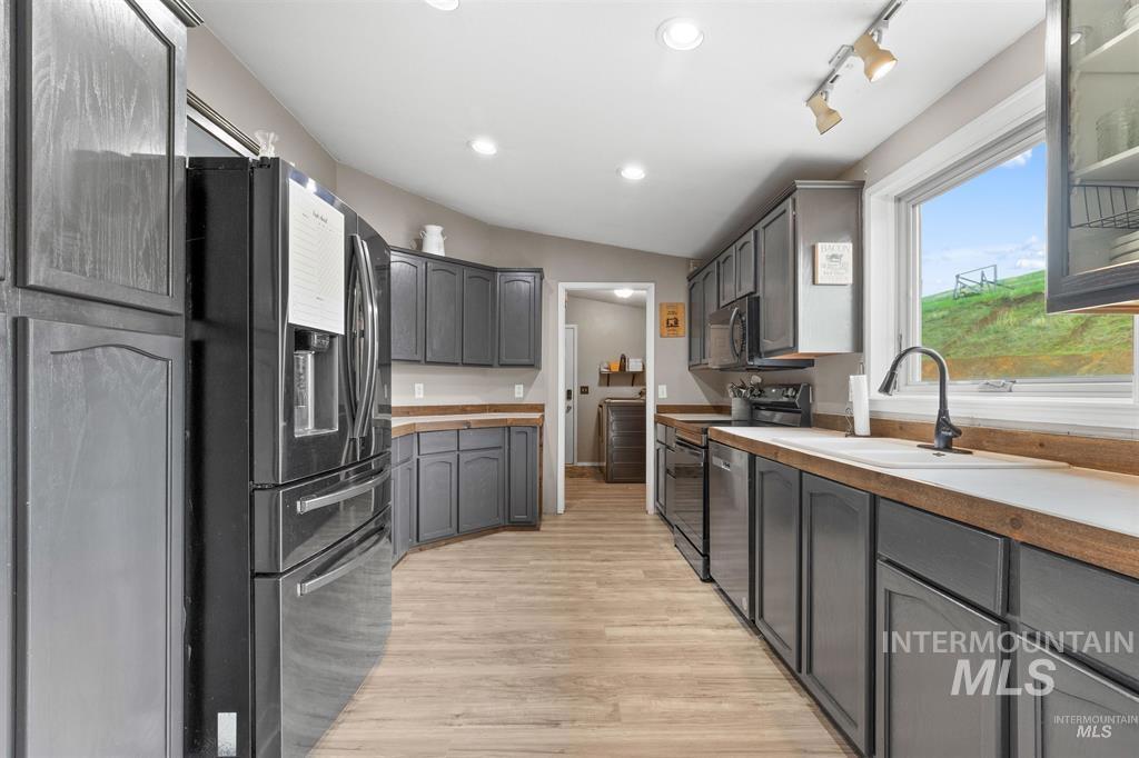 Nestled amidst the serene beauty of nature, this charming single-family home is a sanctuary for those seeking both comfort and a connection to the great outdoors. With 3 inviting bedrooms and 2 bathrooms, including a luxurious master suite complete with a private office space, this home is perfect for unwinding and staying productive. The spacious kitchen allows plenty of room for family baking days, while the open living room offers striking views as far as the eye can see. With 5 fully fenced acres and a 46x48 barn, there is room for all your horses! Spend your days gardening or simply soaking up the breathtaking sunsets in this peaceful haven, just 15 minutes from town. Whether you’re an equine enthusiast or simply adore country living, this property offers a perfect blend of tranquility and convenience. Home and well inspection reports are available!