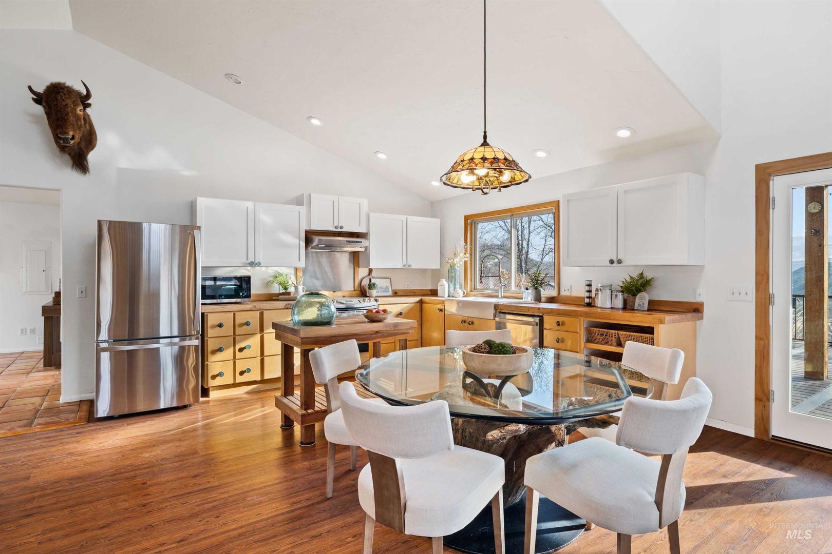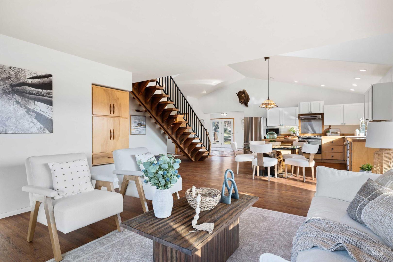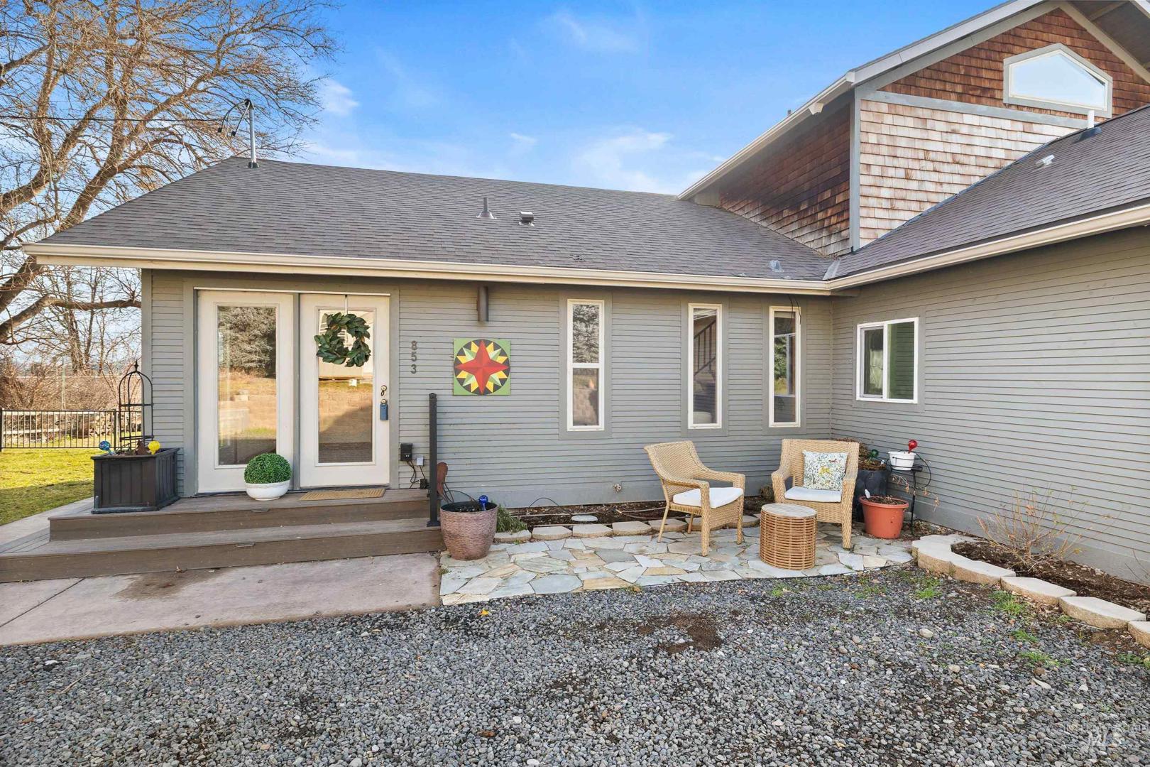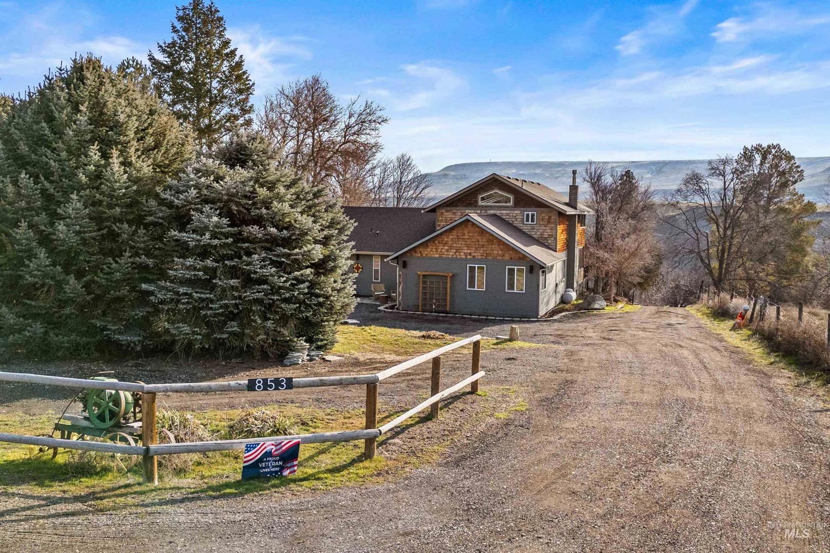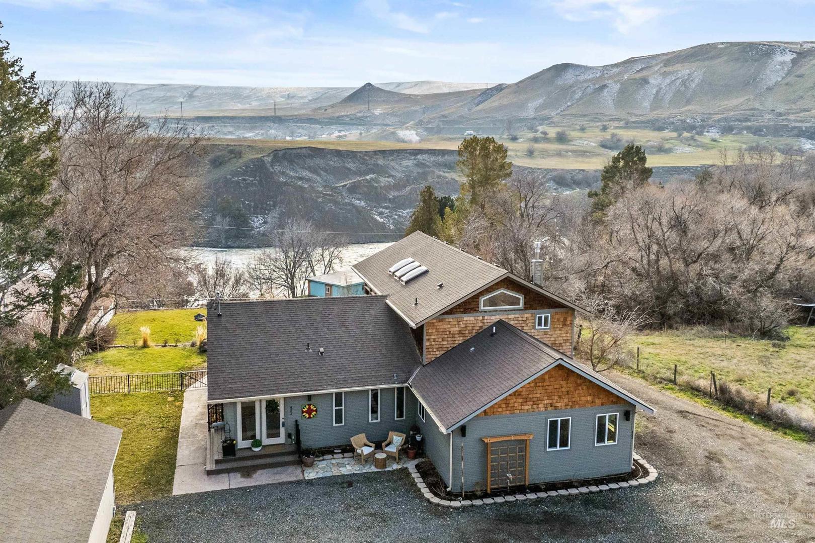 Perched above the Snake River in the scenic Bliss Canyon, this rare property offers privacy, sweeping river views, and a truly one-of-a-kind setting. The home features 2 master bedrooms, 2.5 bathrooms, and an open-concept layout filled with natural light, vaulted ceilings, warm wood accents, and a functional floor plan. Newer upgrades include a new water softener, heat pump, water filtration system, kitchen sink, oven/range, LVP flooring, and an additional master bedroom, walk-in closet & bathroom. The heated master bathroom floors add a nice touch of comfort in the winter months. Enjoy expansive outdoor living with a large Trex deck overlooking the Snake River, plus an upstairs screened-in porch where you can relax and listen to the sound of rushing water. A private natural waterfall flows through the property, creating a peaceful and unique landscape rarely found. Fully landscaped grounds provide space for a garden, chickens, and outdoor enjoyment. Additional features include a newer roof, two new sheds, (she-shed is insulated and finished),RV parking, water rights, spring water - with the ability to run the house off of the well or spring, and a small shop with electricity. Fishing, boating, rafting, hunting ,and hiking are just minutes away.This is a rare opportunity to own a private Snake River retreat where nature, comfort, and lifestyle come together.
